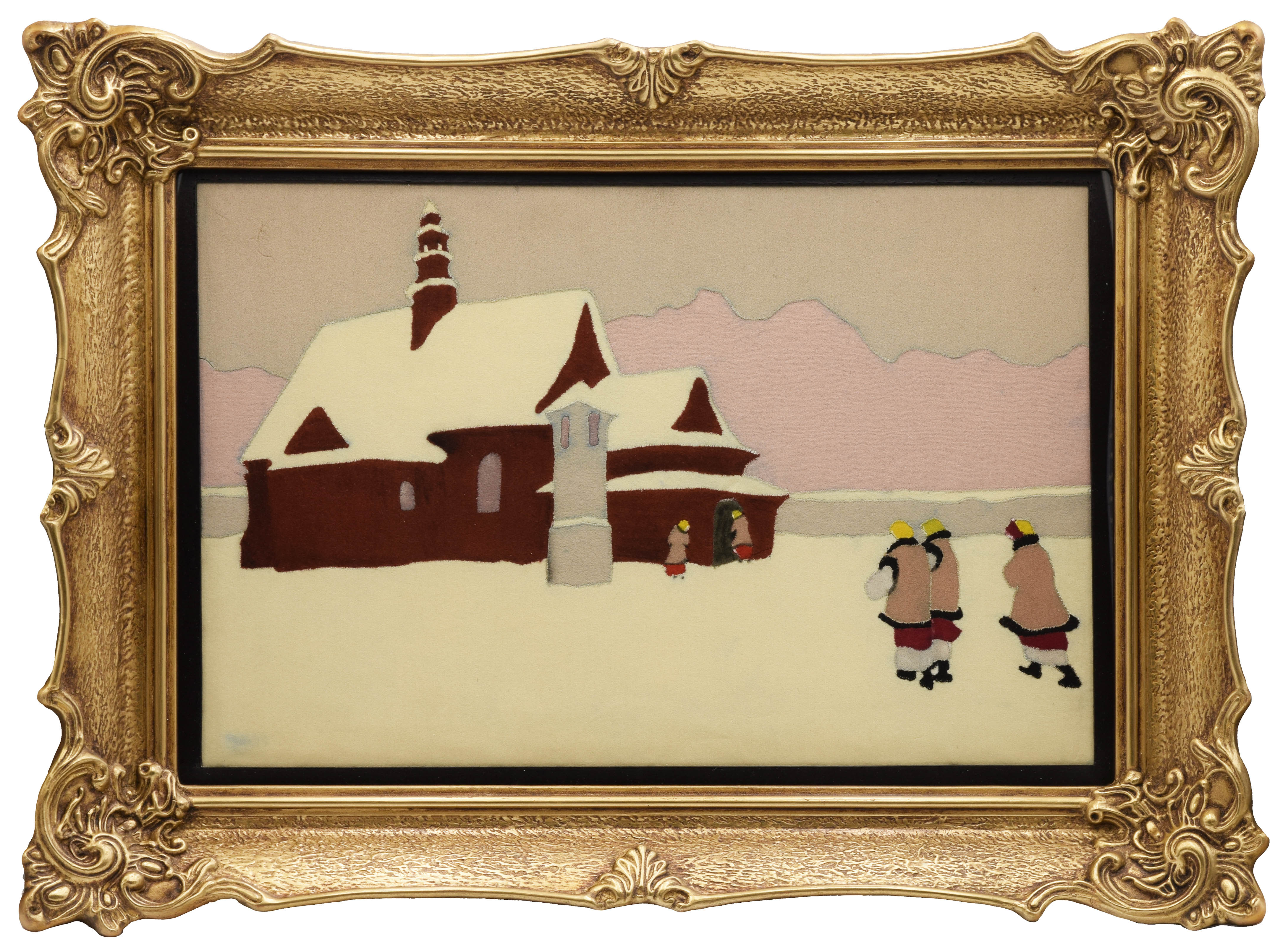 makata wykonana metodą aplikacji; 36,5 x 56 cm.