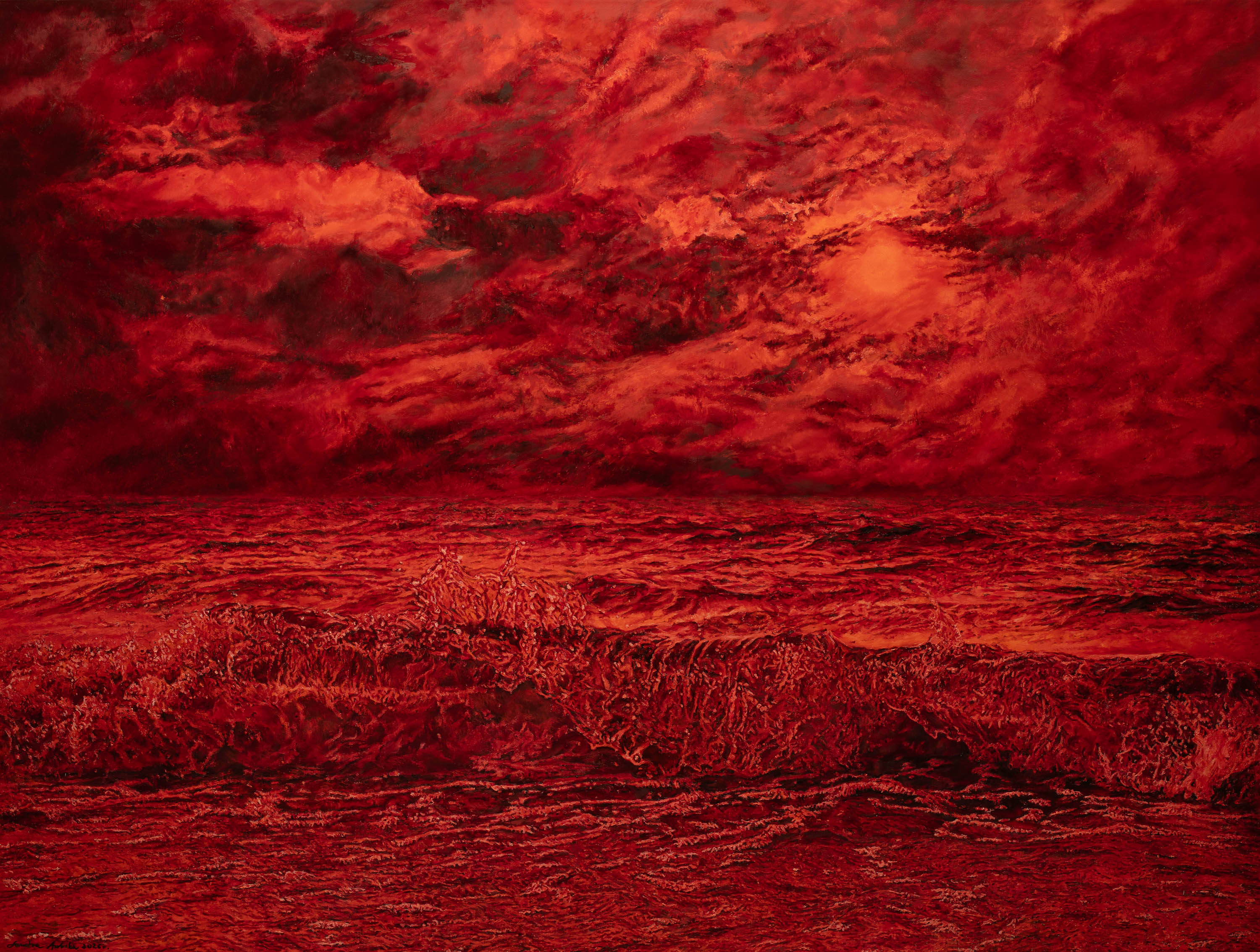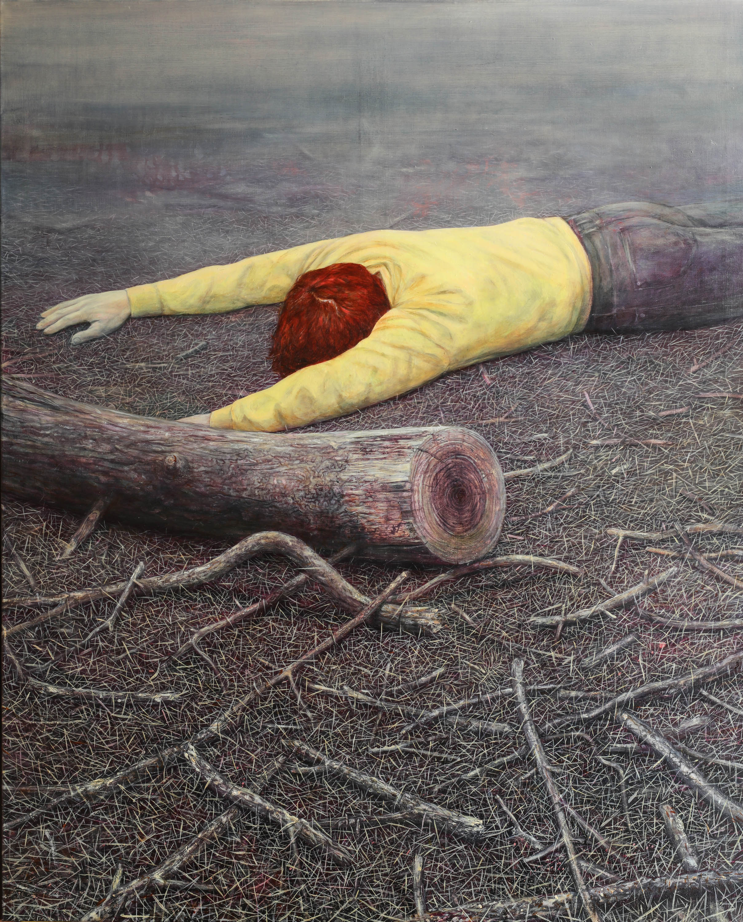 olej, płatki szlagmetalu, płótno, 200 x 150 cm,