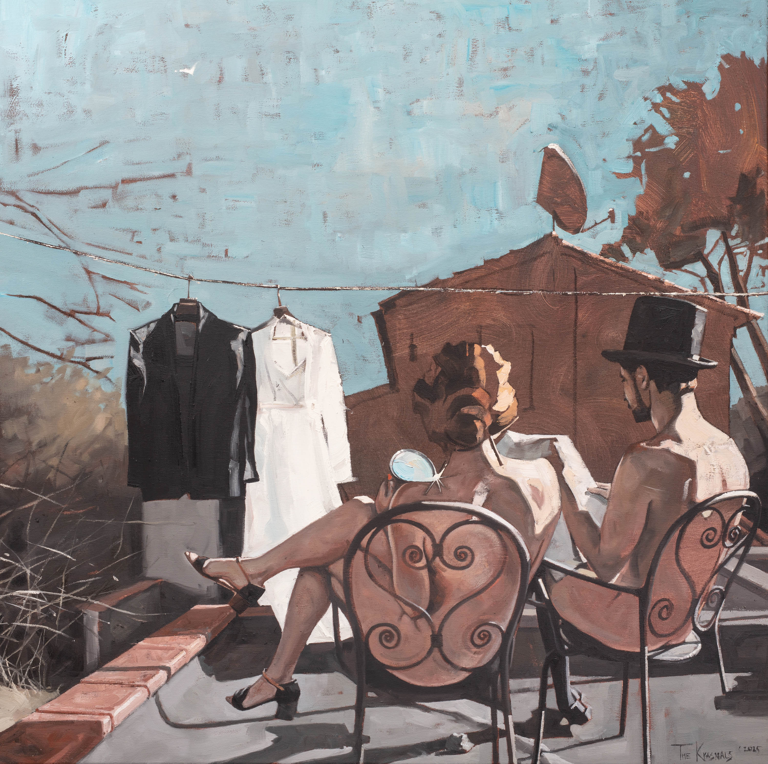 sygnowany p. d.: "Kat. Karpowicz 2016" oraz opisany na odwrocie: "[dedykacja autorska]|"MALARZE"|olej / płótno|2016"