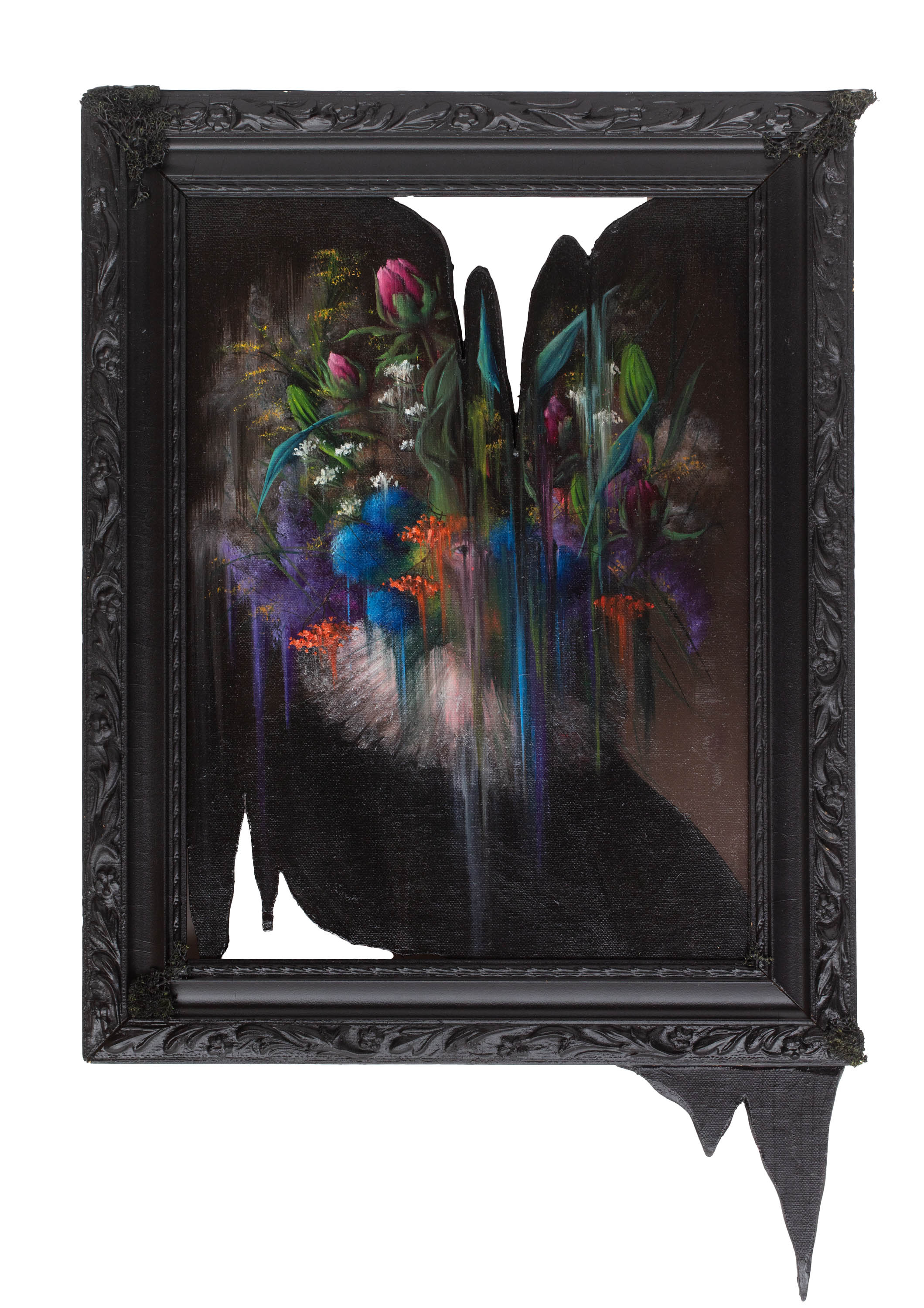 sygnowany i opisany na odwrocie: "Campio|DEMATERIALIZUJĄCY SIĘ OGRÓD REMBRANDTA|OLEJ, 36 x 27|W RAMIE 55 x 35|2026."