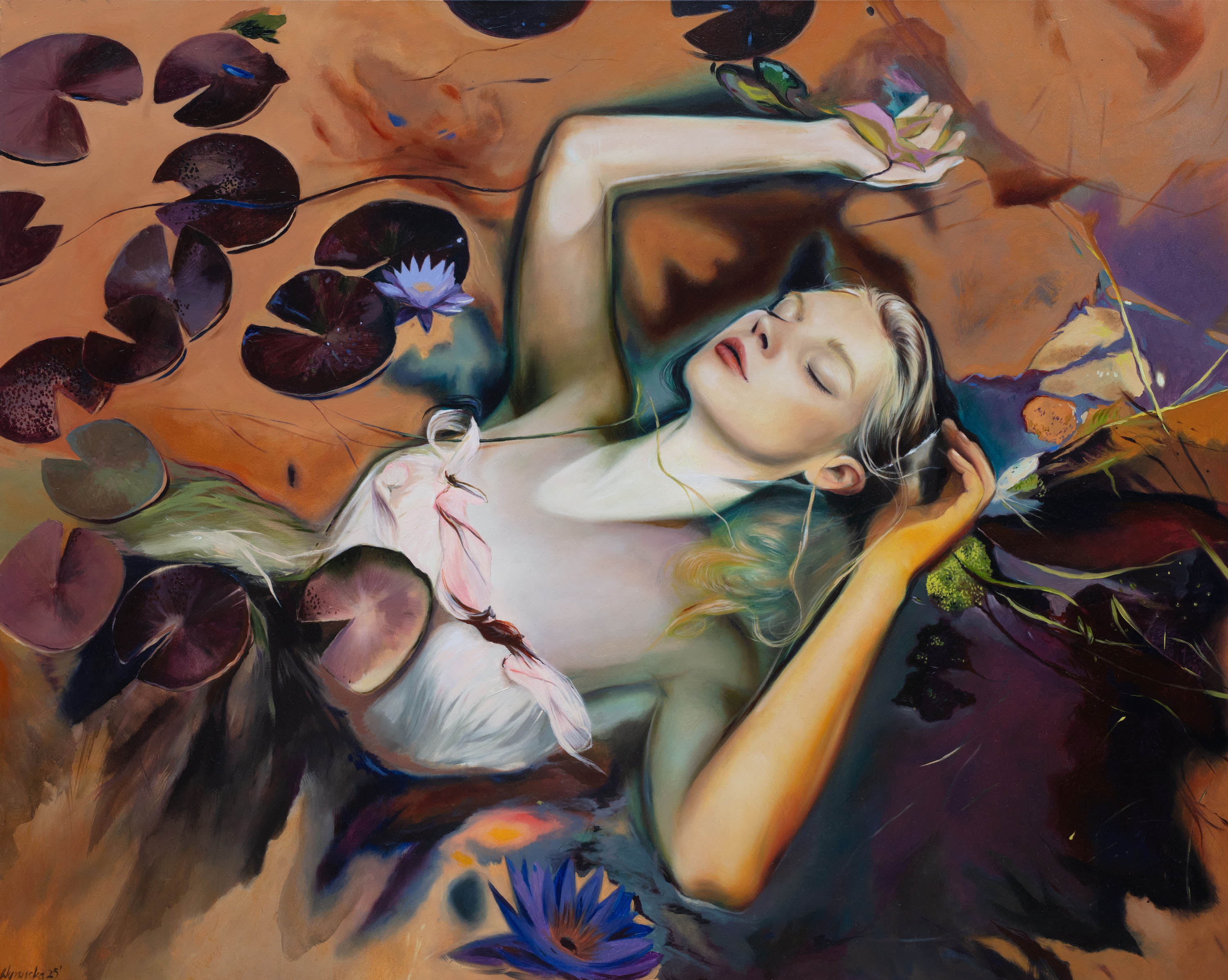 sygnowany l. d.: Wyrwicka 25' oraz opisany na odwrocie: "OFELIA TYLKO ŚPI|Monika Wyrwicka|2025"
