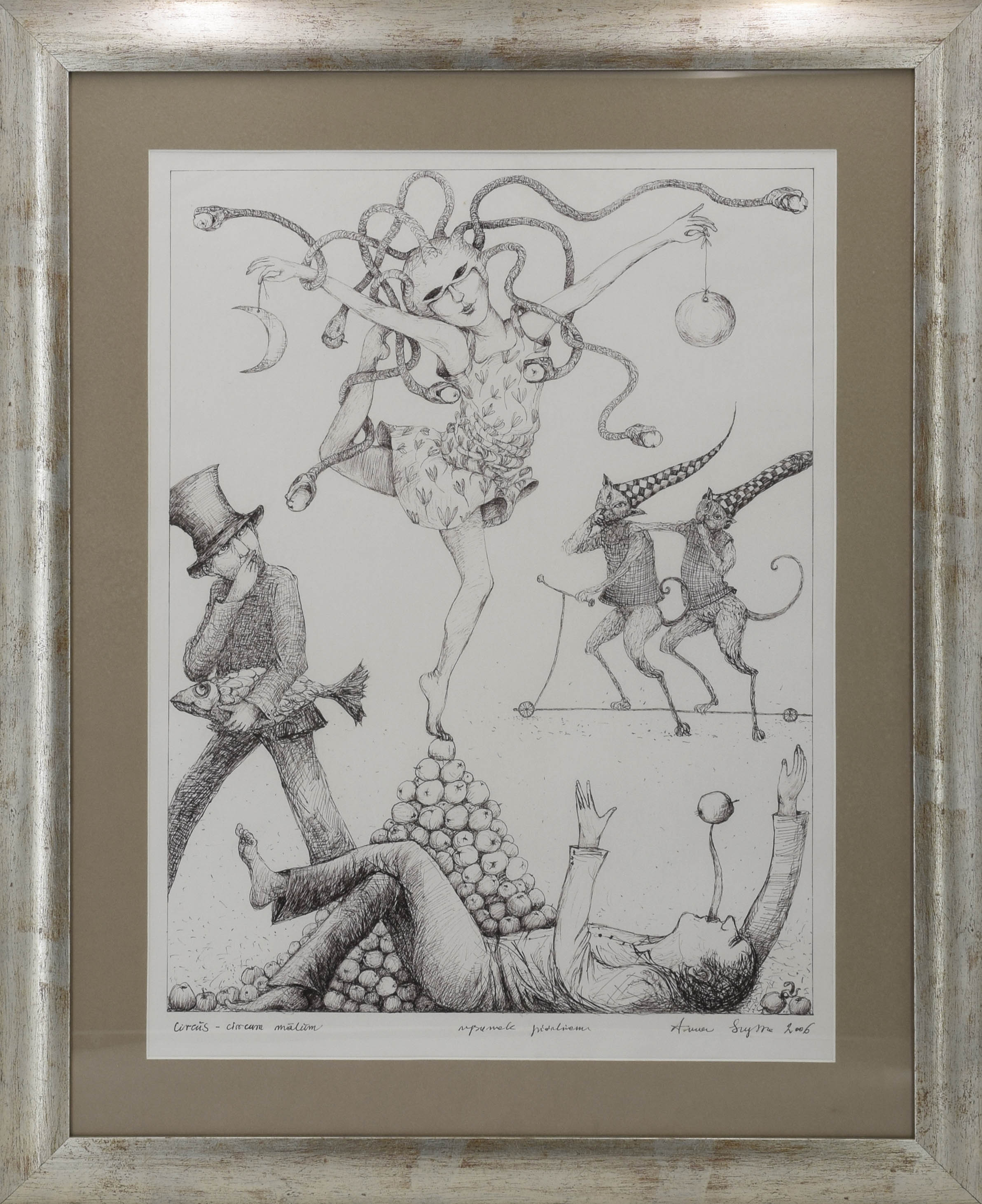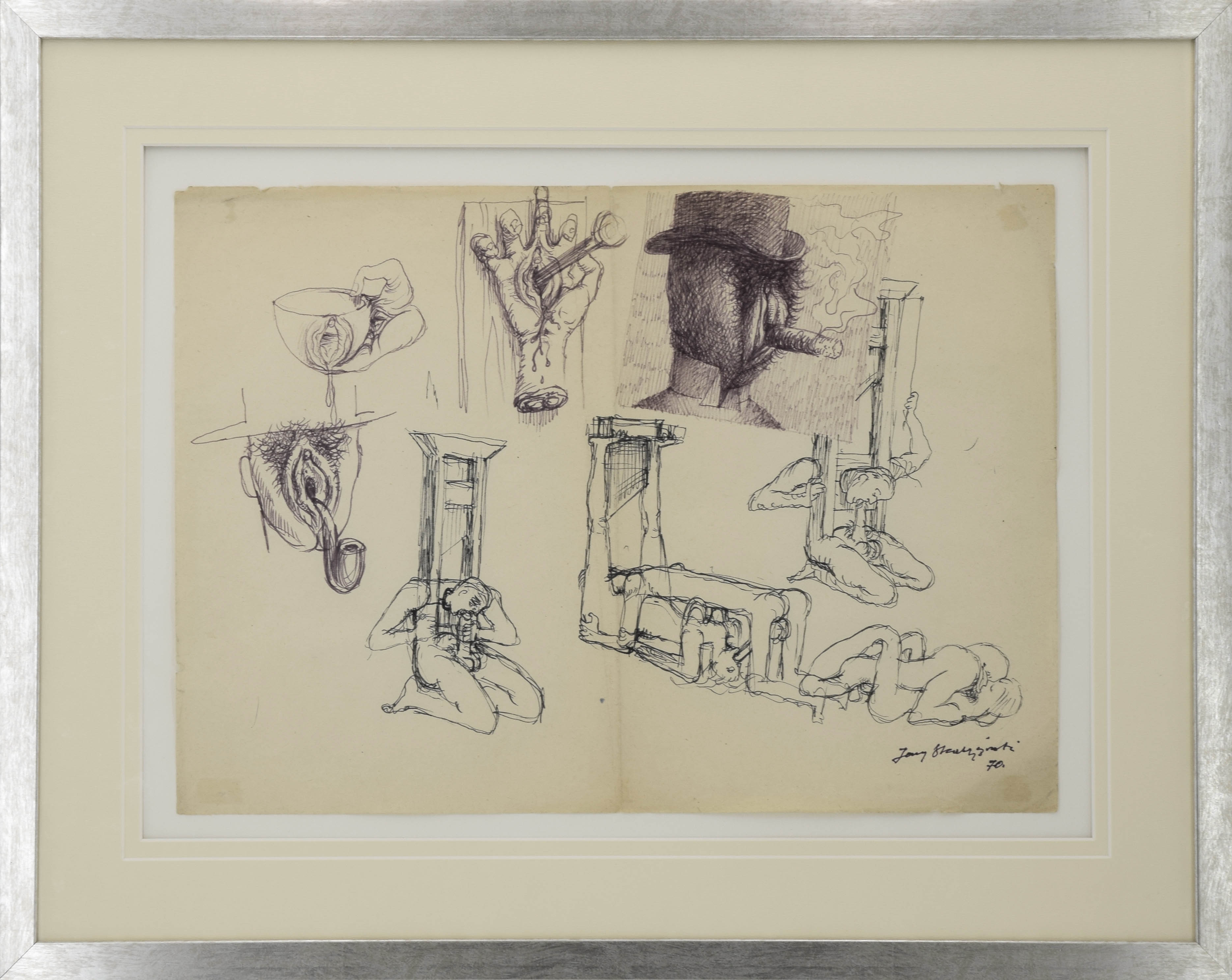 piórko, tusz, papier; 50 x 37 cm (w świetle oprawy);