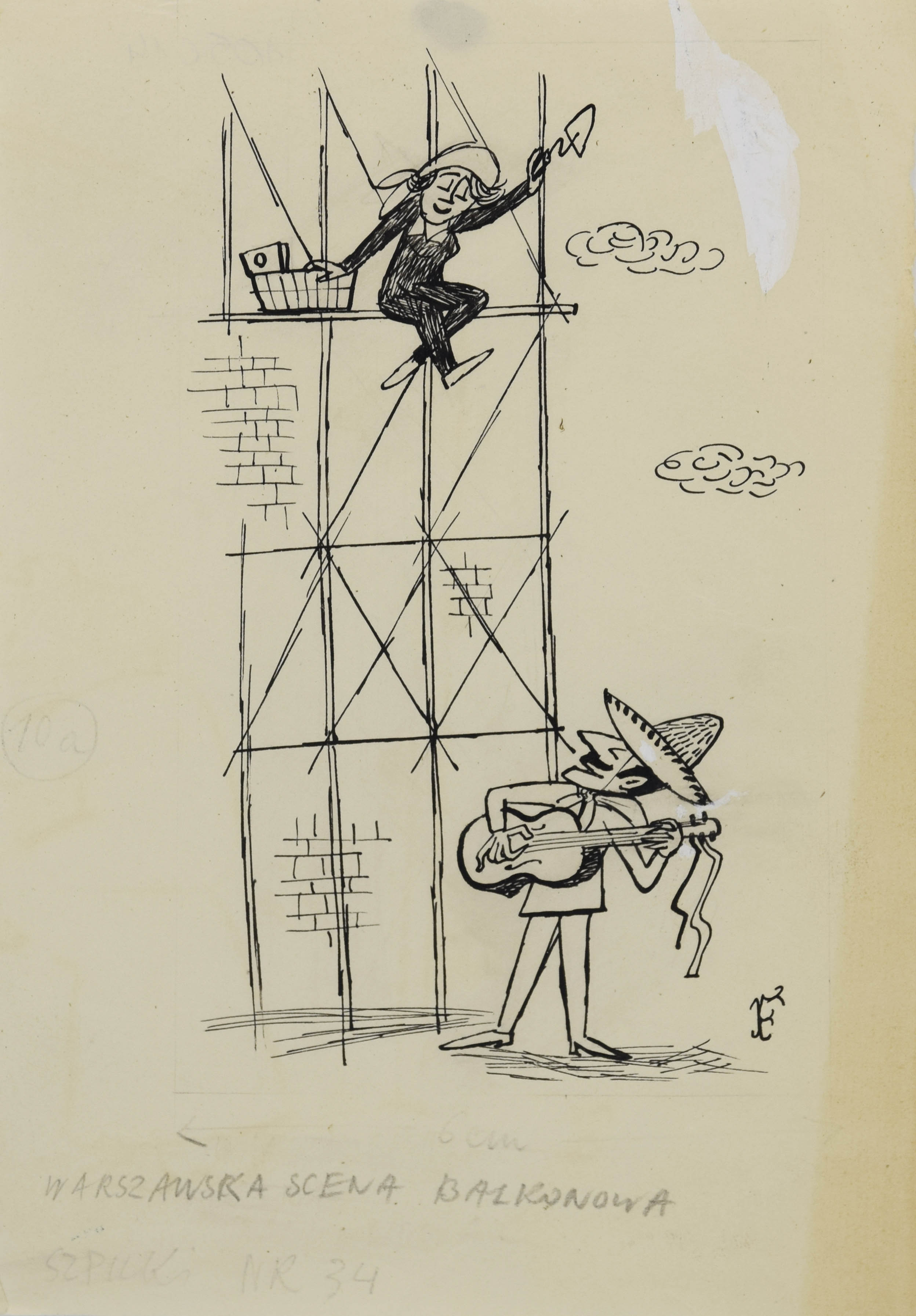 ołówek, pióro atrament; 57,5 x 31,5 cm.