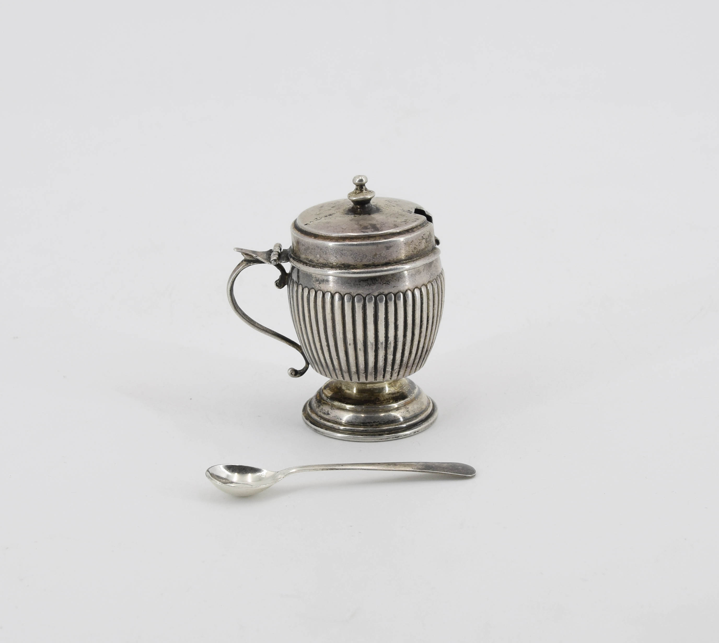 srebro pr. 800, wkład szklany, kobaltowy; 6,5 x 5,7 x 3,7 cm, waga srebra: 51 g;