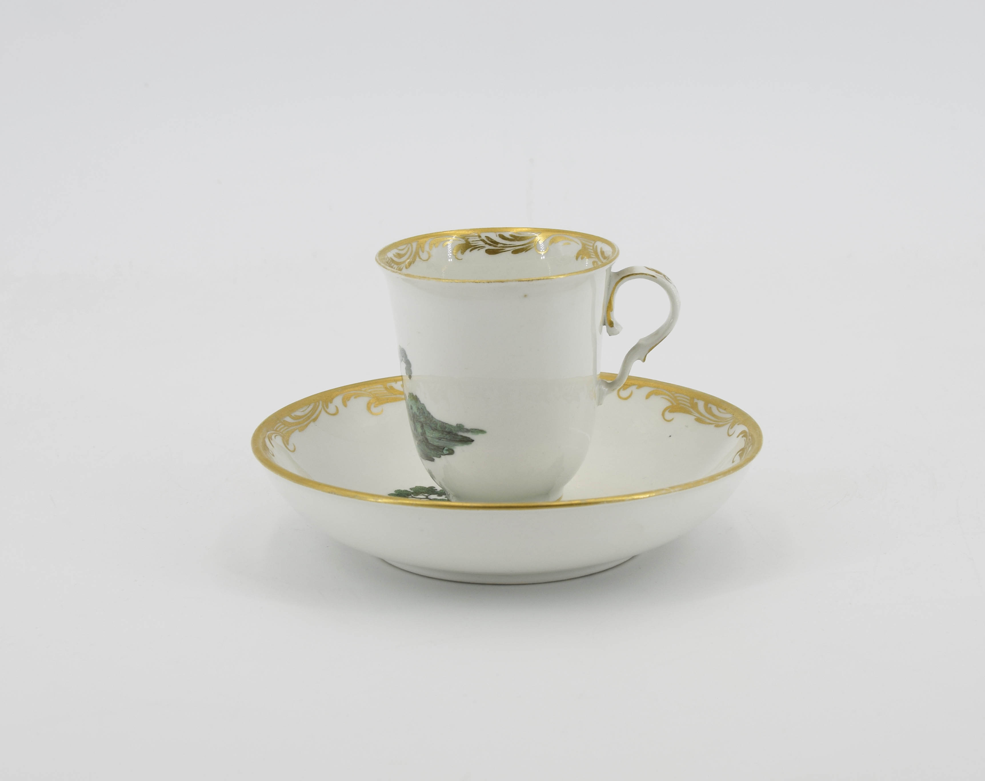 porcelana, farby naszkliwne, złocenie; wymiary: filiżanka - wys. 7,3 cm, spodek - śr. 13 cm;