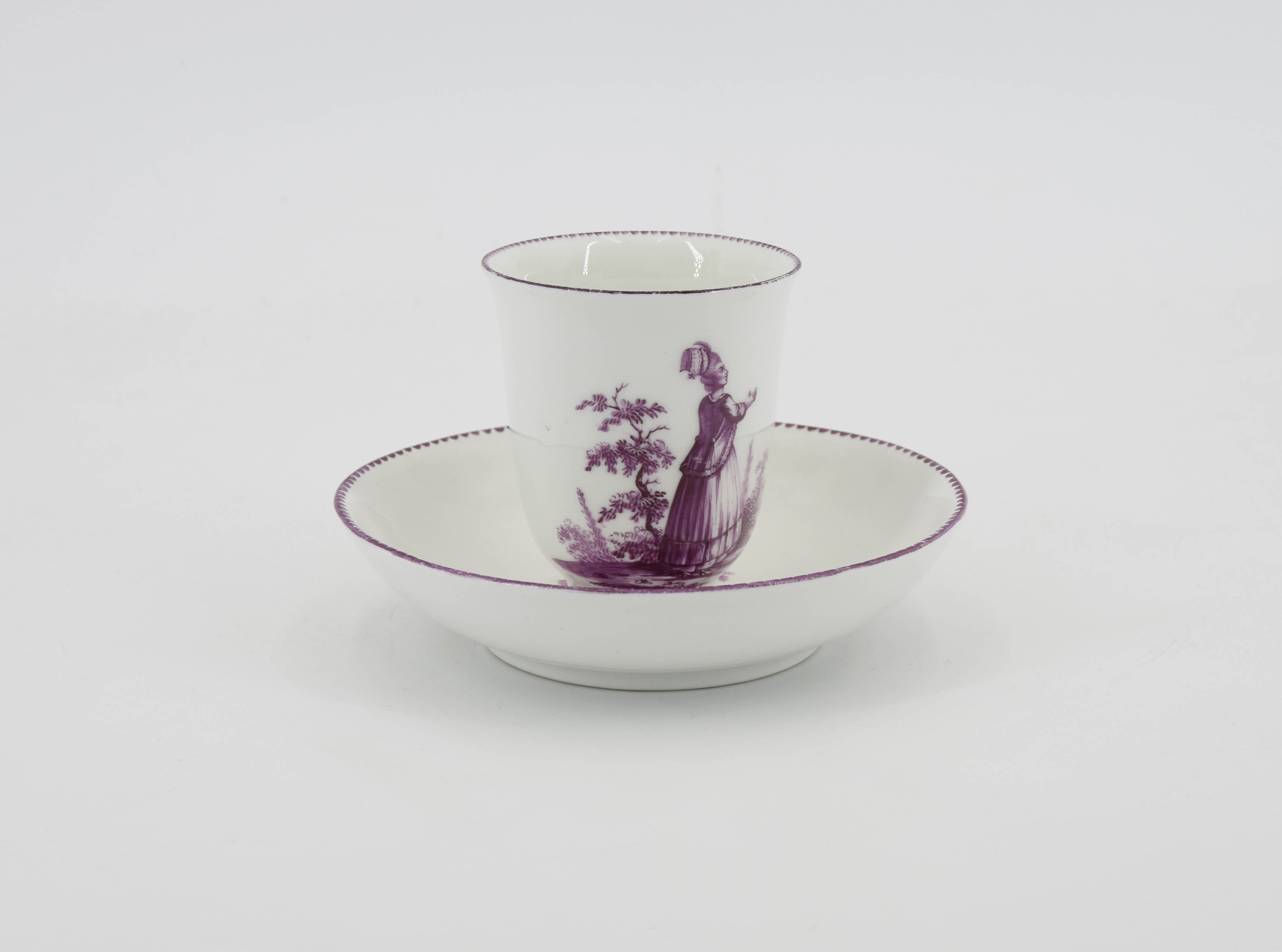 porcelana, farby naszkliwne; wymiary: filiżanka - wys. 7,3 cm, spodek - śr. 13 cm;