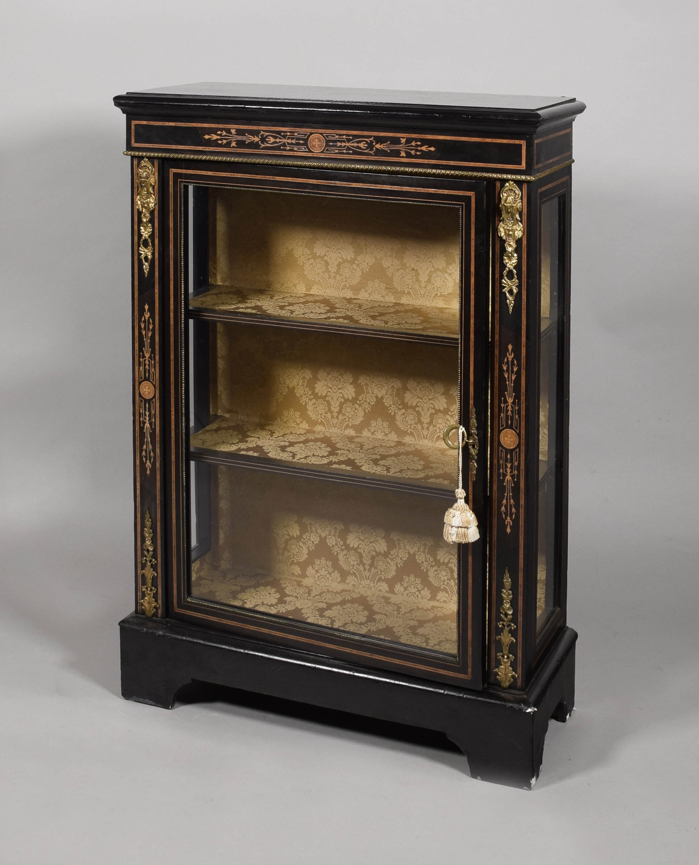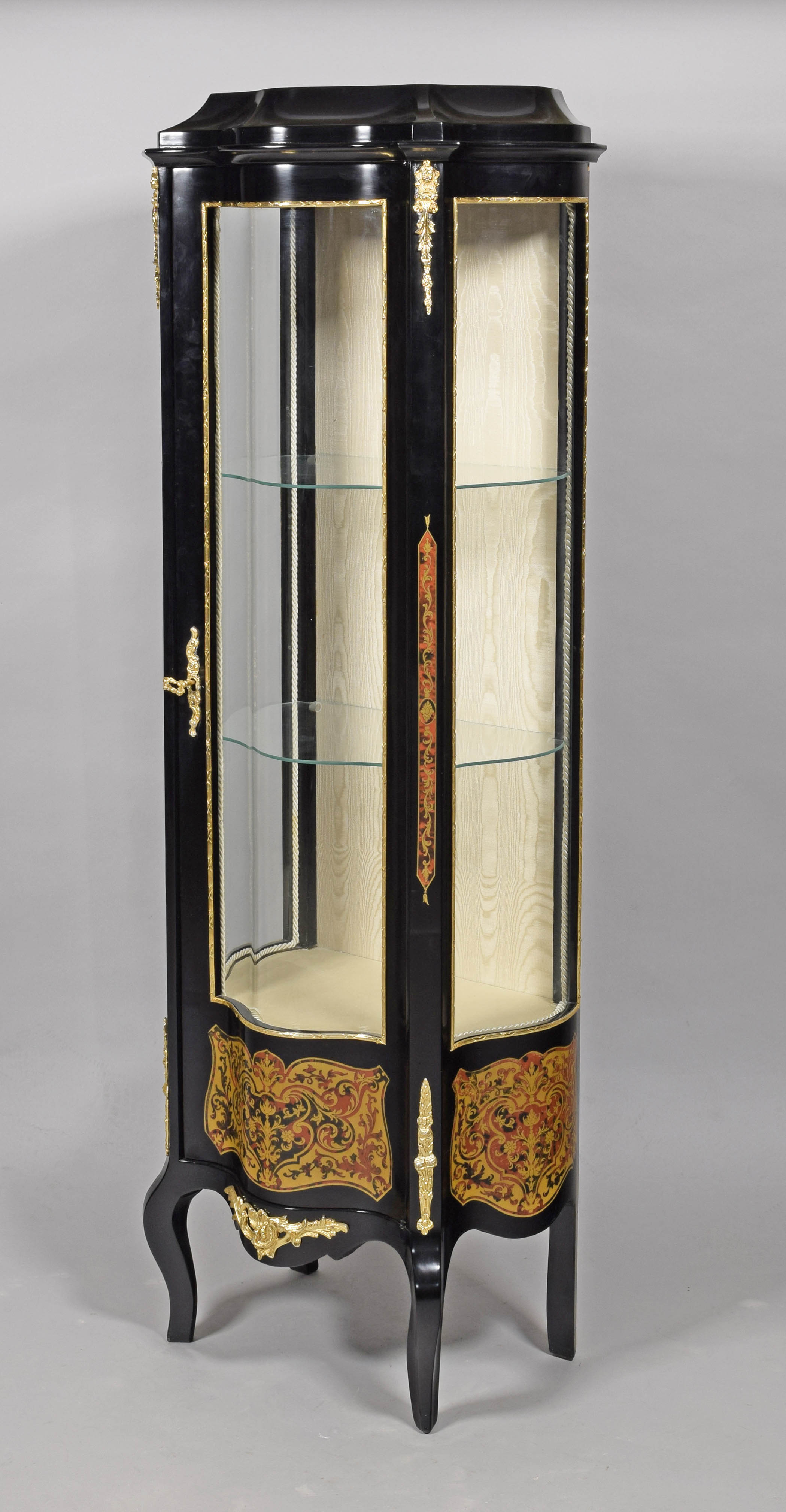 drewno, mosiądz, tkanina, szkło; wys. 153 cm; szer. 53 cm; głęb. 33 cm;