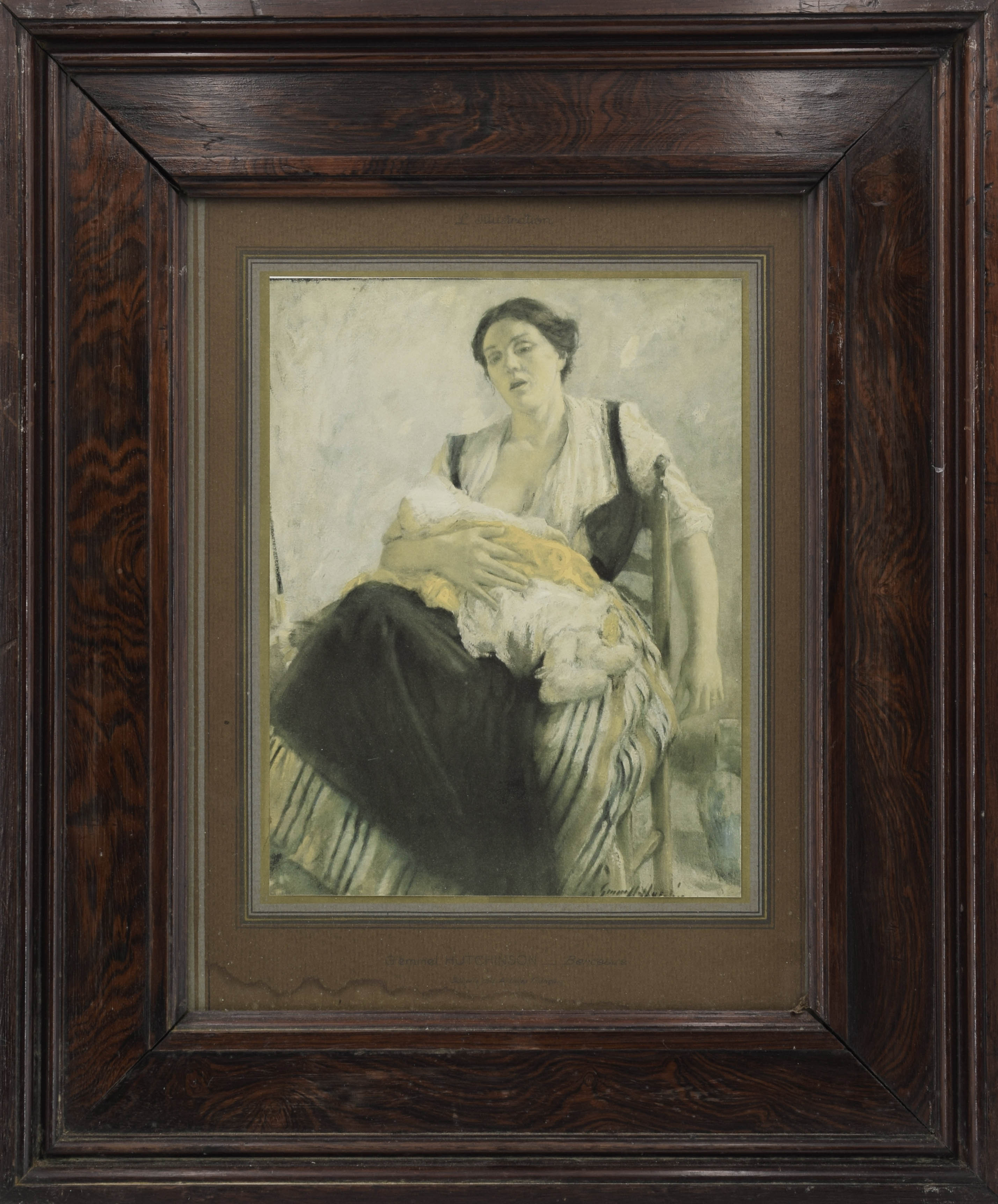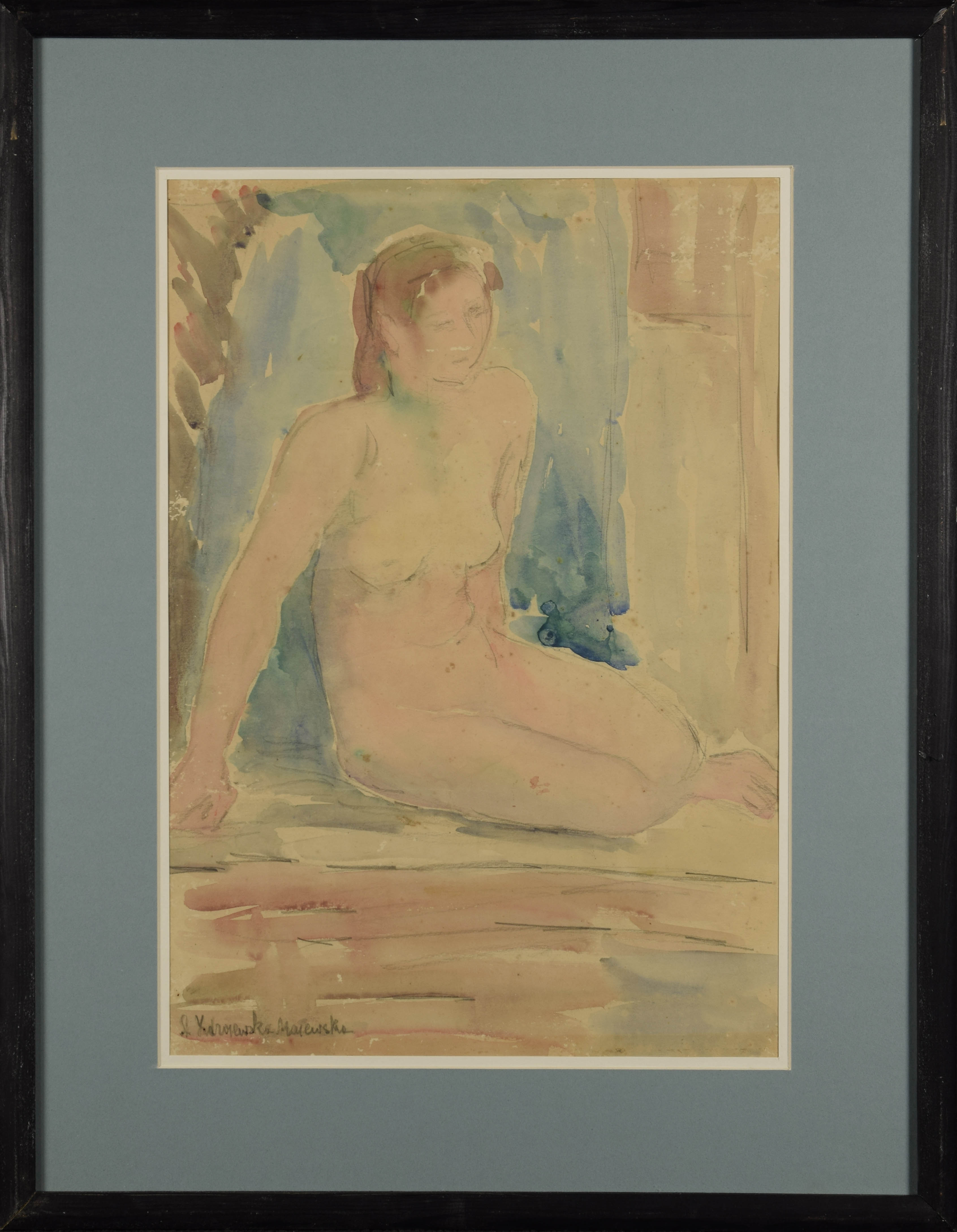 akwarela na podrysowaniu ołówkiem, papier; 46,5 x 32,5 cm (w świetle oprawy);
