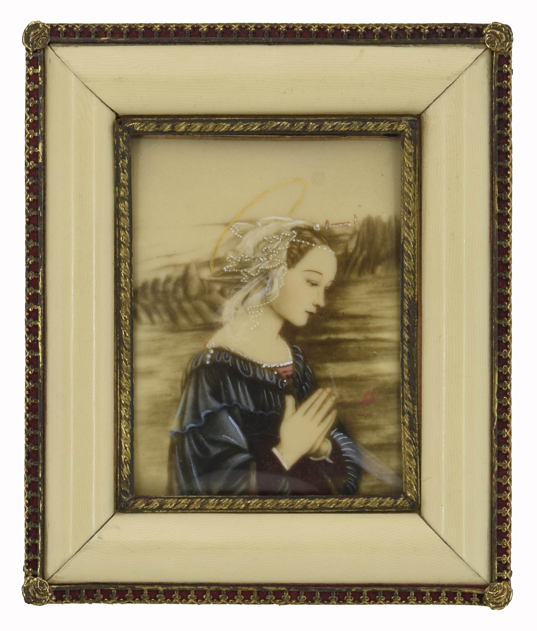 farba, kość zwierzęca?; wym.: 9 x 6,3 cm (w świetle oprawy);