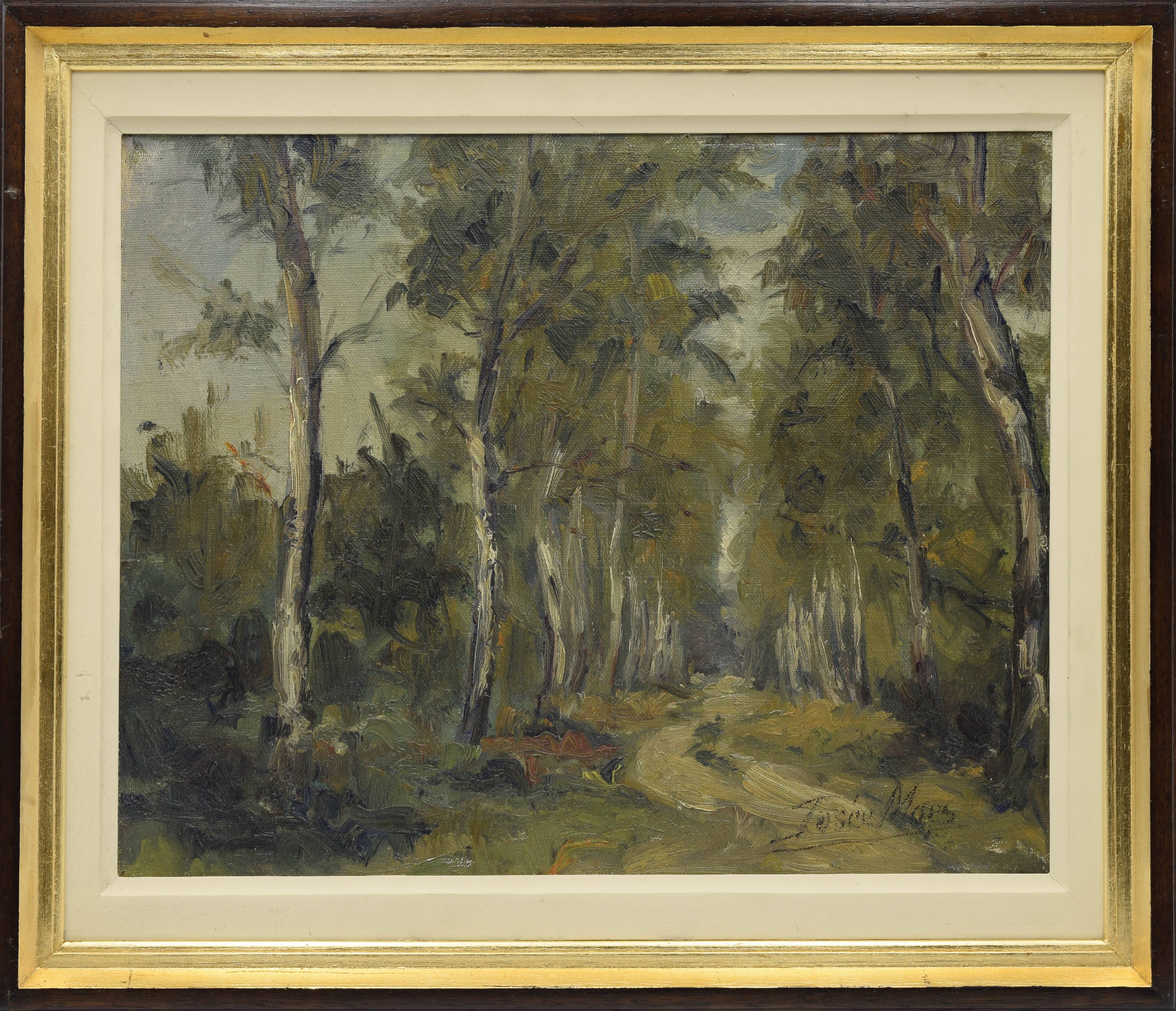 olej, sklejka; 51 x 18 cm (w świetle oprawy).