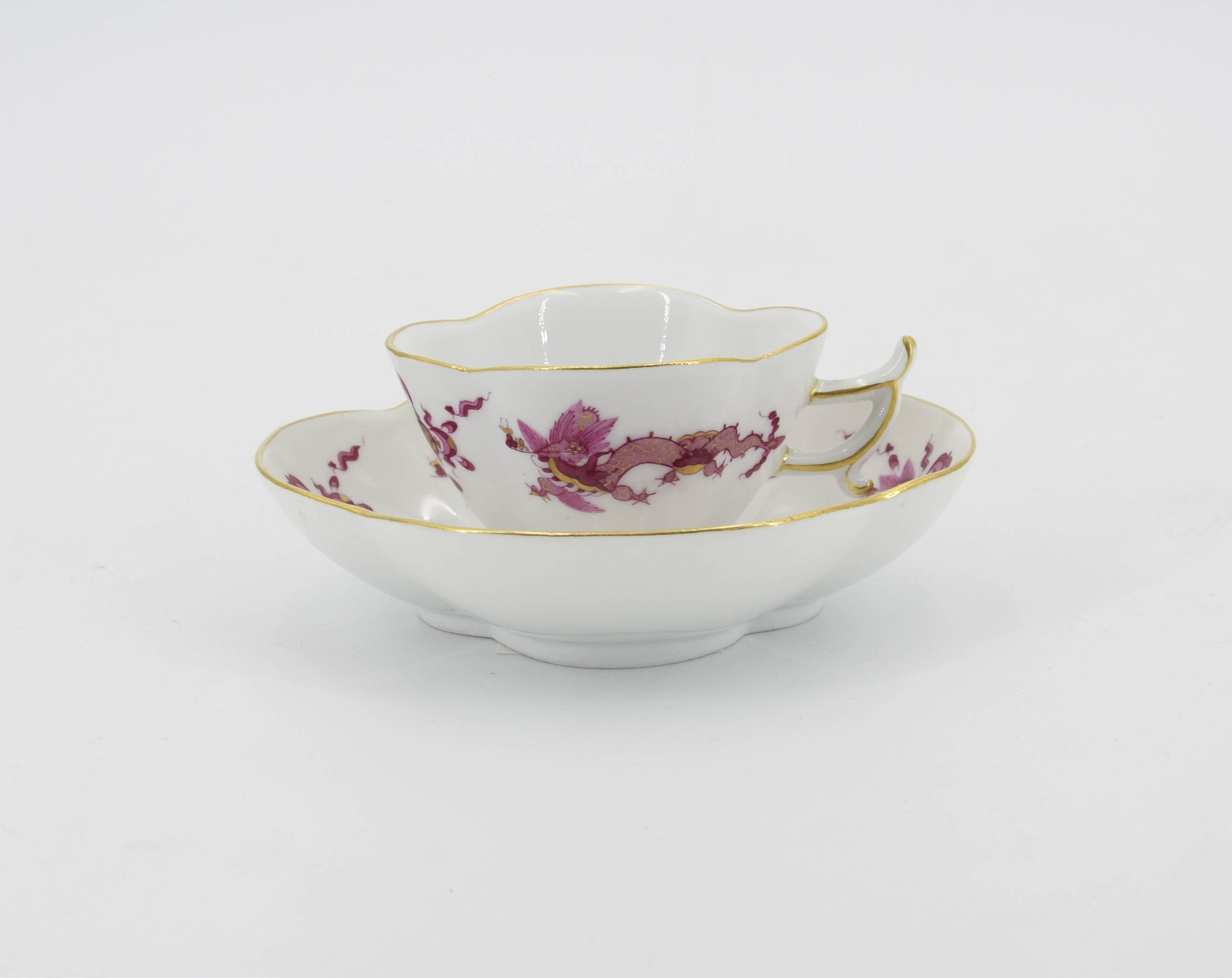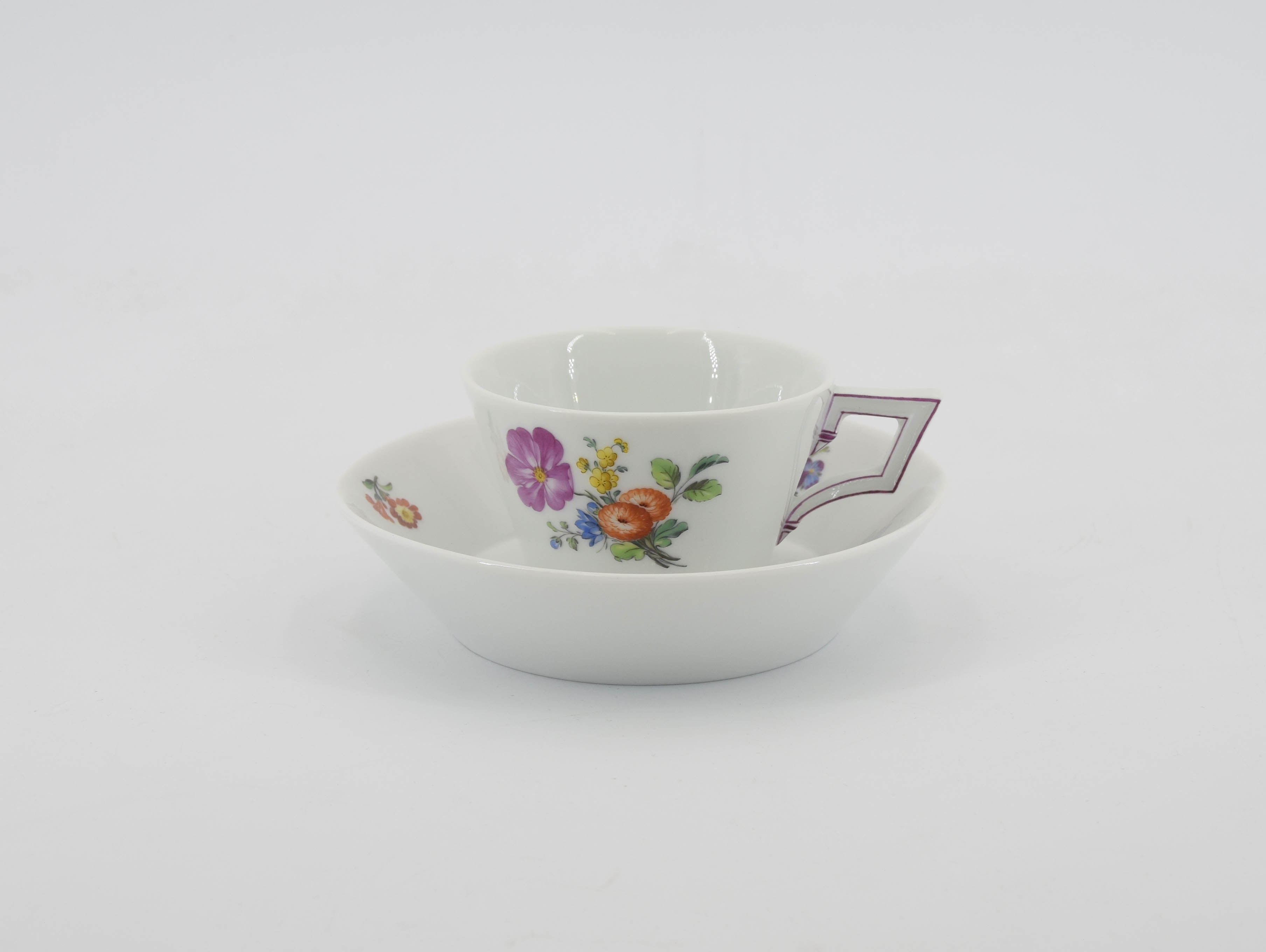 porcelana, farby naszkliwne; wymiary: filiżanka - wys. 4,6 cm, talerzyk - śr. 13 cm;