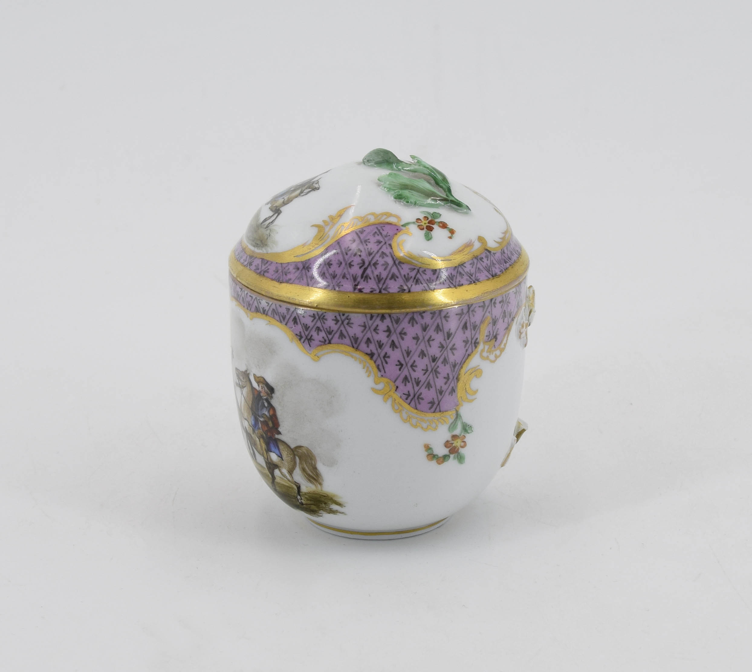 porcelana, farby naszkliwne, złocenie; wys. całkowita: 9,5 cm;