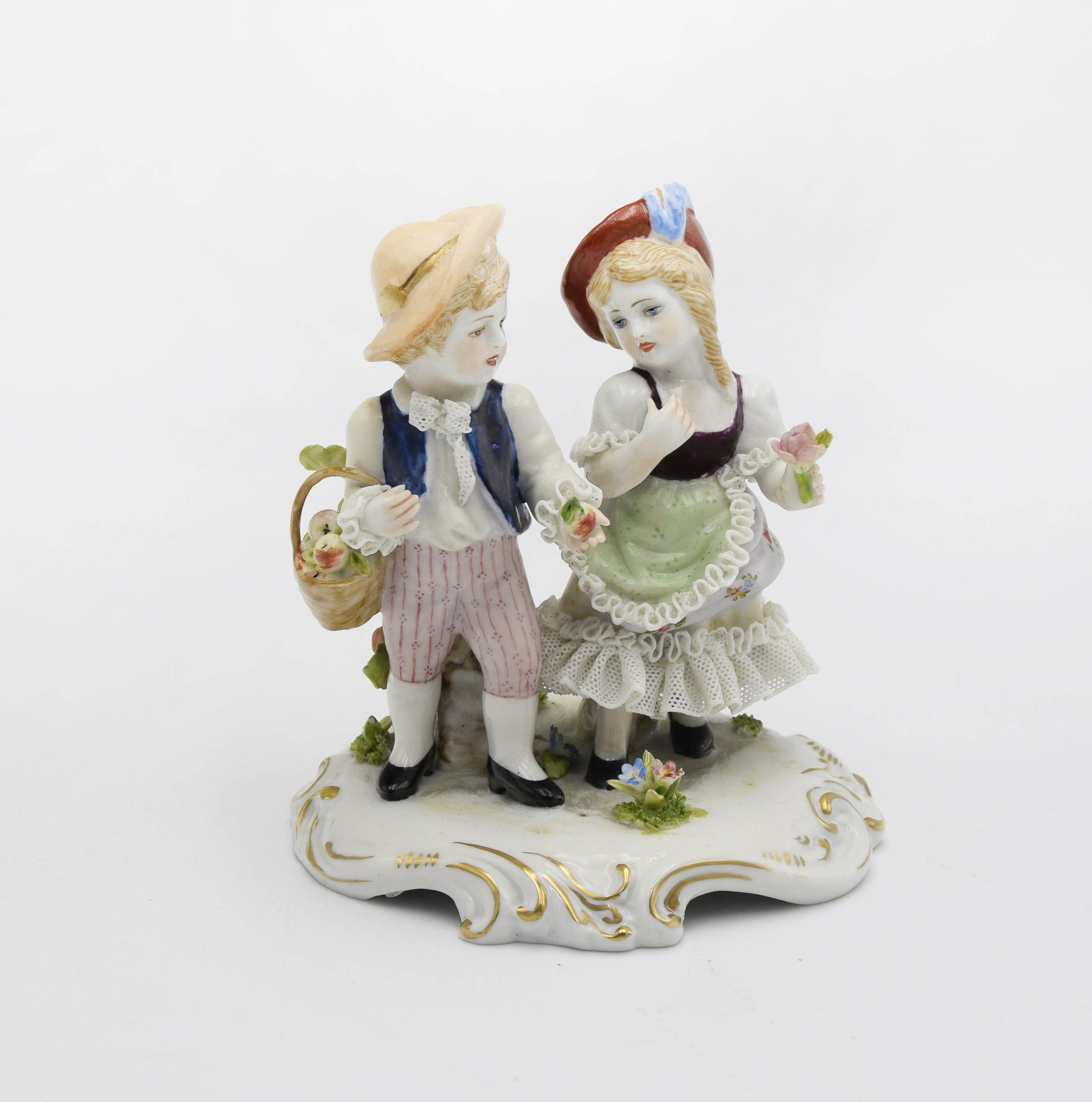 porcelana, farby naszkliwne, złocenia; wys. 12 cm, podstawa 11 x 10 cm (owal);