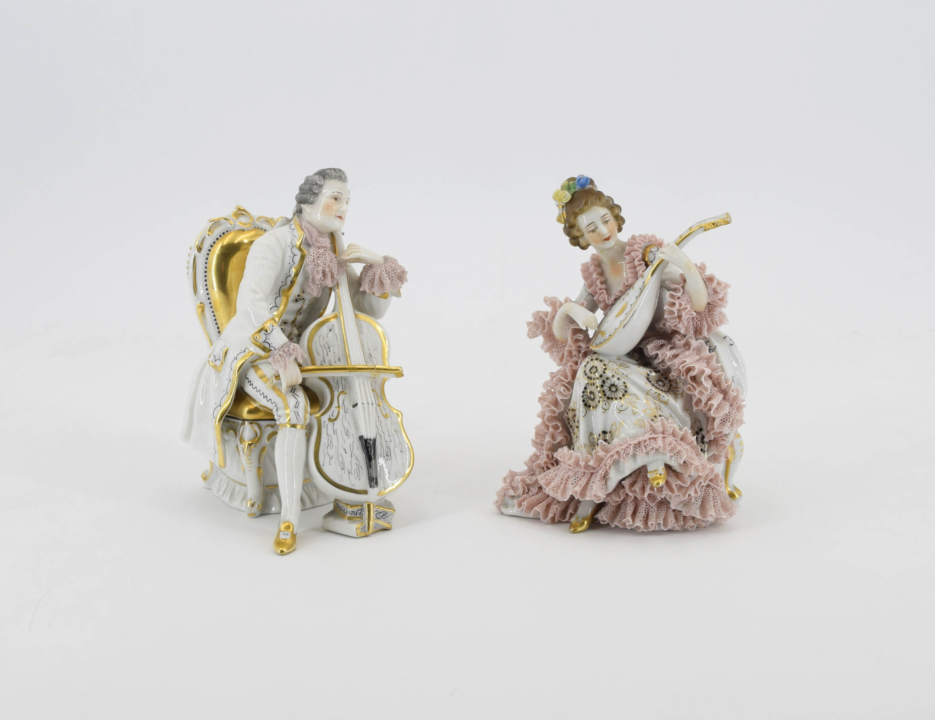 porcelana, farby naszkliwne, złocenie; wys. 13,5 cm oraz 13 cm;