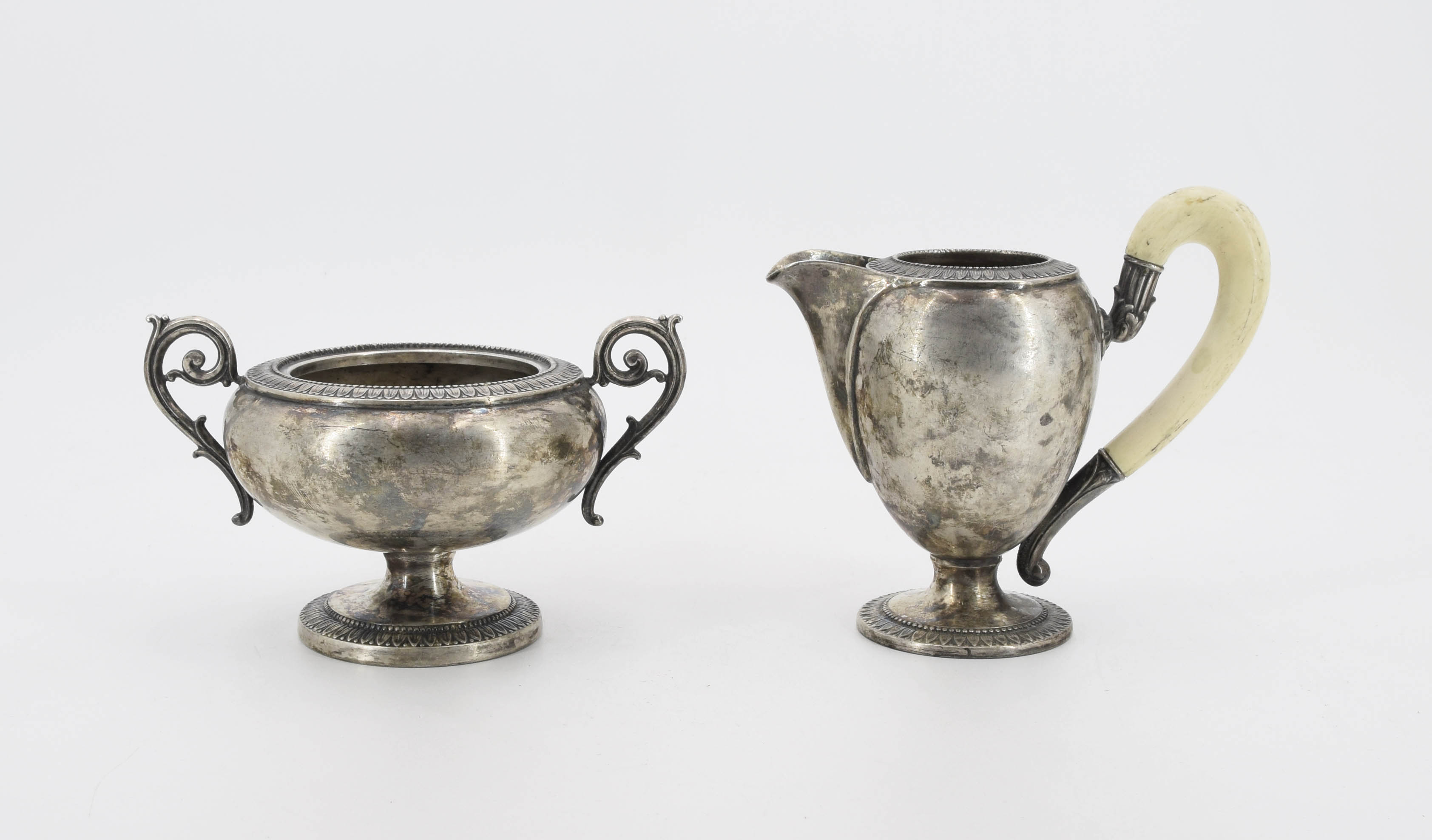 srebro pr. 84, kość; mlecznik wys.: 14,3 cm, waga: 290 g, cukiernica wys.: 10 cm, waga: 344 g;