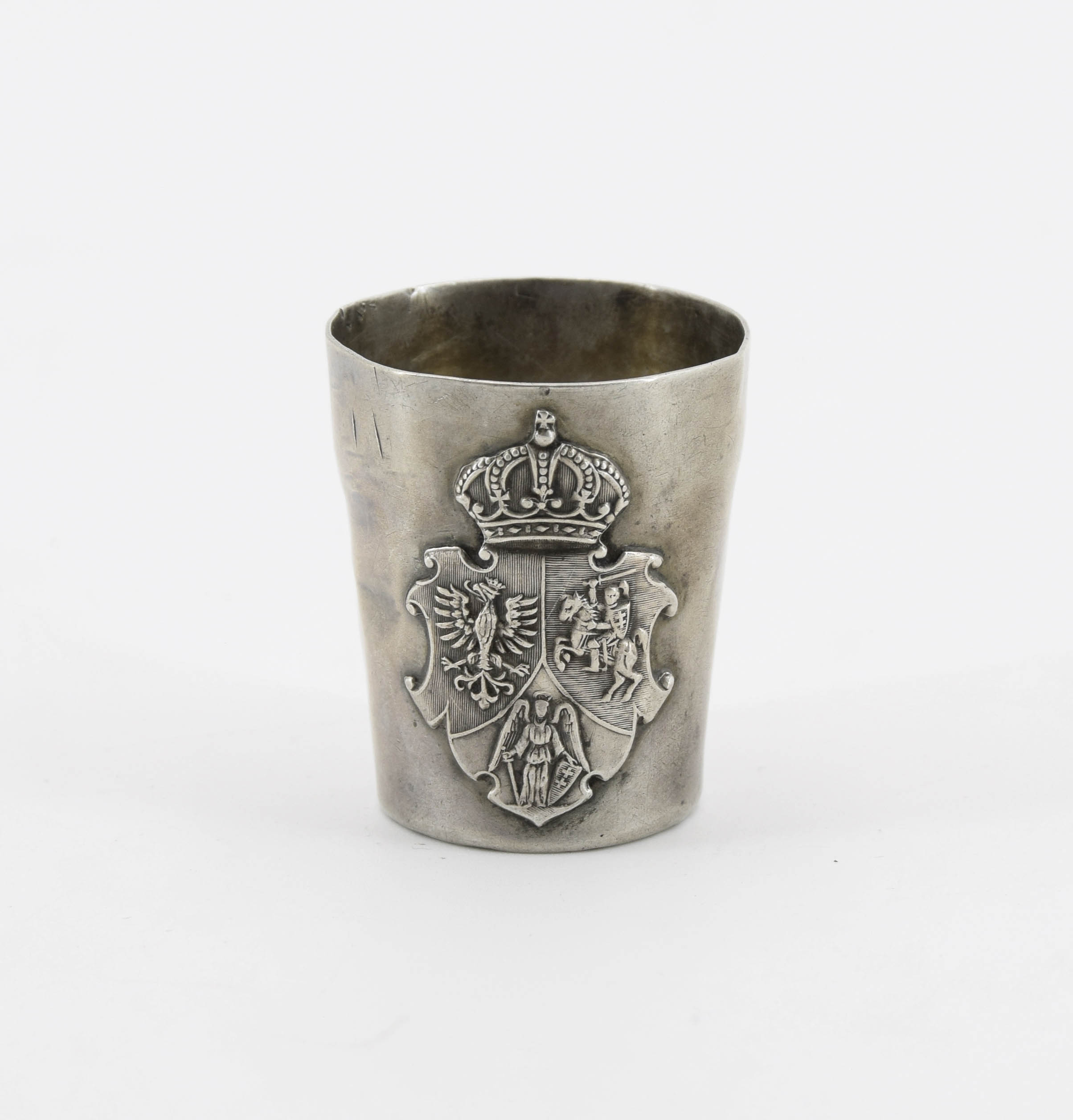srebro; wys. kubka: 6,5 cm, wys. kieliszka: 9,8 cm; waga łączna: 71 g;