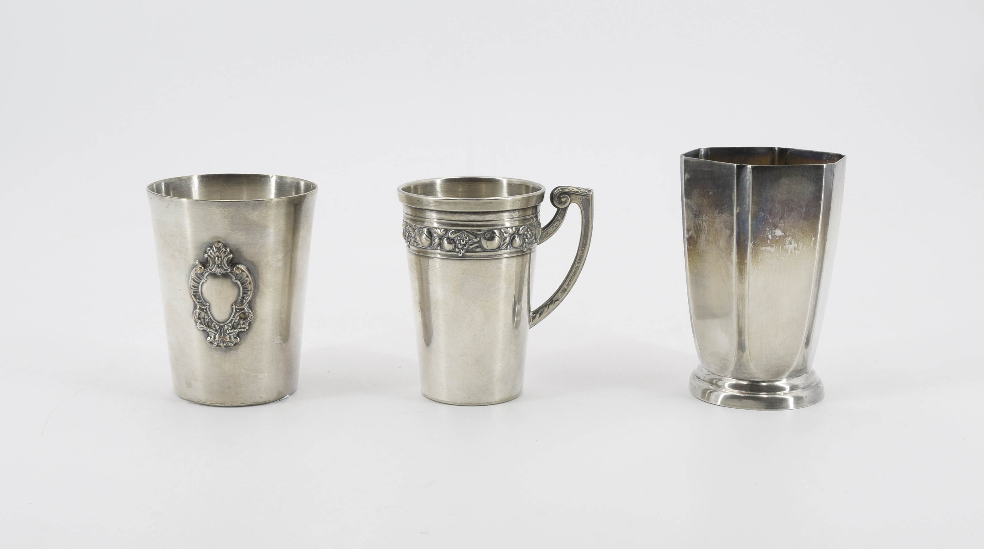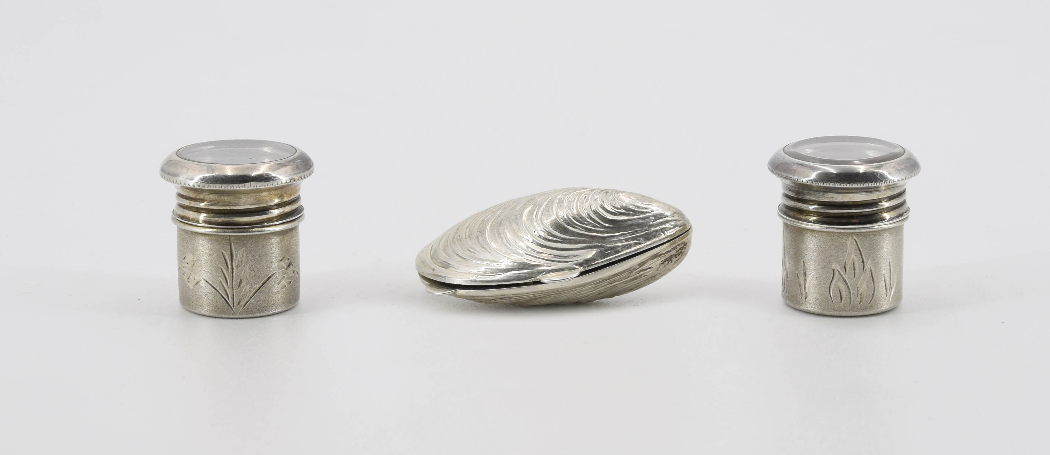 srebro, szkło; wym. od 2,5 x 2,5 x 2,5 cm do 2 x 4,5 x 2,5 cm.