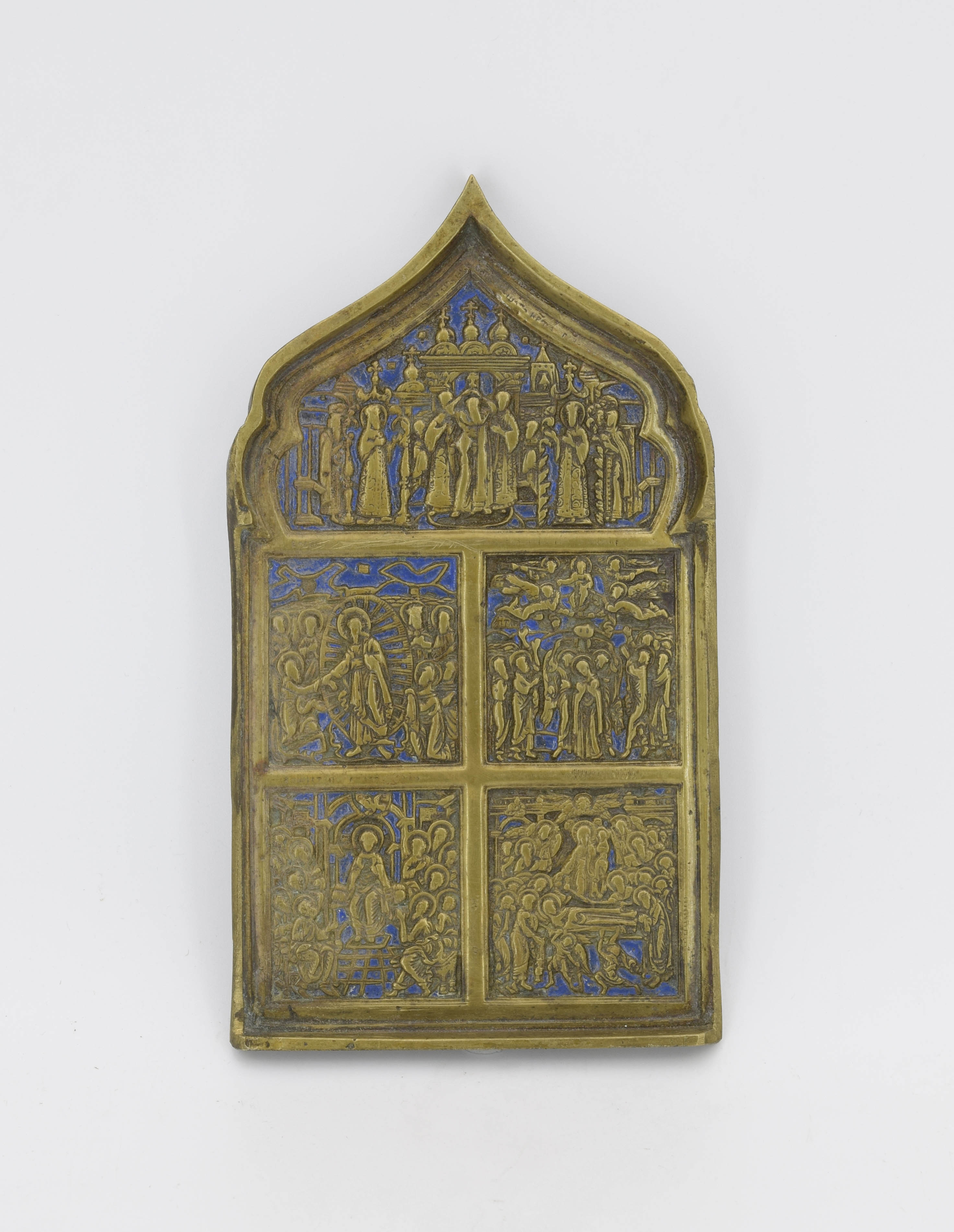 mosiądz, emalia; 18 x 10 cm.