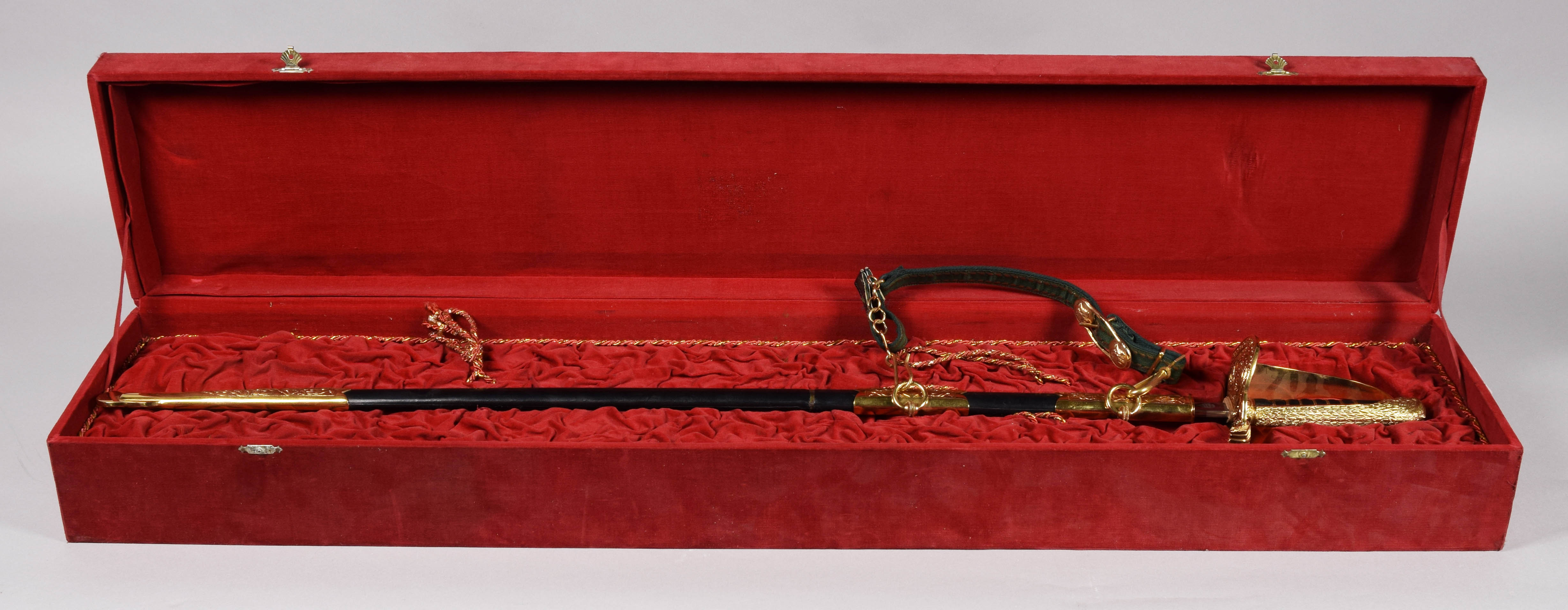 Szabla w czerwonym pudle wyściełanym.