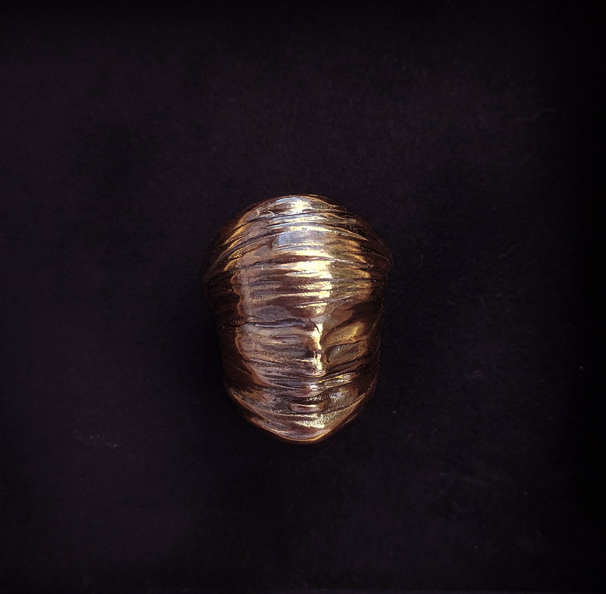brąz, 2,9 x 2,3 x 2,6 cm, praca oprawiona (wymiary z oprawą 18 cm x 18 cm)