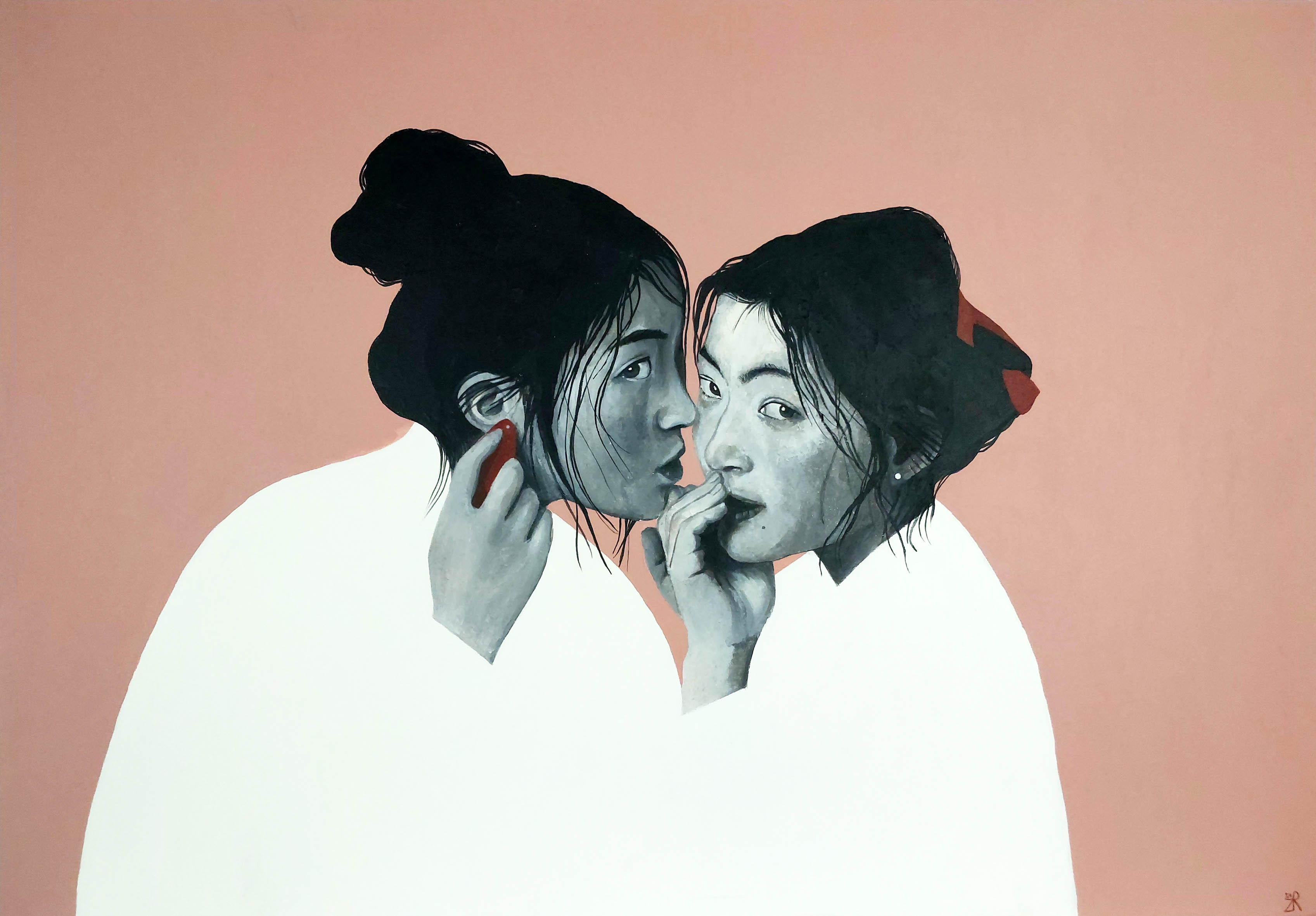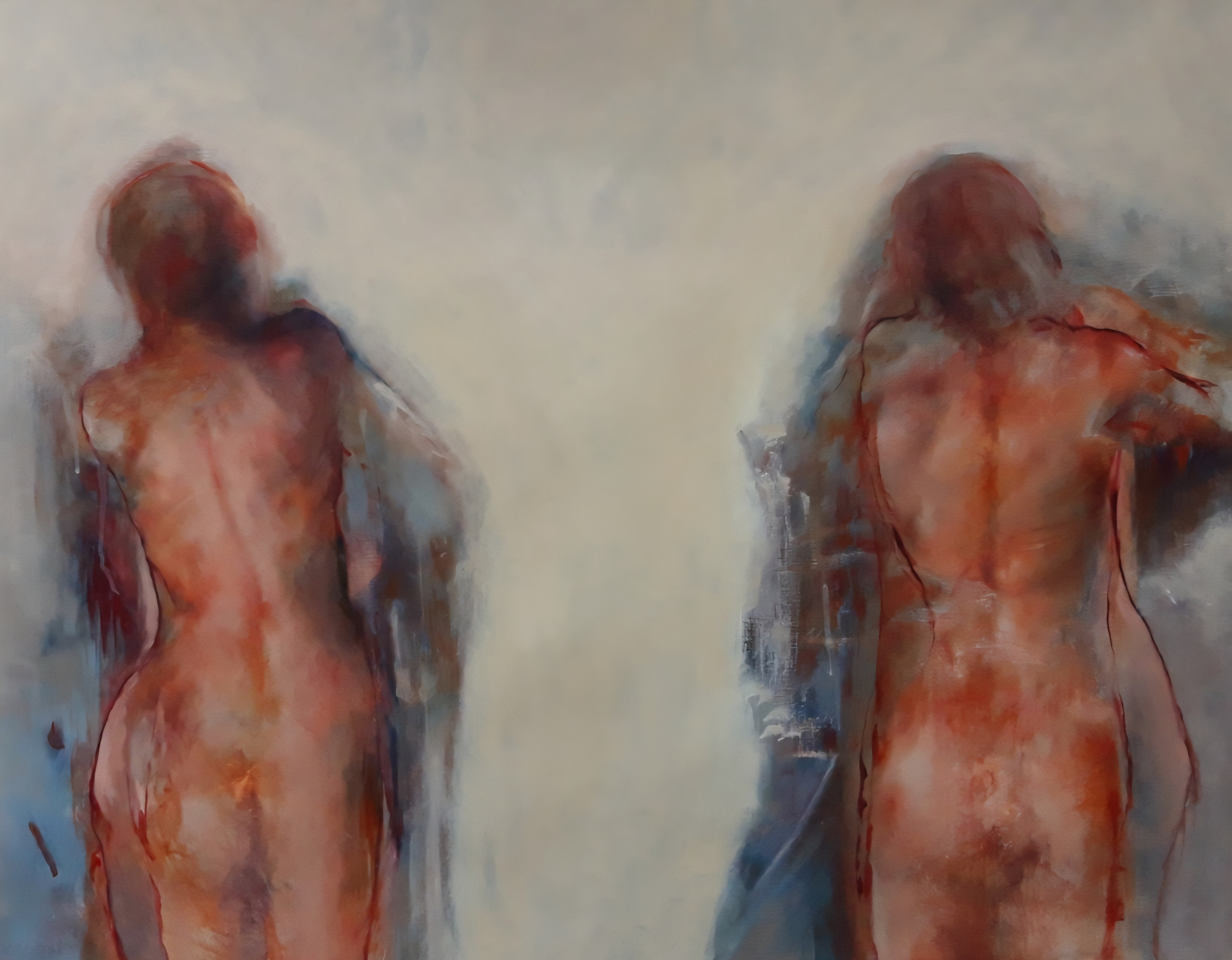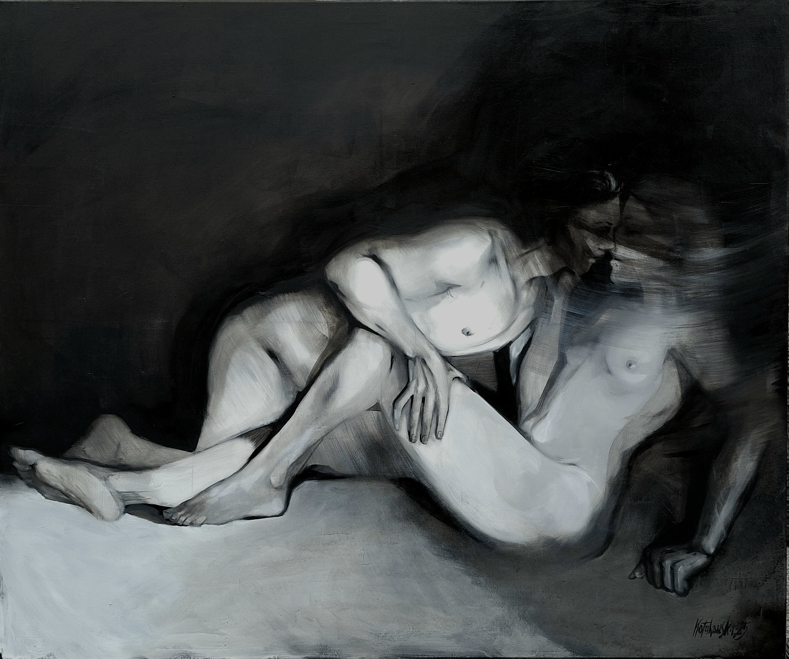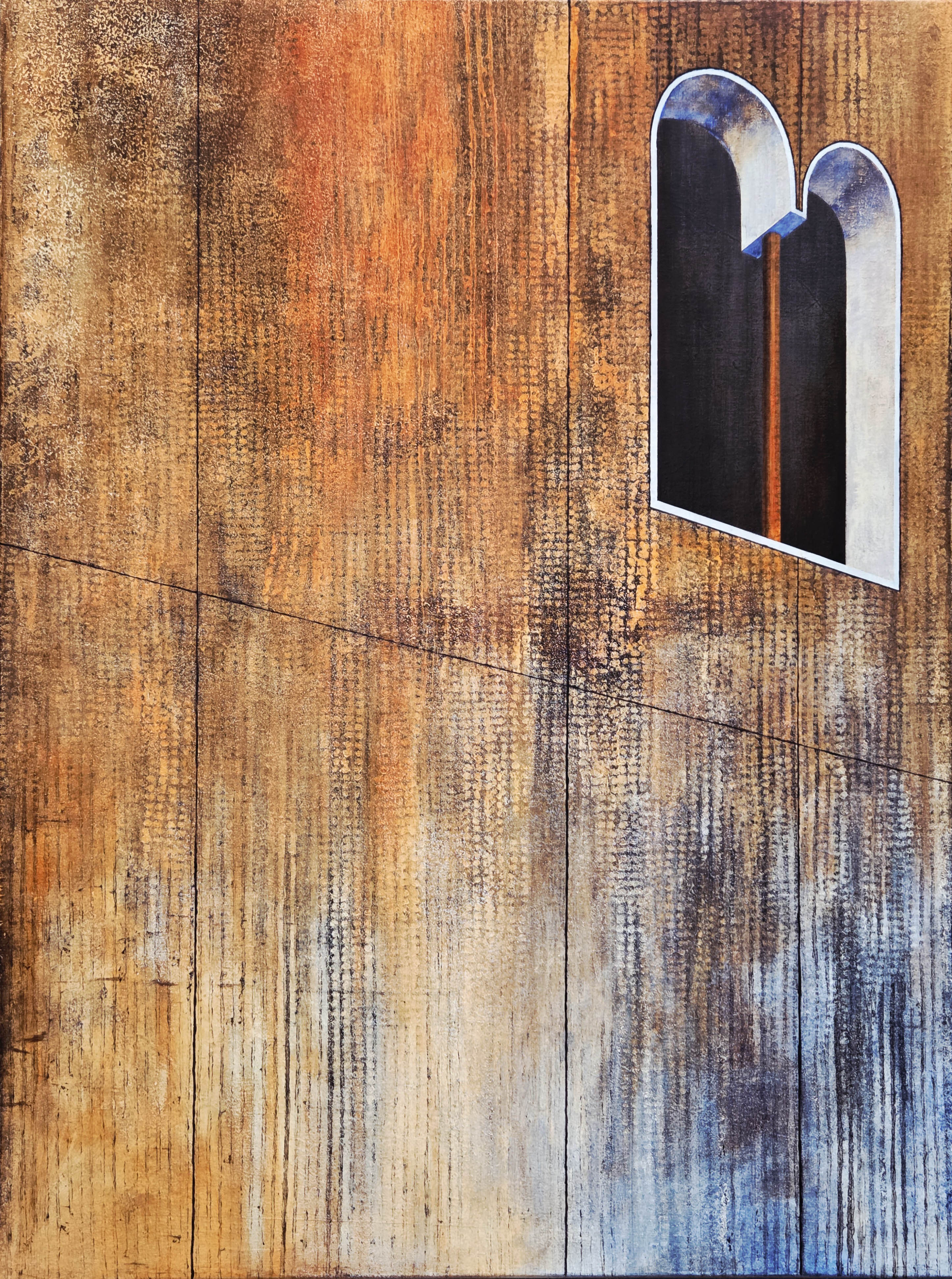 technika mieszana (akryl, tusz, pasta strukturalna), płótno, 130 x 100 cm (2 płótna o wymiarach 130 x 50 cm),