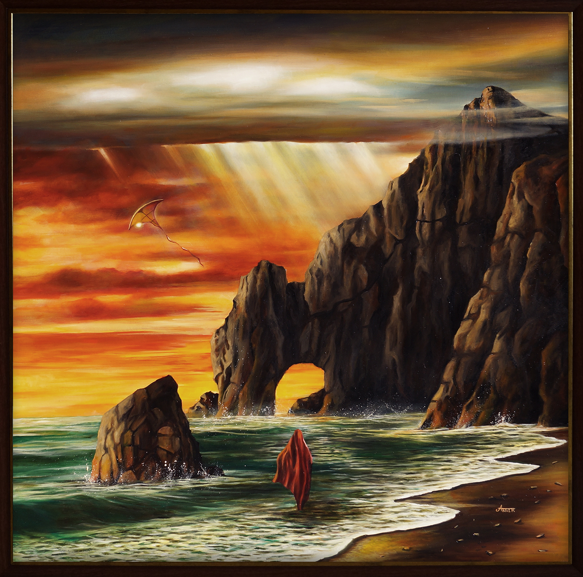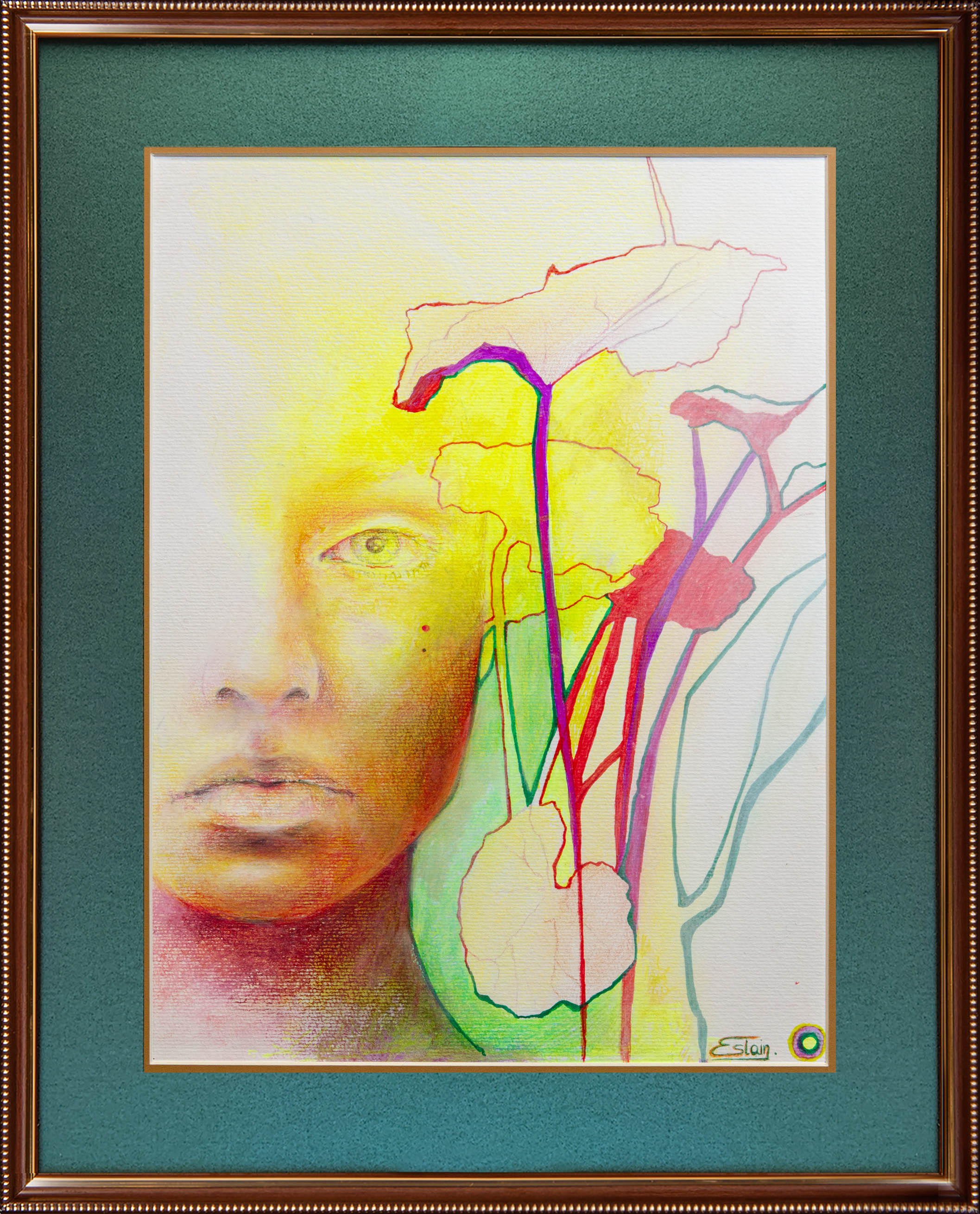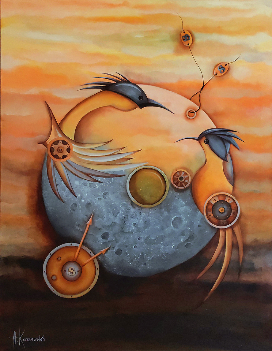 technika mieszana (akryl, kredka), papier 300 g, 40 x 30 cm, w oprawie: 52,5 x 42,5 cm,