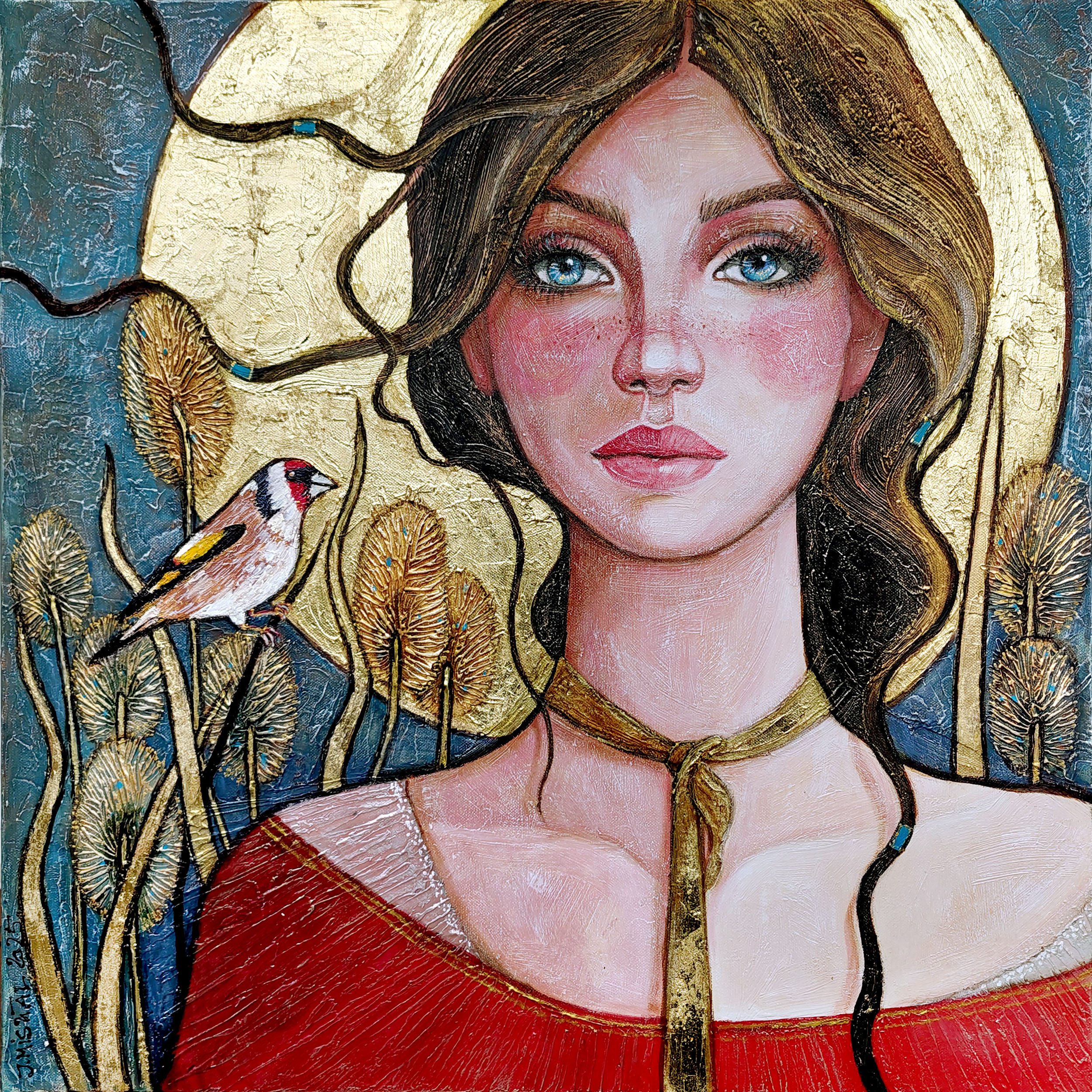 technika mieszana (akryl, szlagmetal), płótno, 100 x 100 cm,