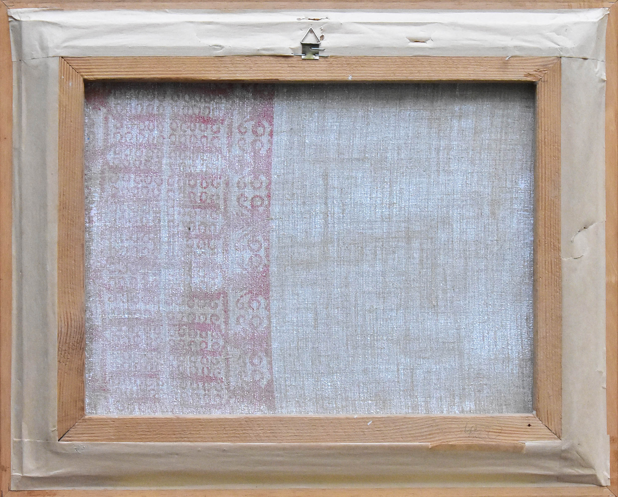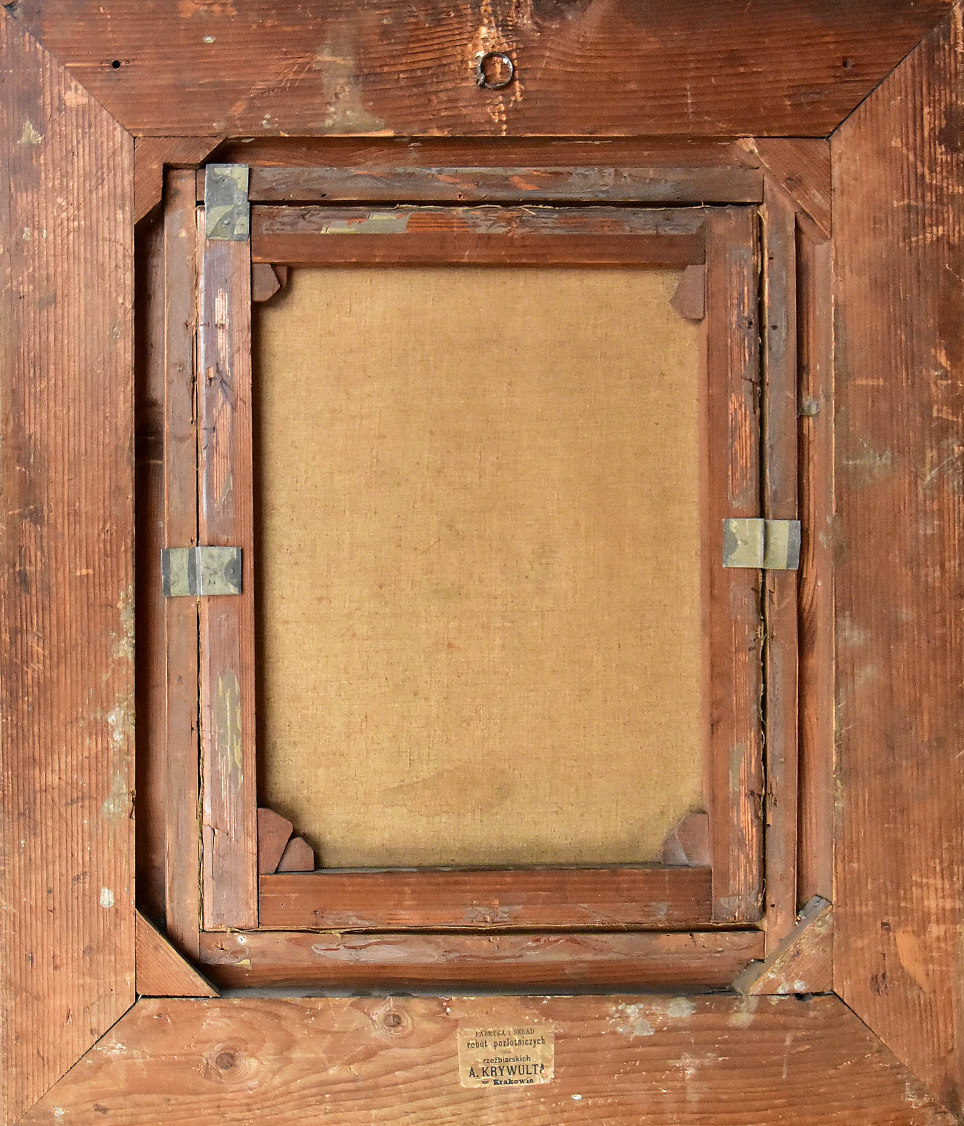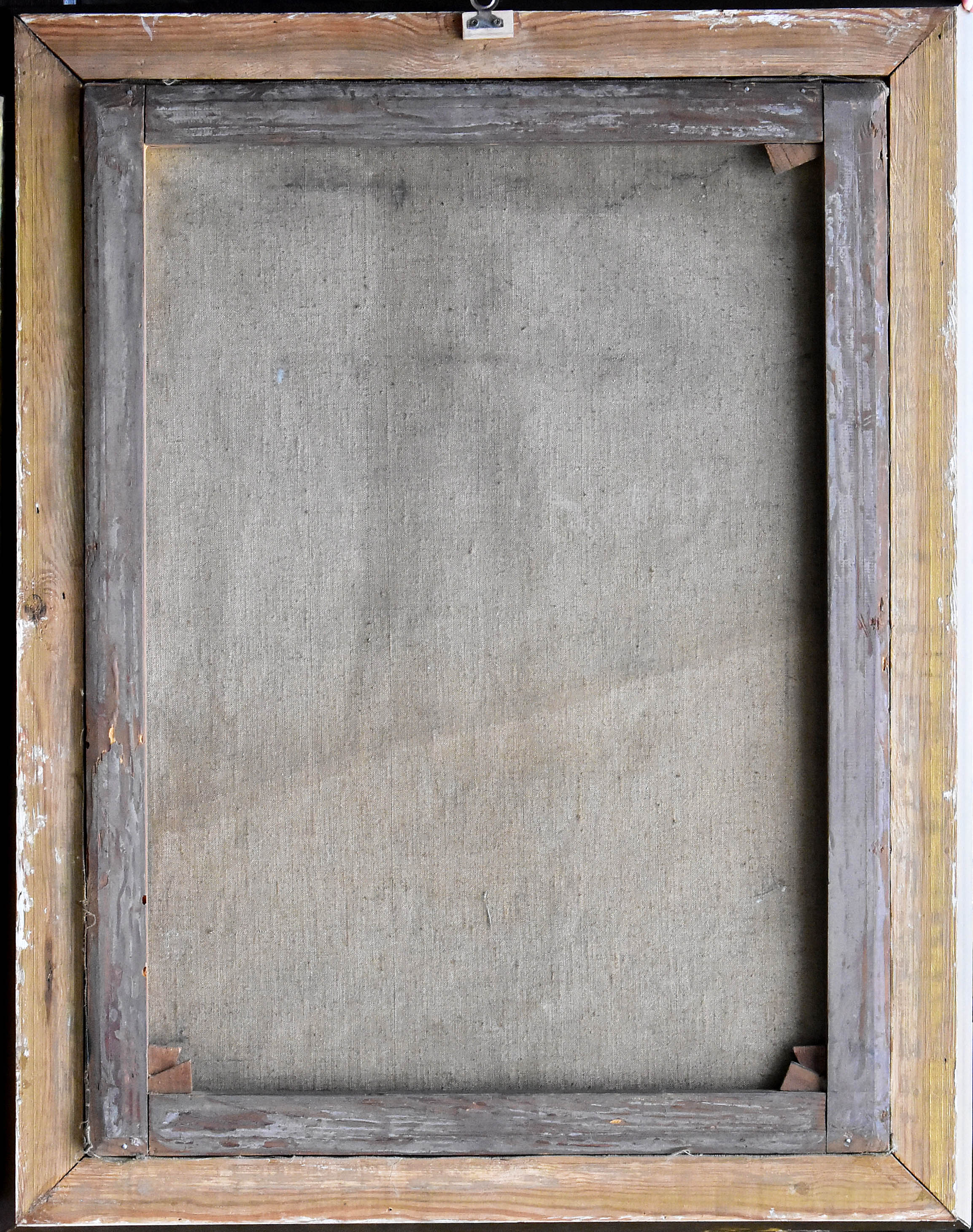 Stan zachow.: spękania, uszkodz, płótna, dziurki. Obraz oprawiony.