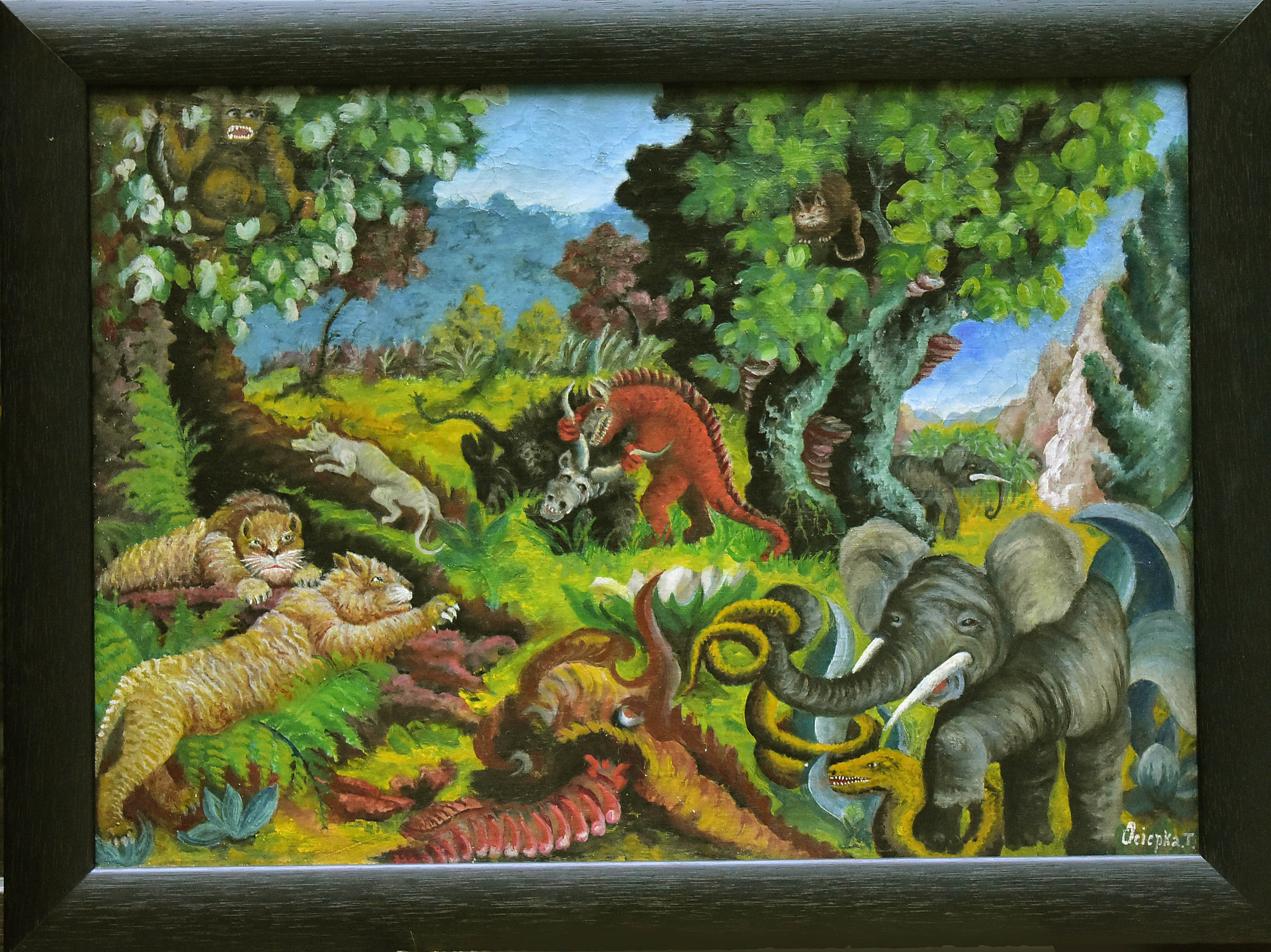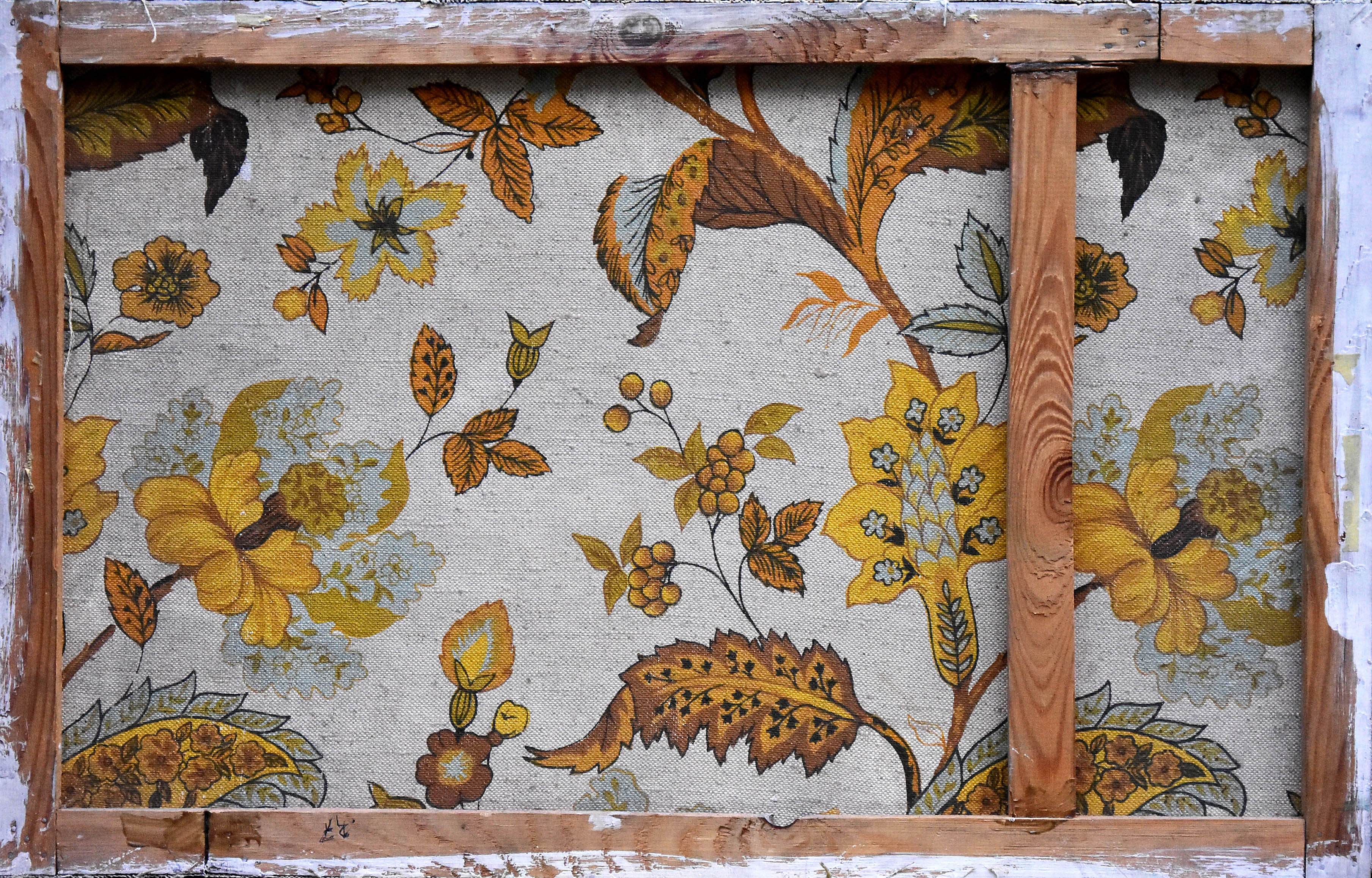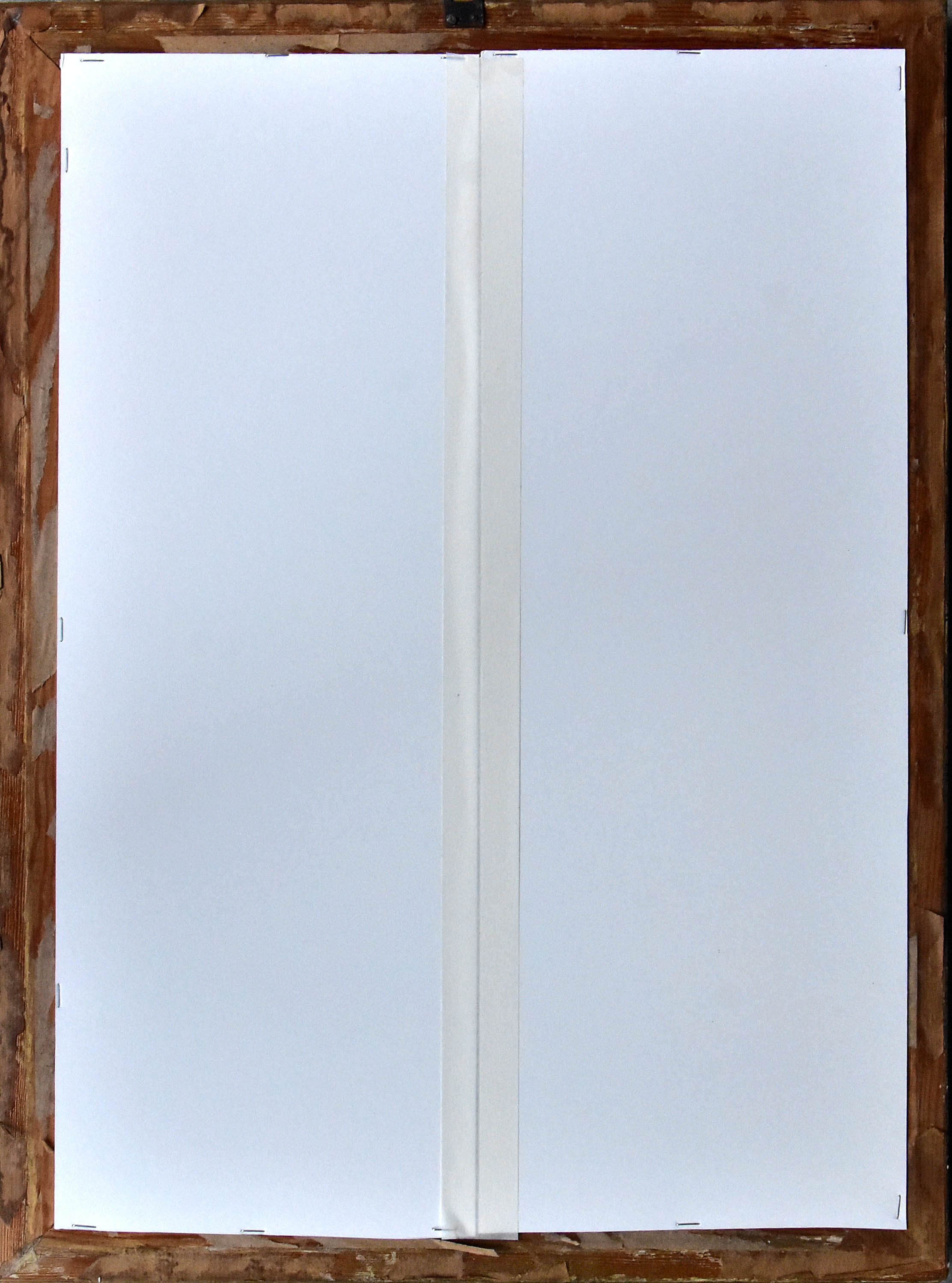 Stan zachow.: spękania, uszkodz, płótna, dziurki. Obraz oprawiony.