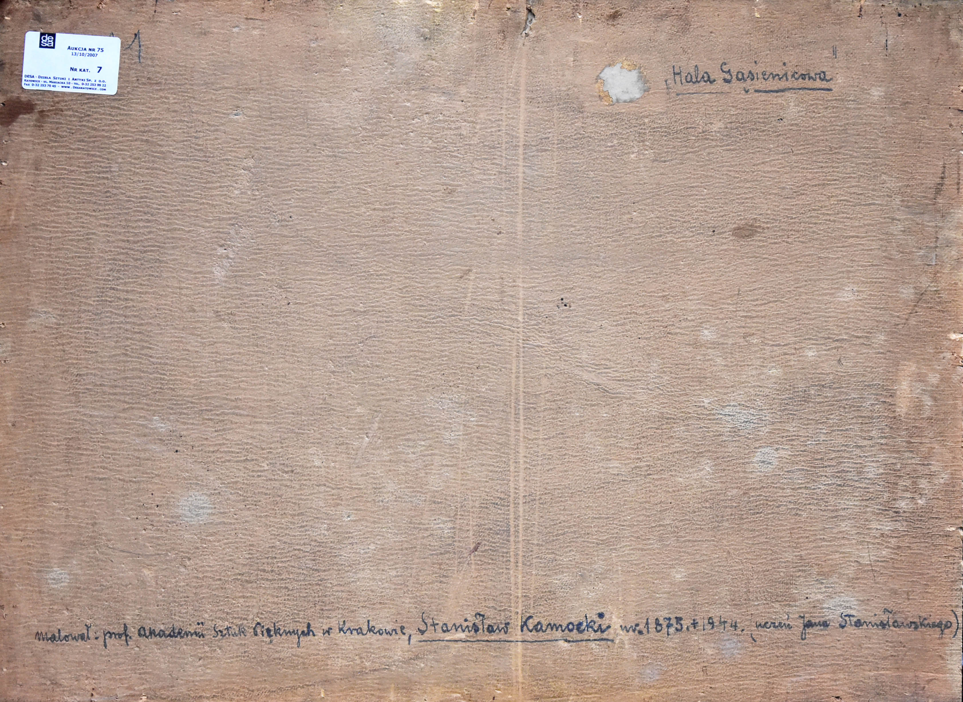 Na odwrocie napis tuszem: "Hala Gąsienicowa" / malował: prof. Akademii Sztuk Pięknych w Krakowie, Stanisław Kamocki ur. 1875. +1944. (uczeń Jana...