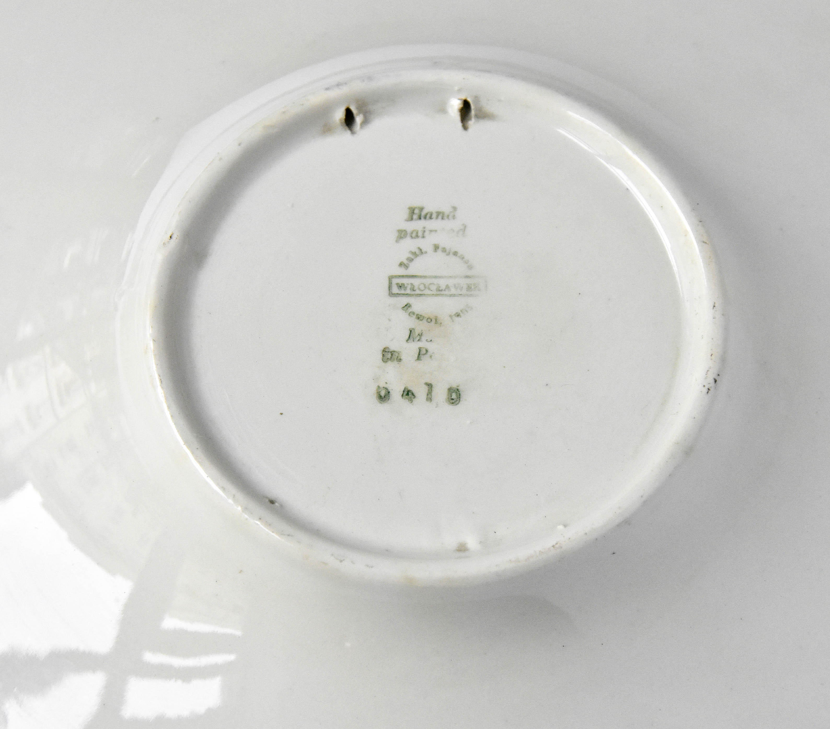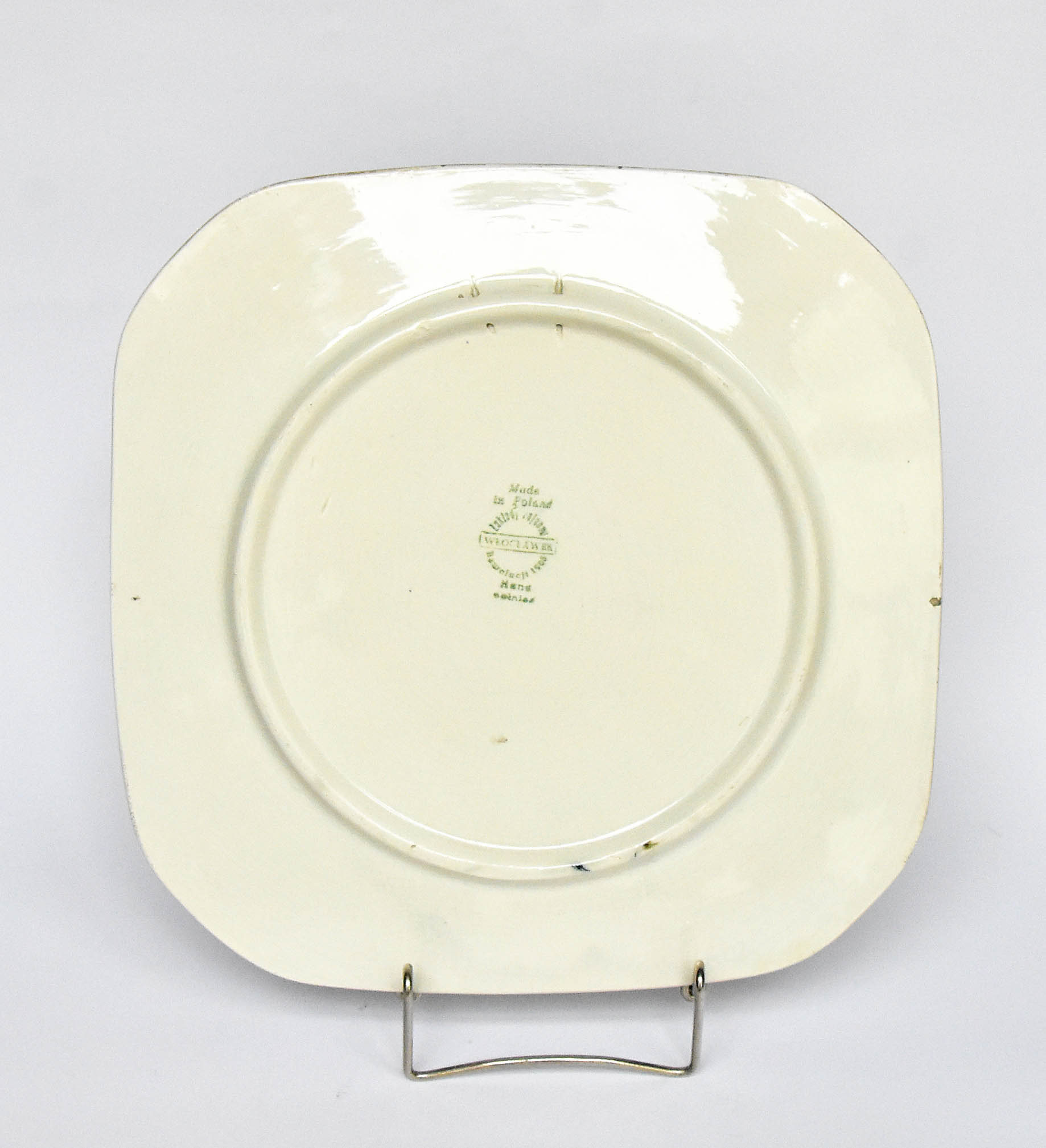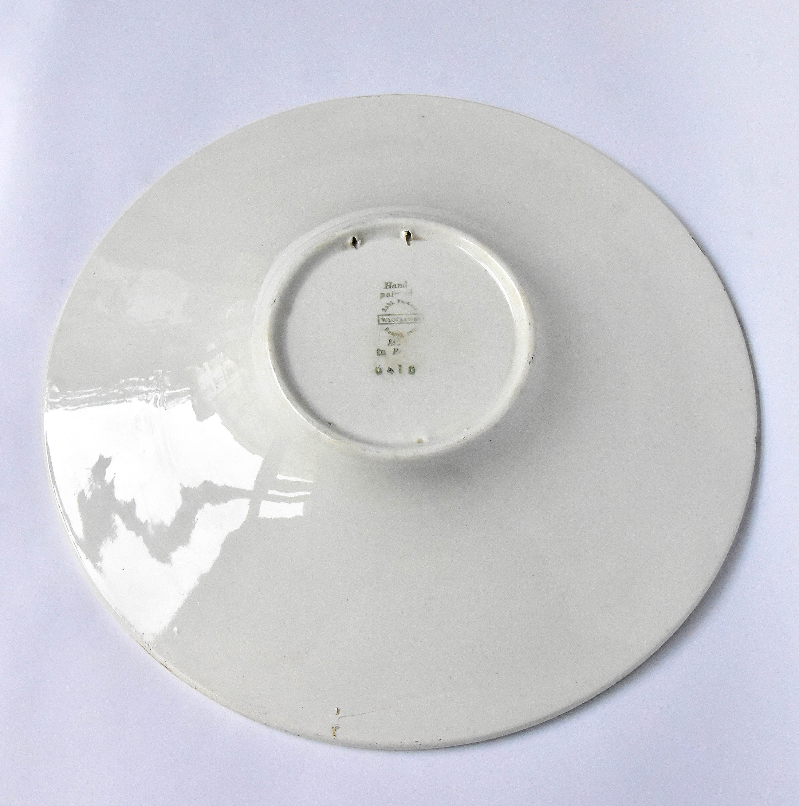 znak podszkliwny zielony Zakładu Fajansu "Włocławek" we Włocławku z lat 1956-1962, stempel: Hand/painted. Stan zachowania: dr....
