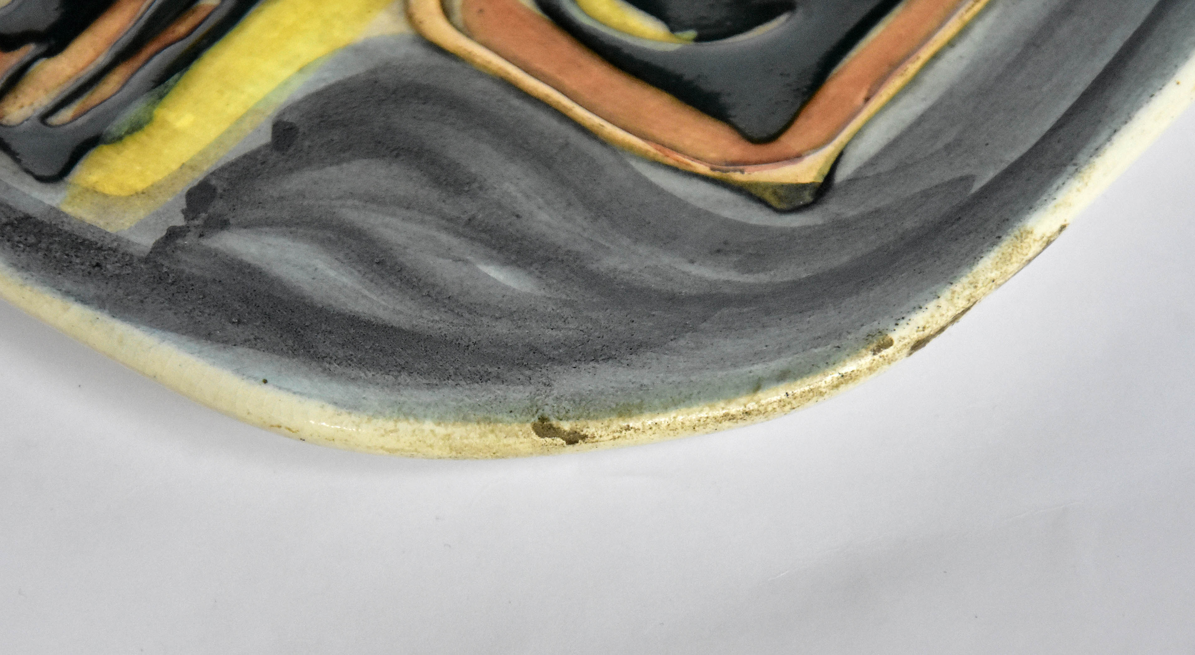 fajans, farby podszkliwne, technika "kory", forma kwadratowa, wym.: 26,5 x 26,5 cm;