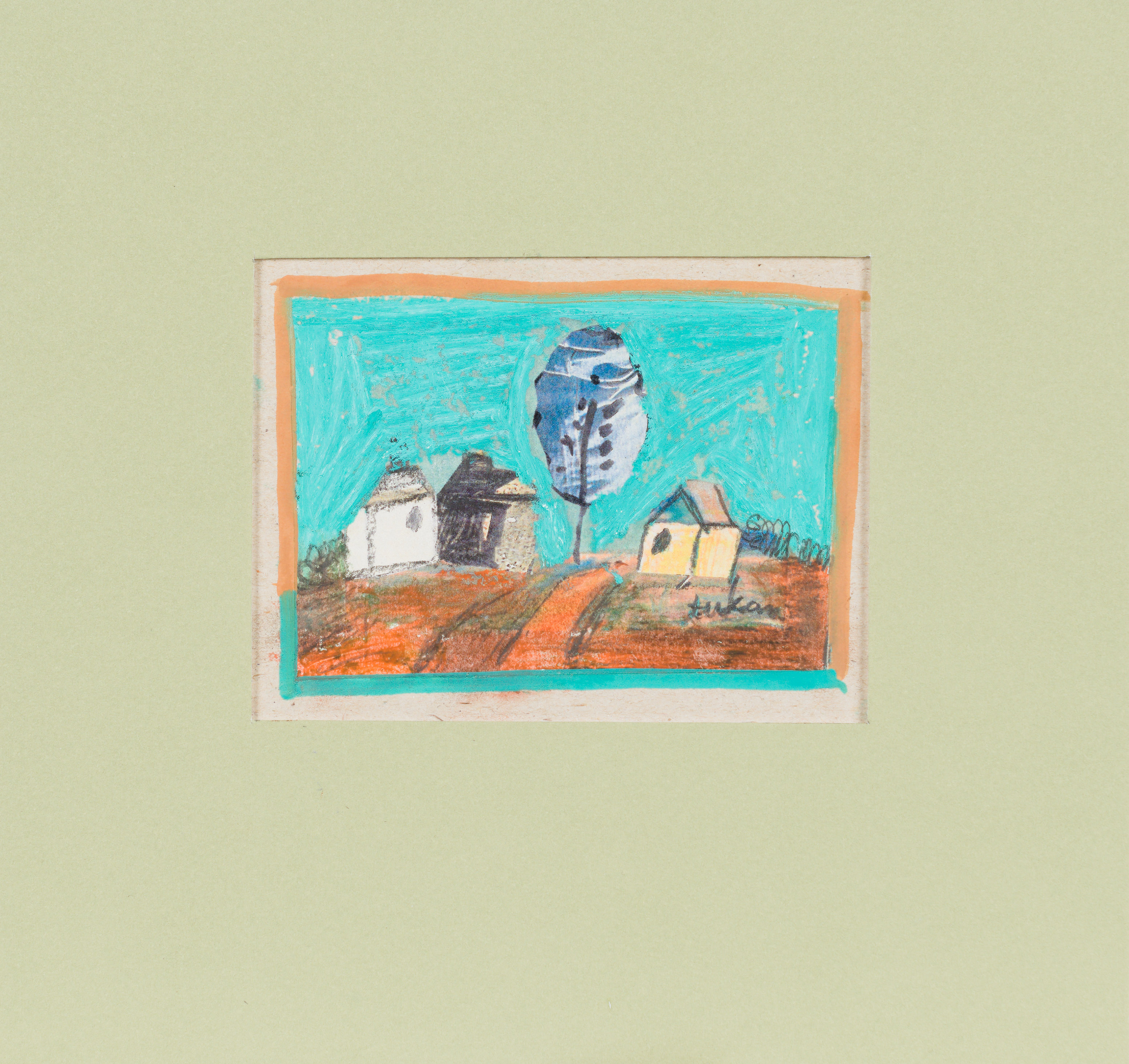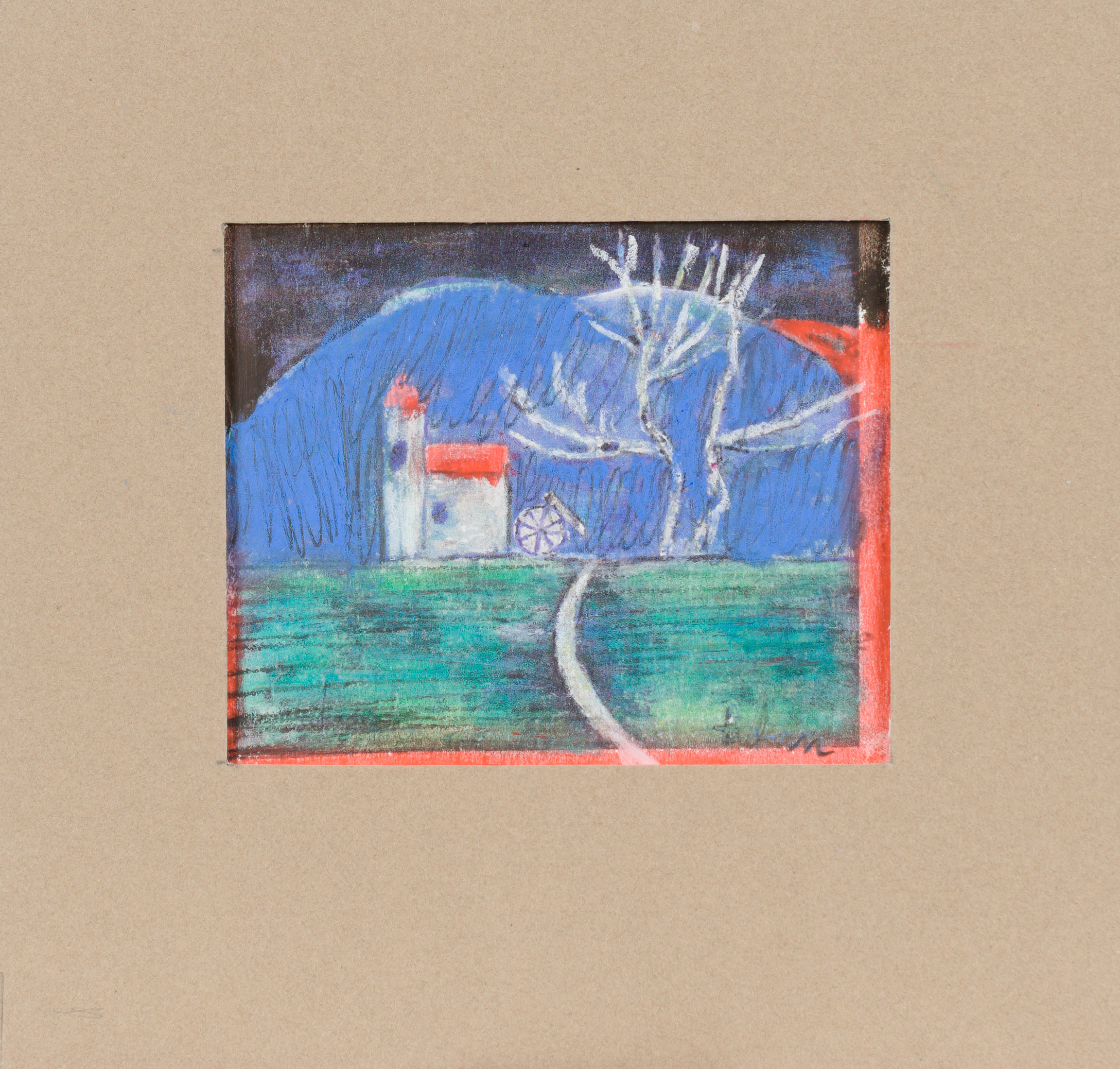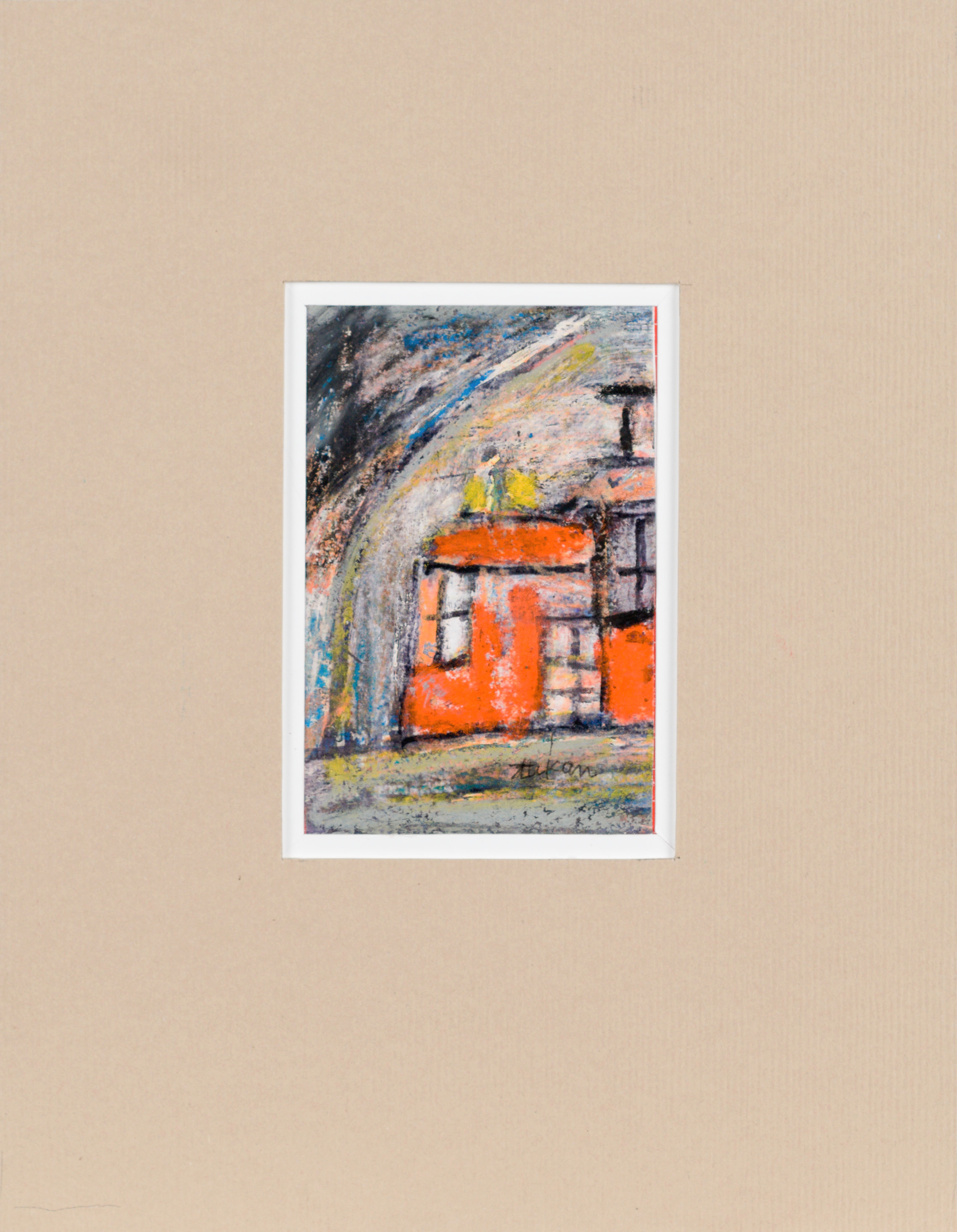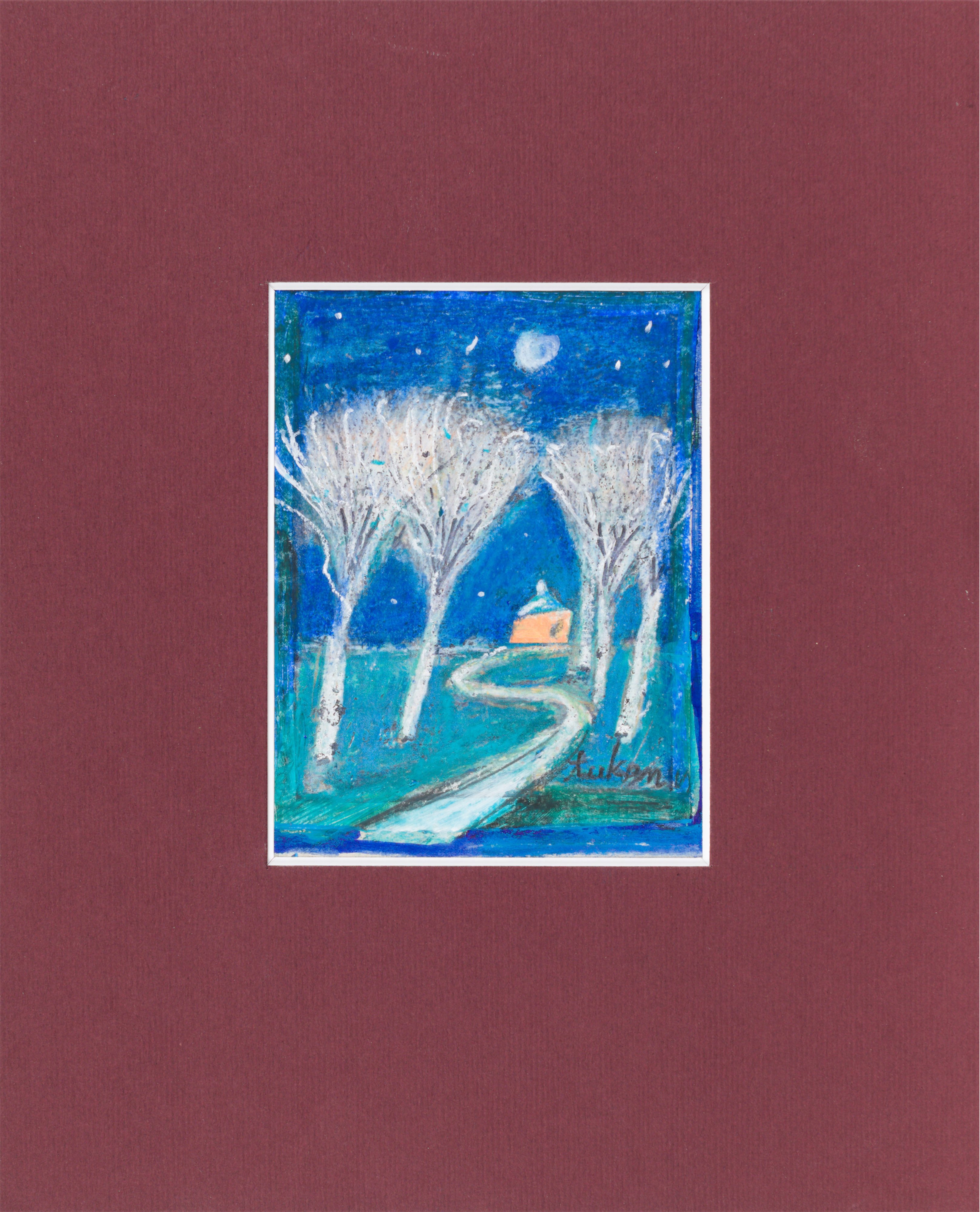 technika mieszana: akryl, pastele olejne, papier; 12,2 x 15 cm (w św. passe-partout);