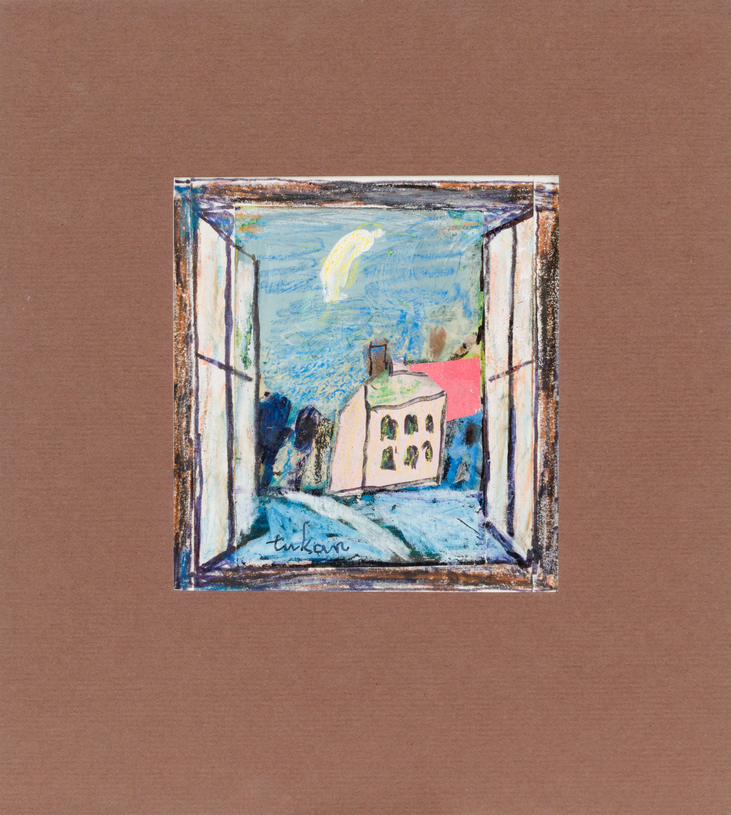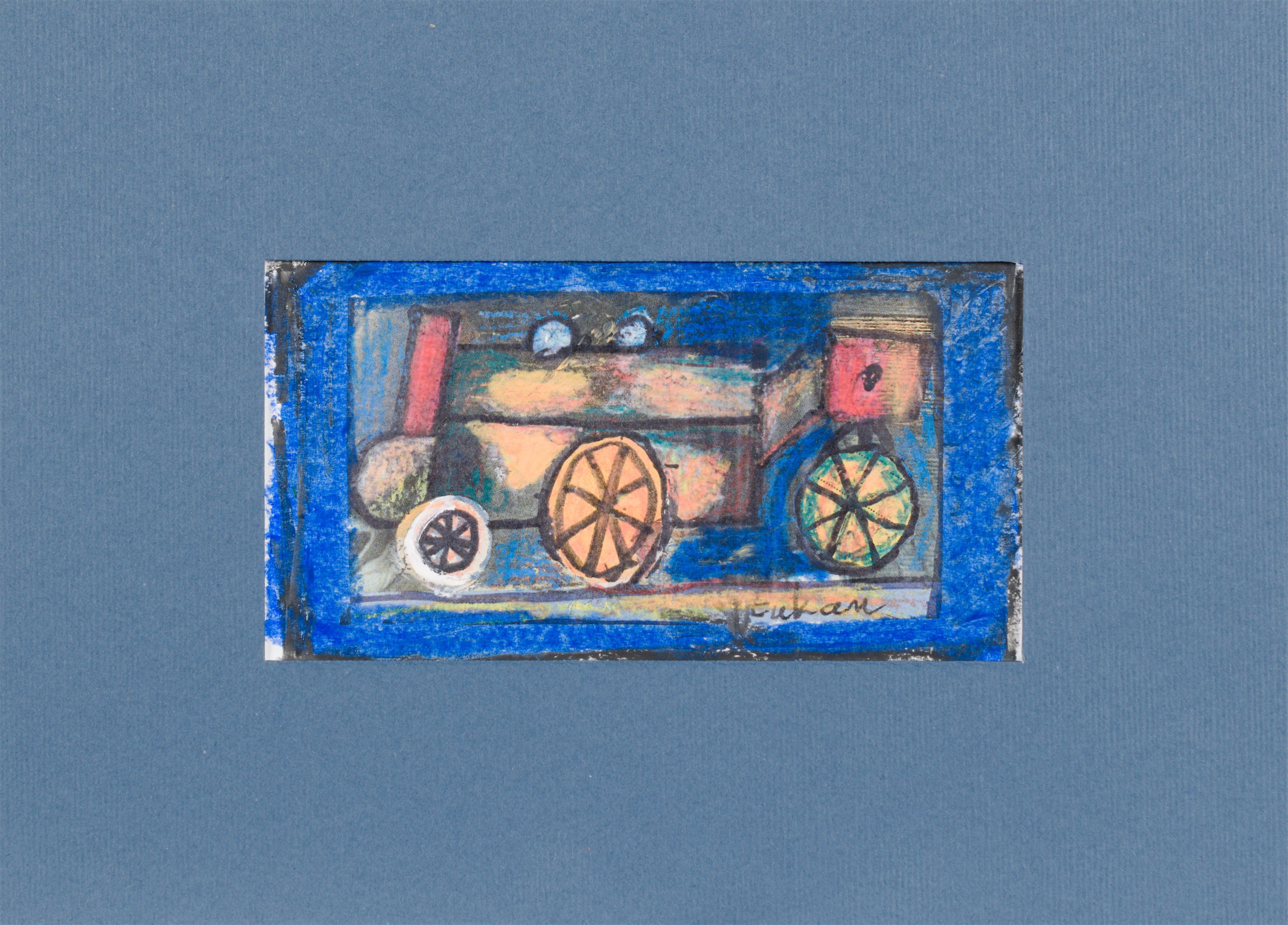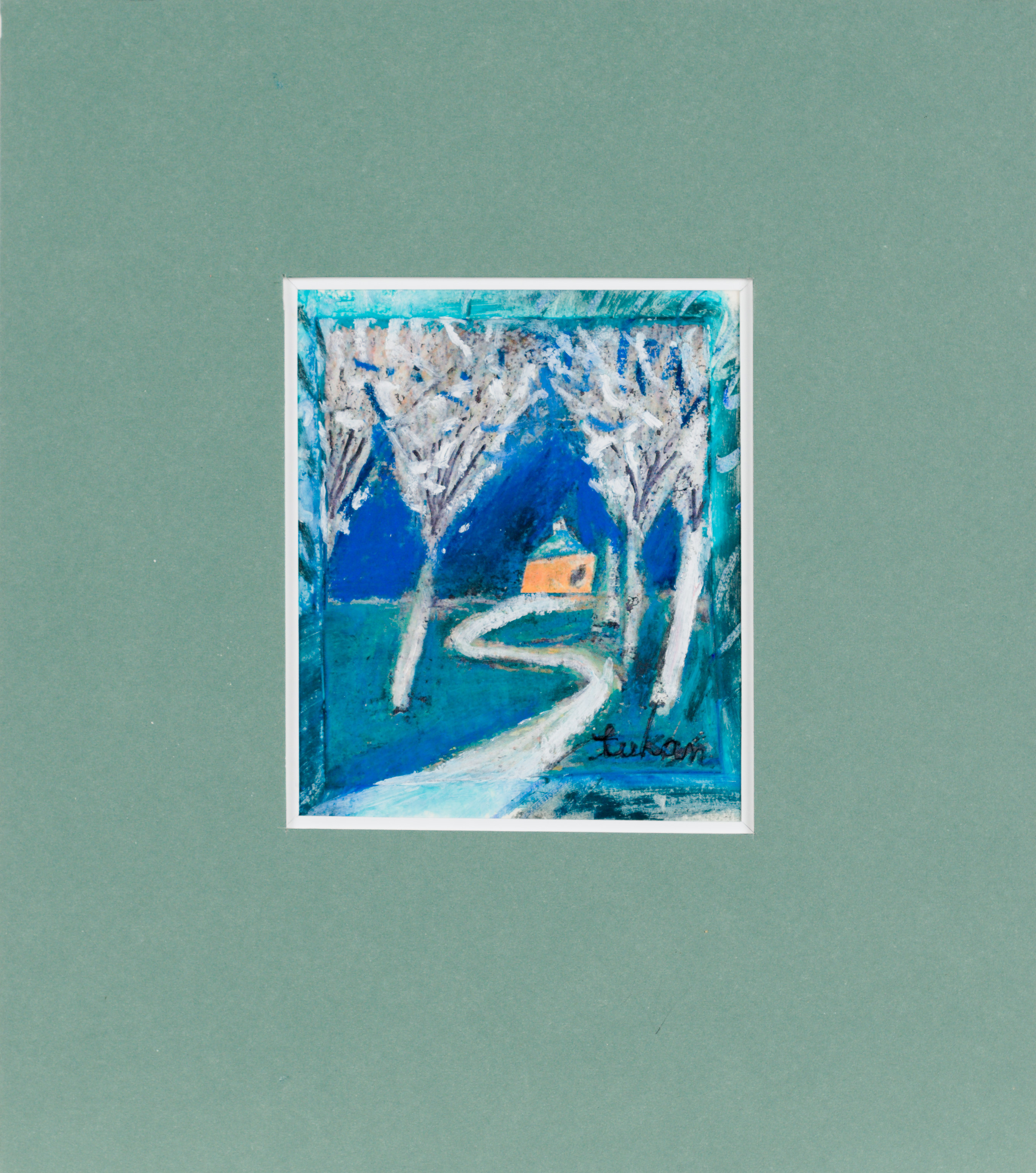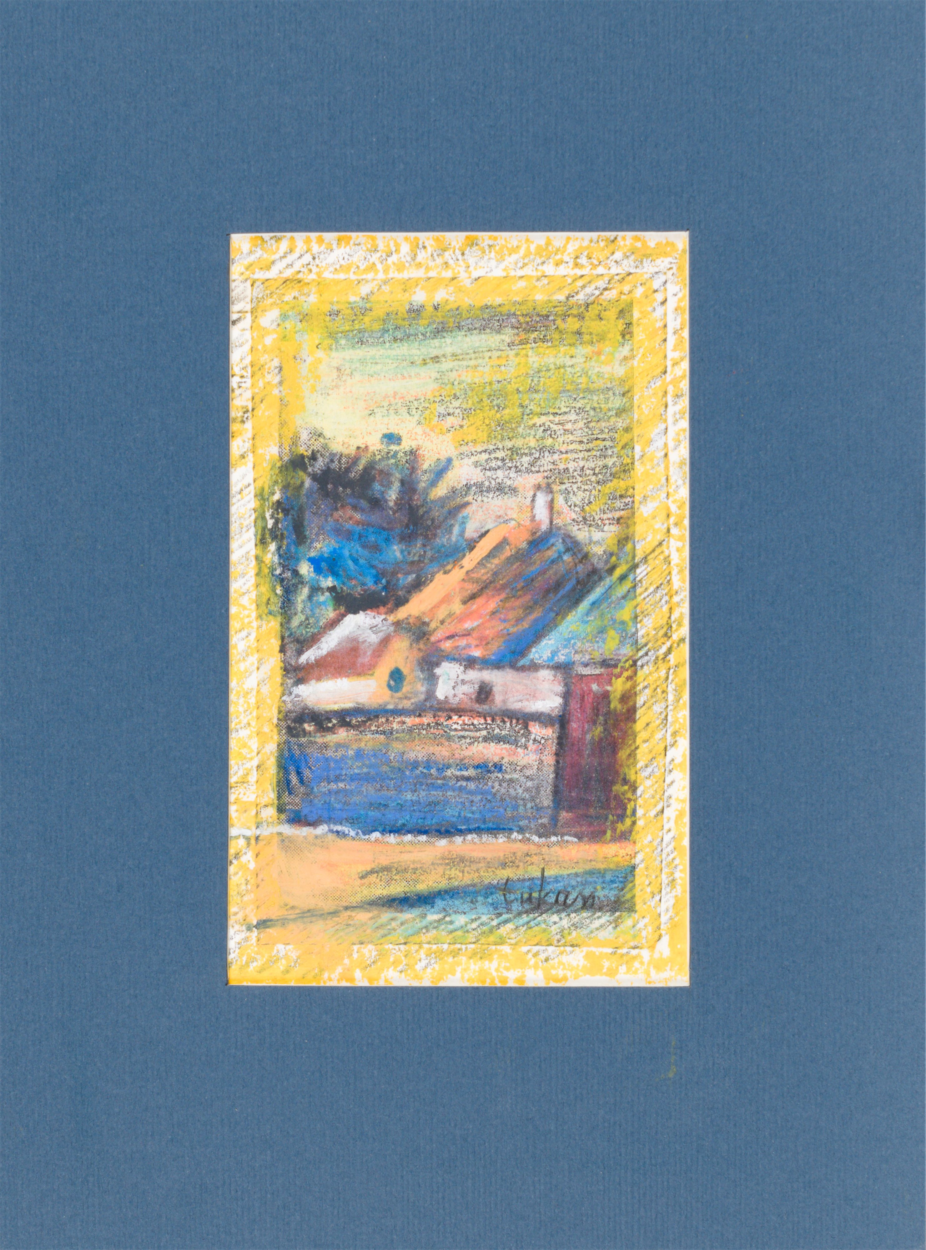 technika mieszana: akryl, pastele olejne, papier; 12,2 x 15 cm (w św. passe-partout);