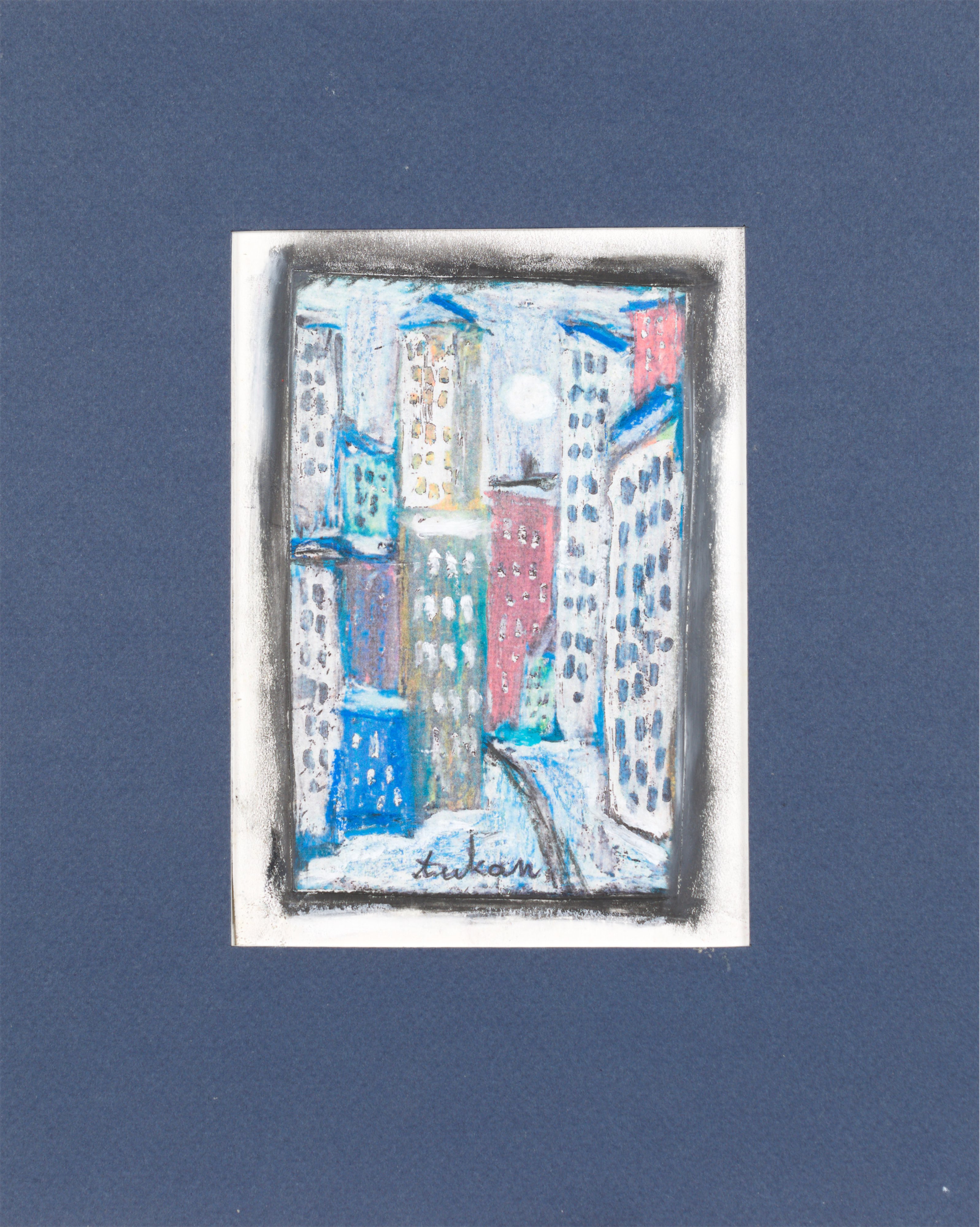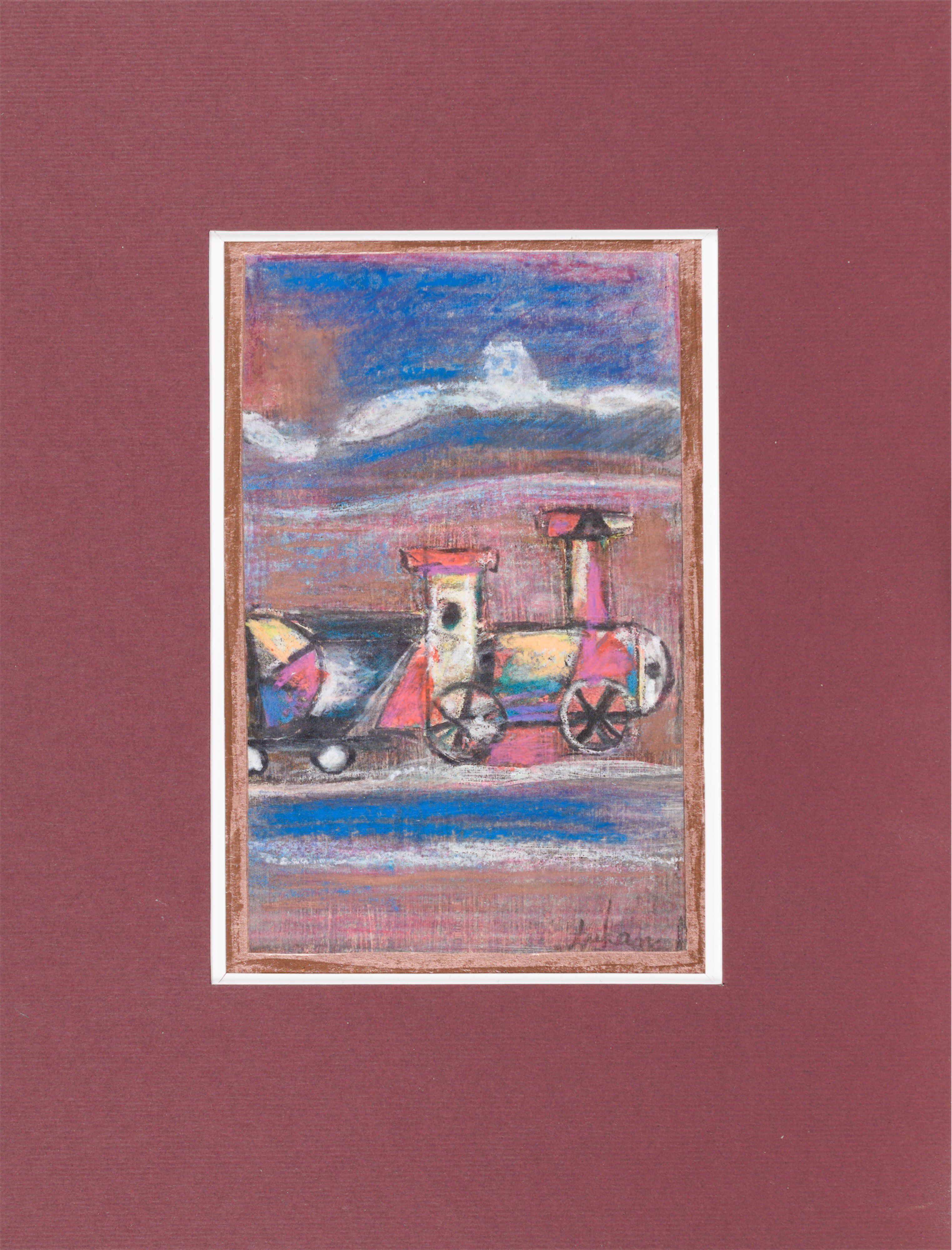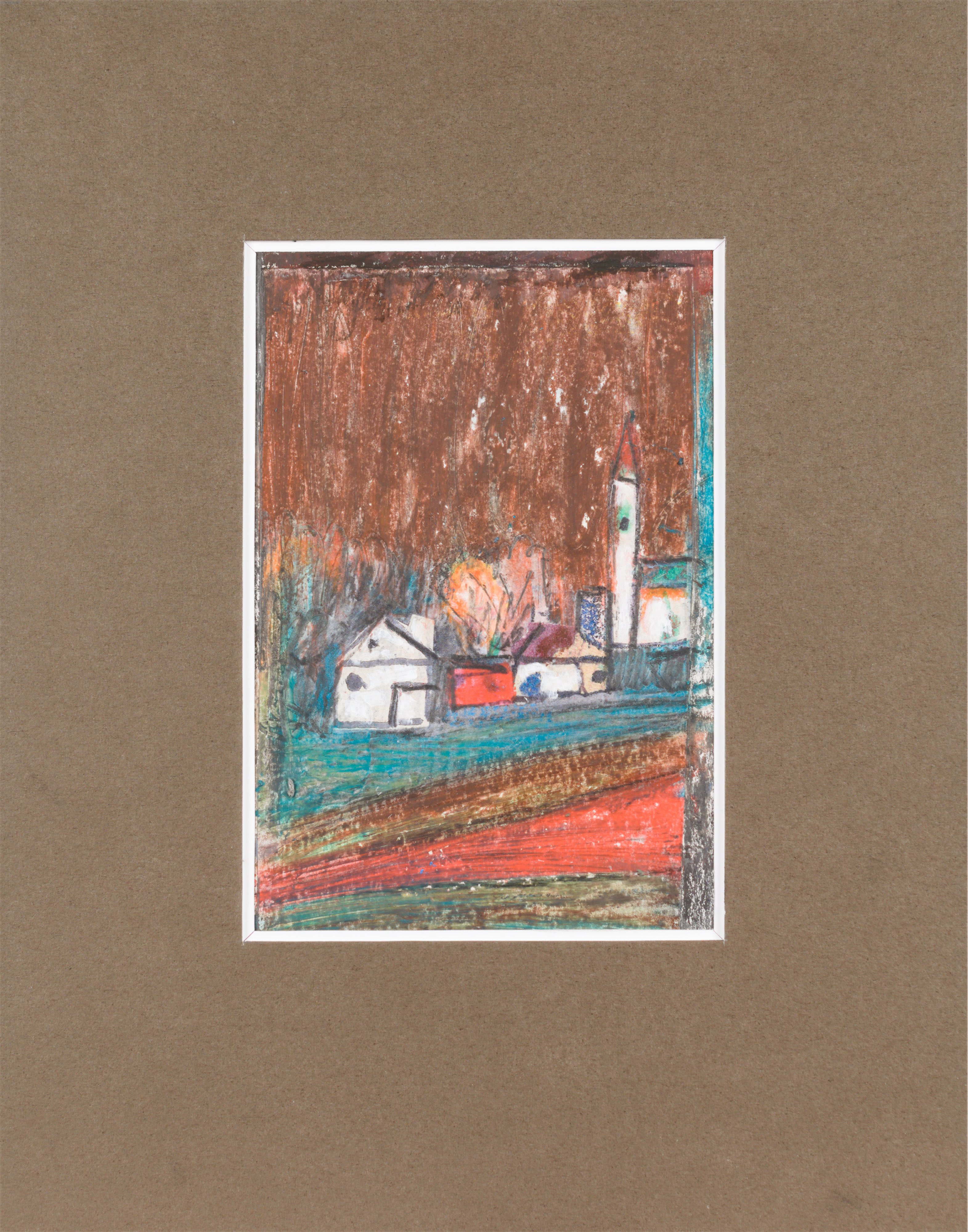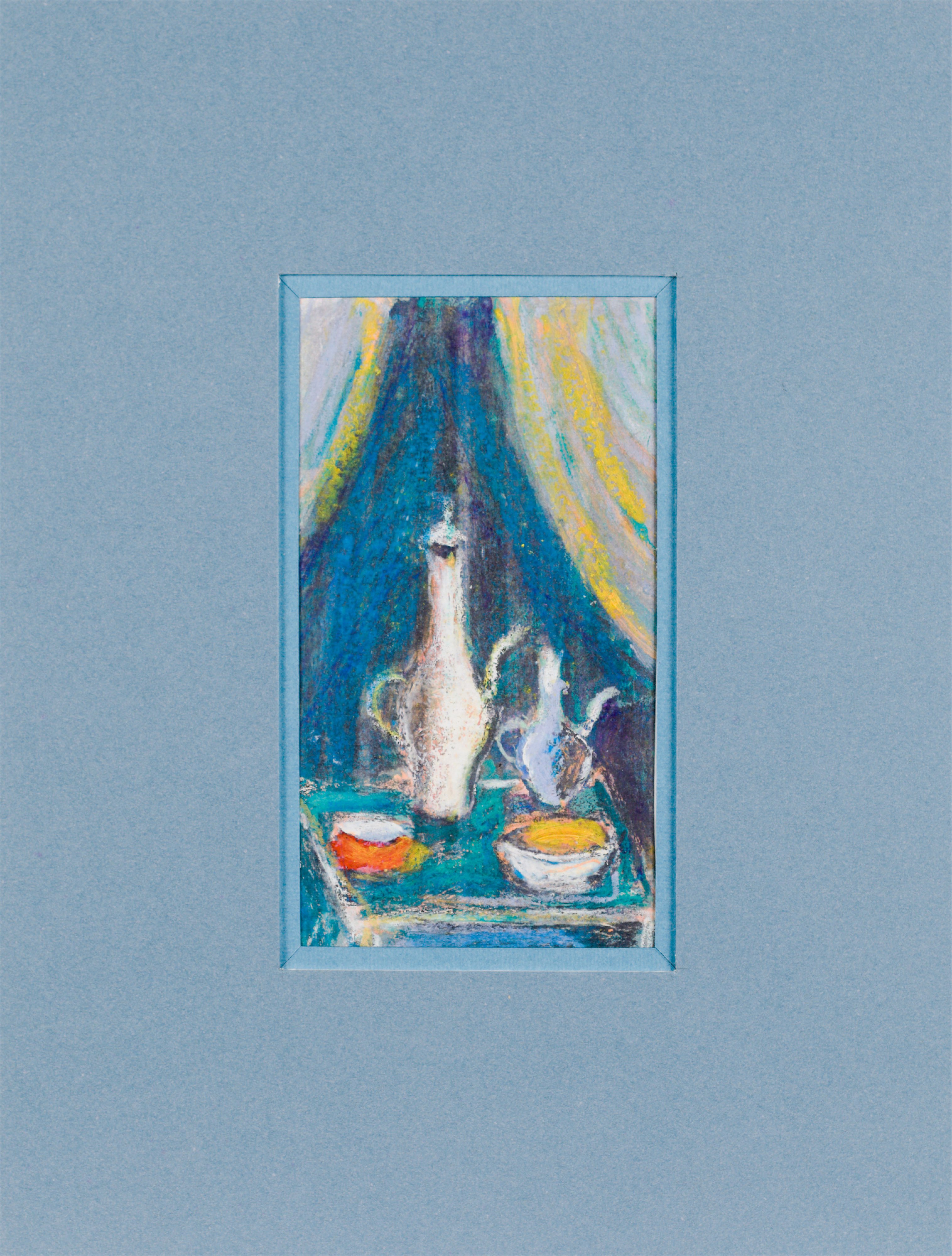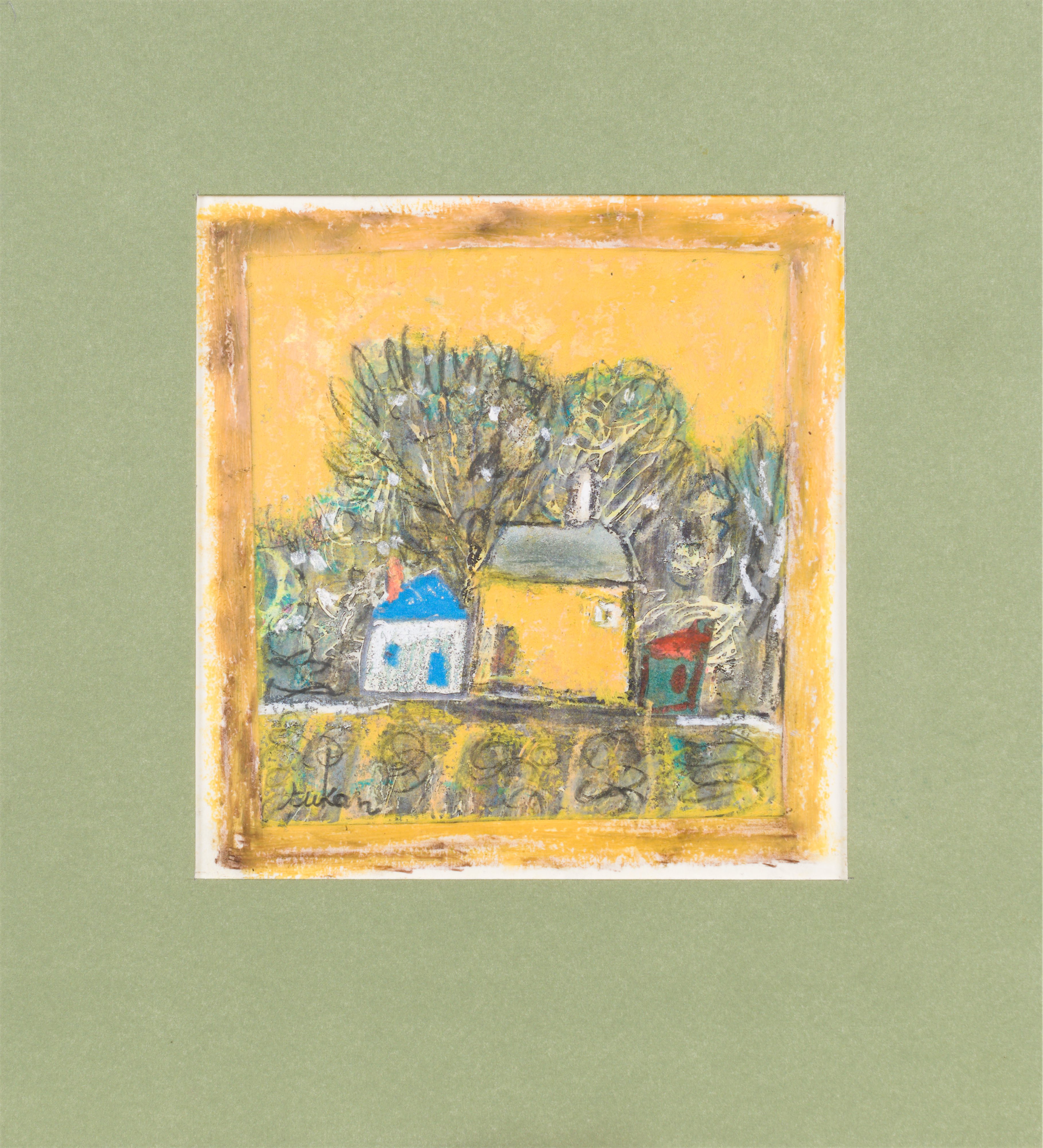 technika mieszana: akryl, pastele olejne, papier; 12,2 x 15 cm (w św. passe-partout);