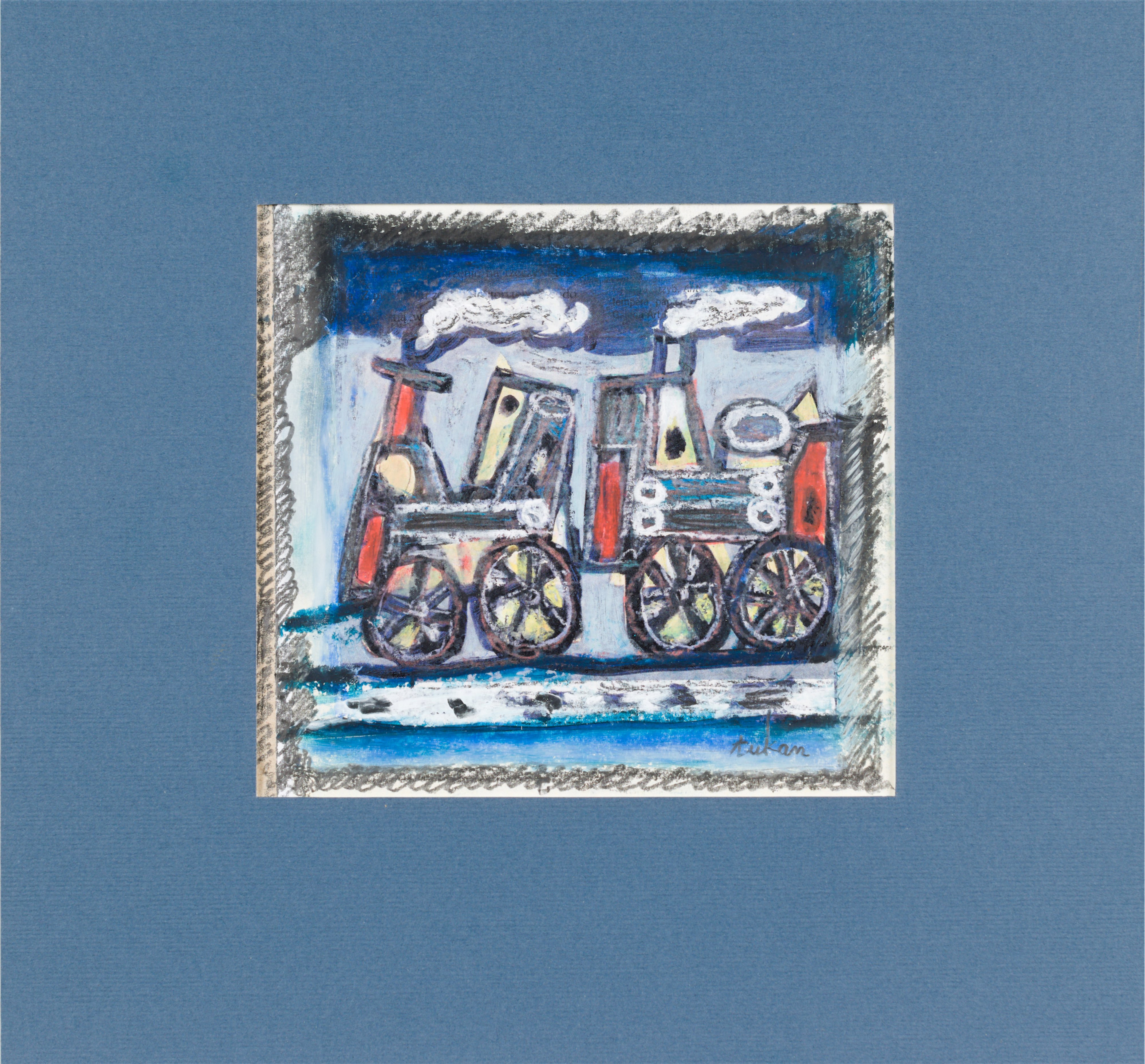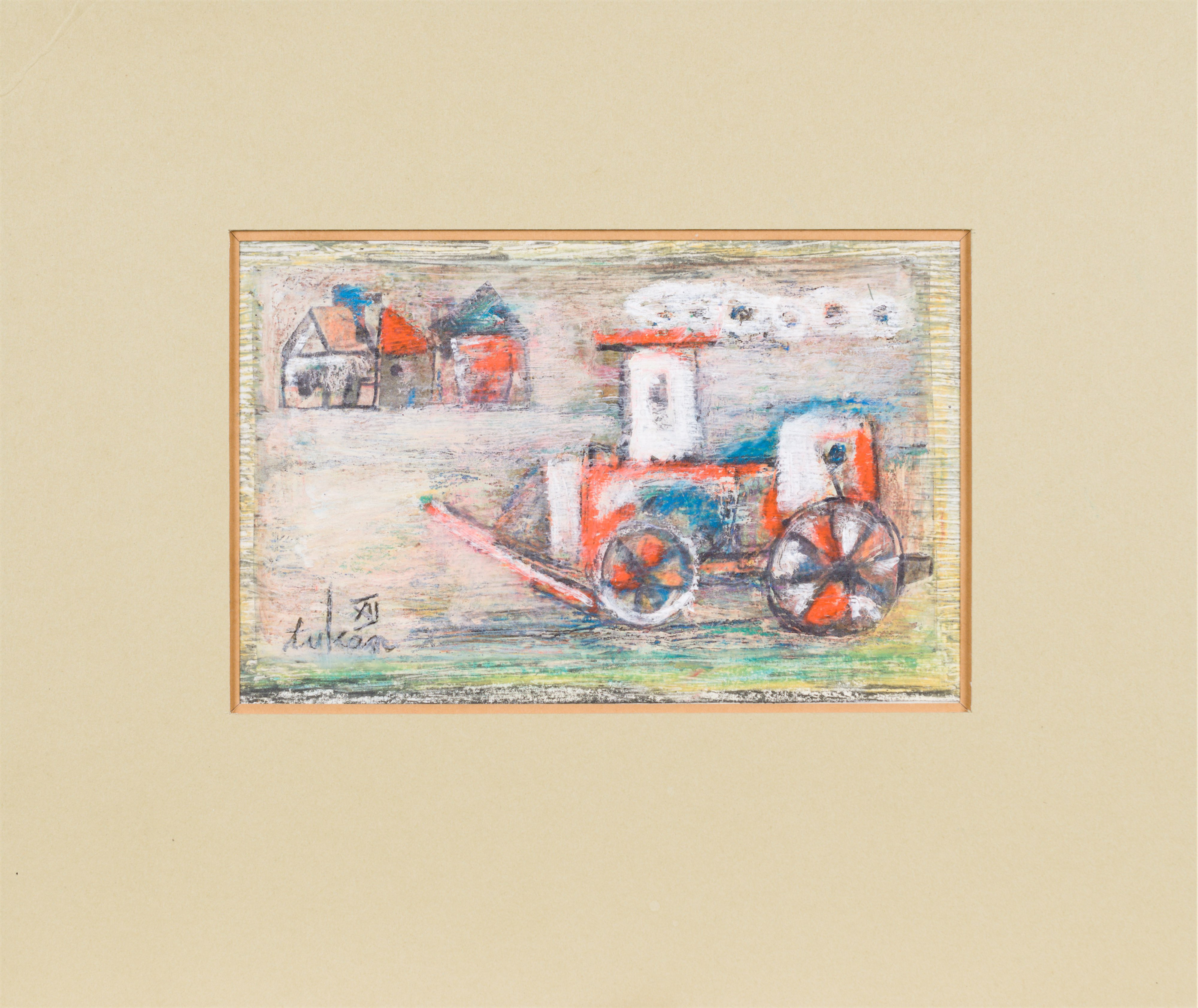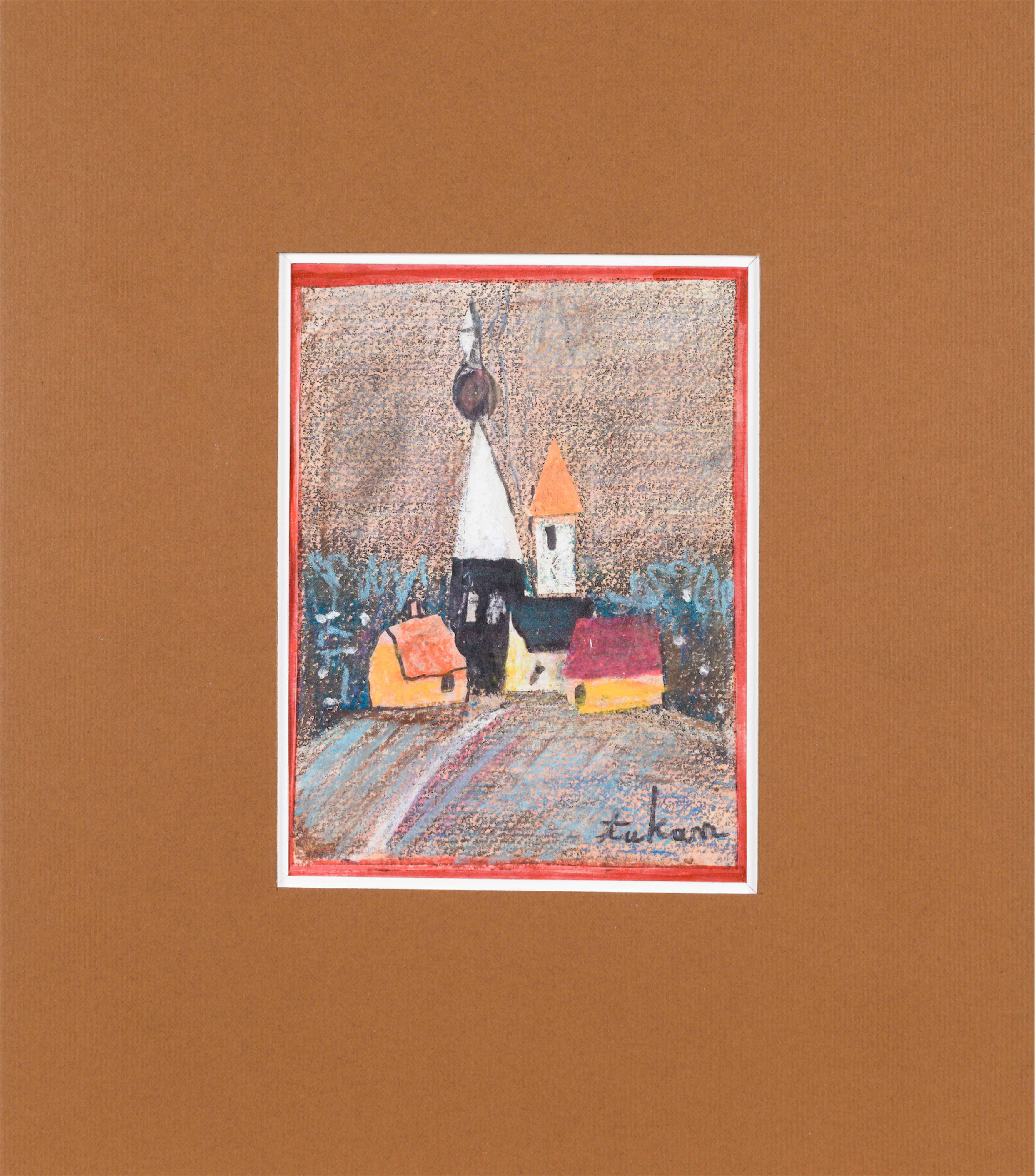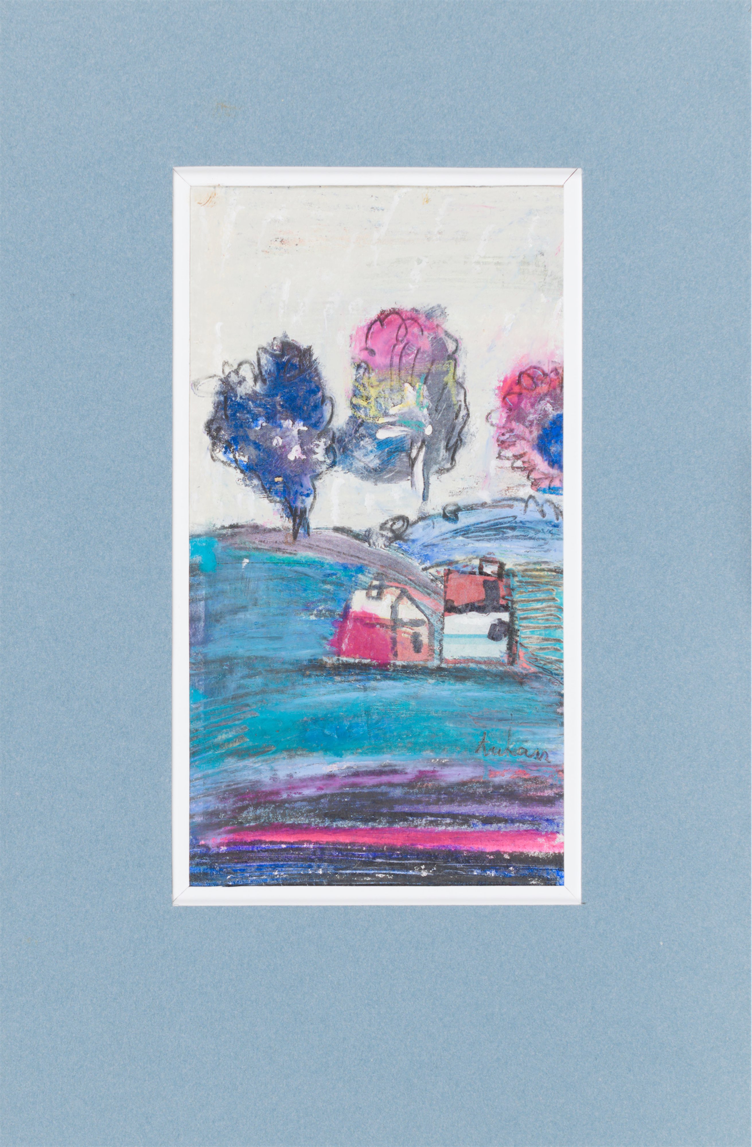 technika mieszana: akryl, pastele olejne, papier; 12,2 x 15 cm (w św. passe-partout);