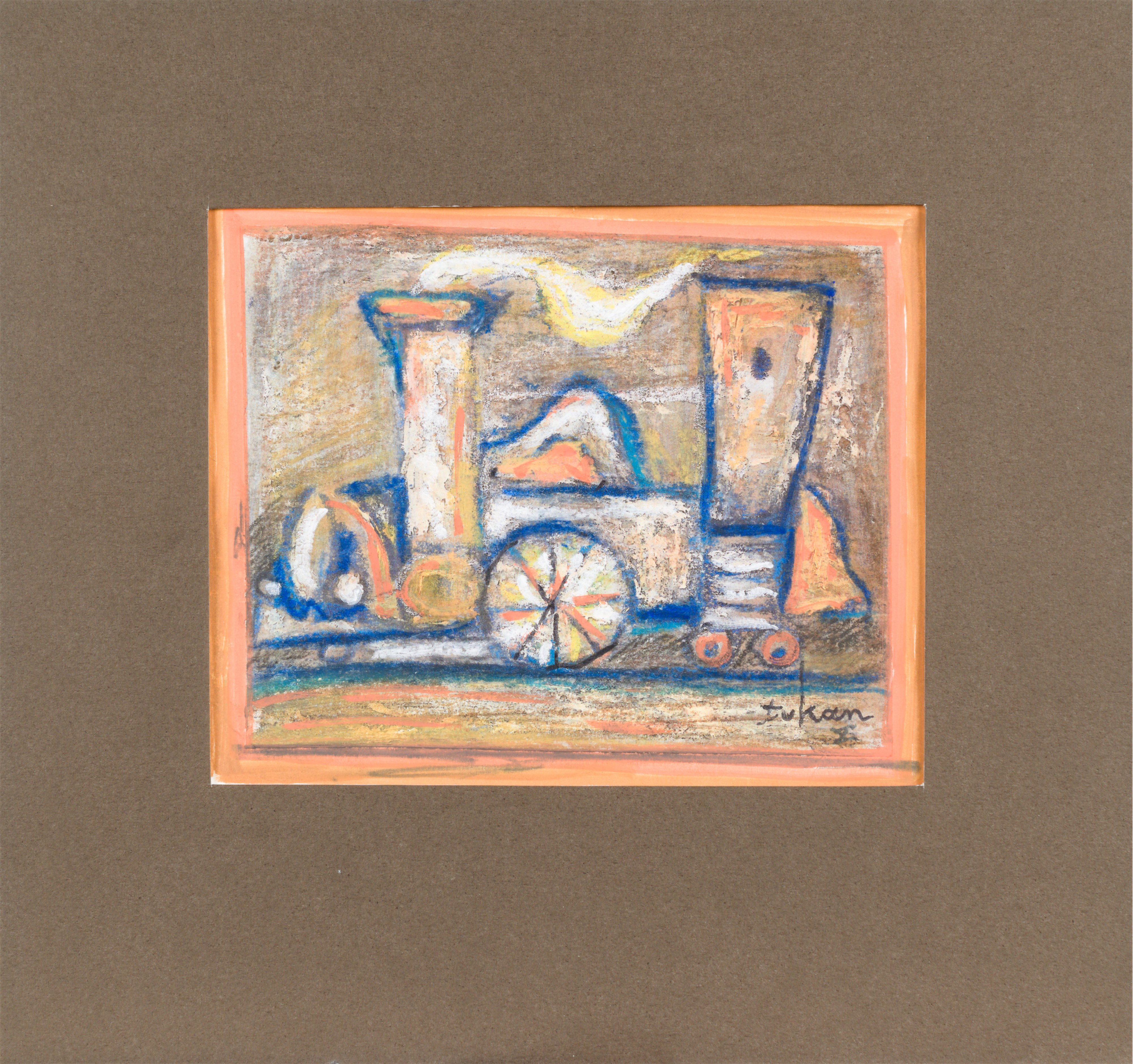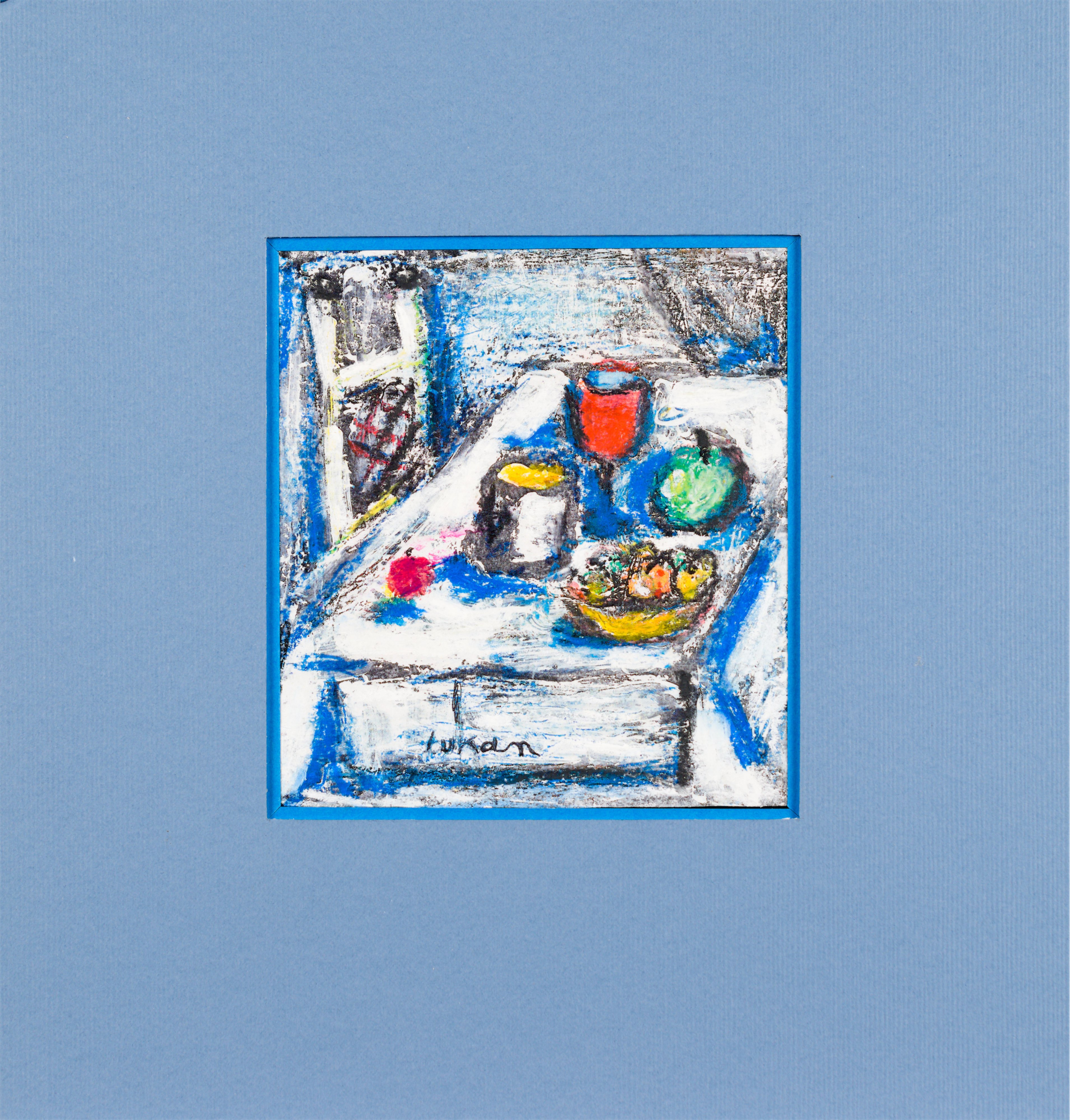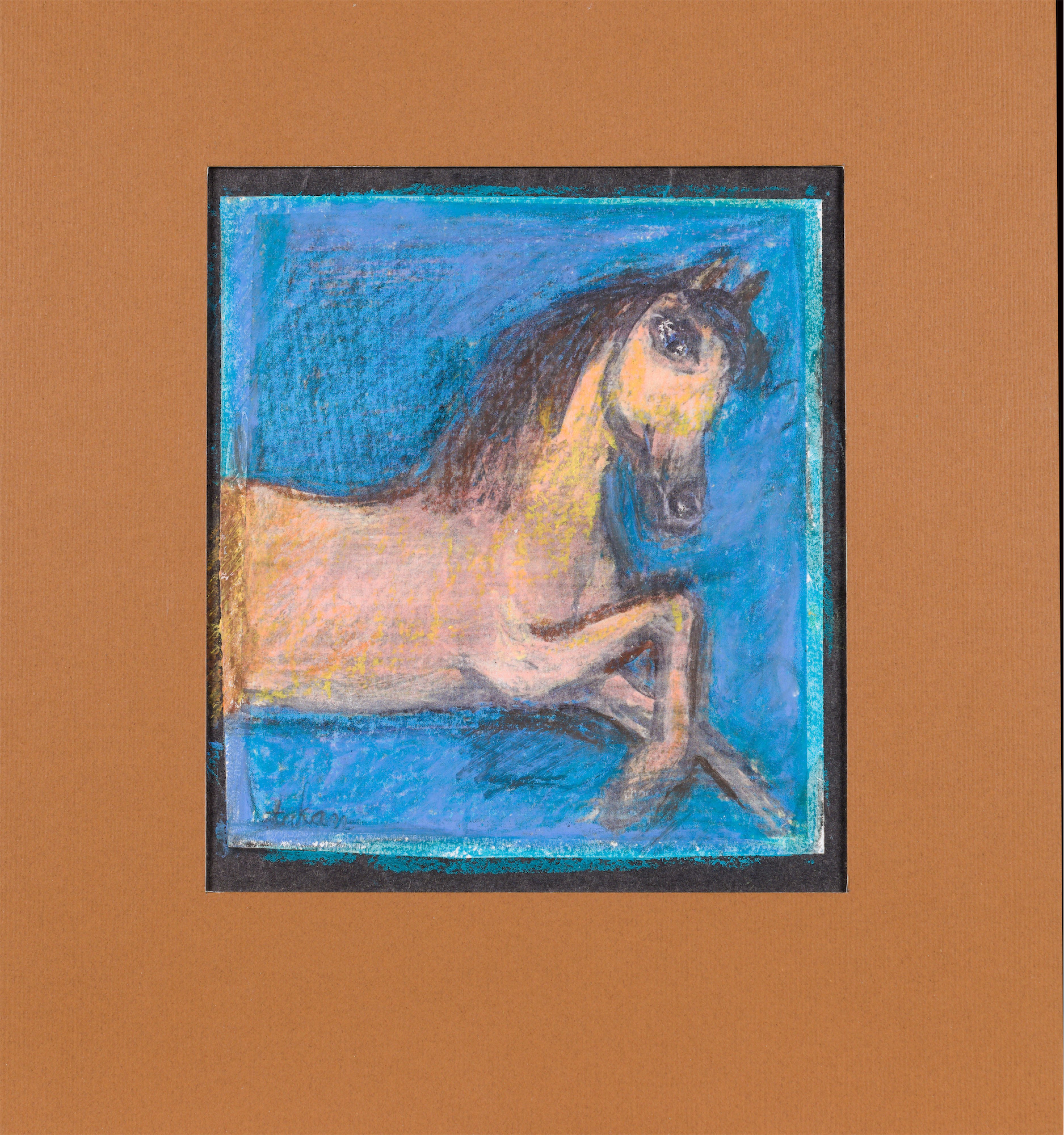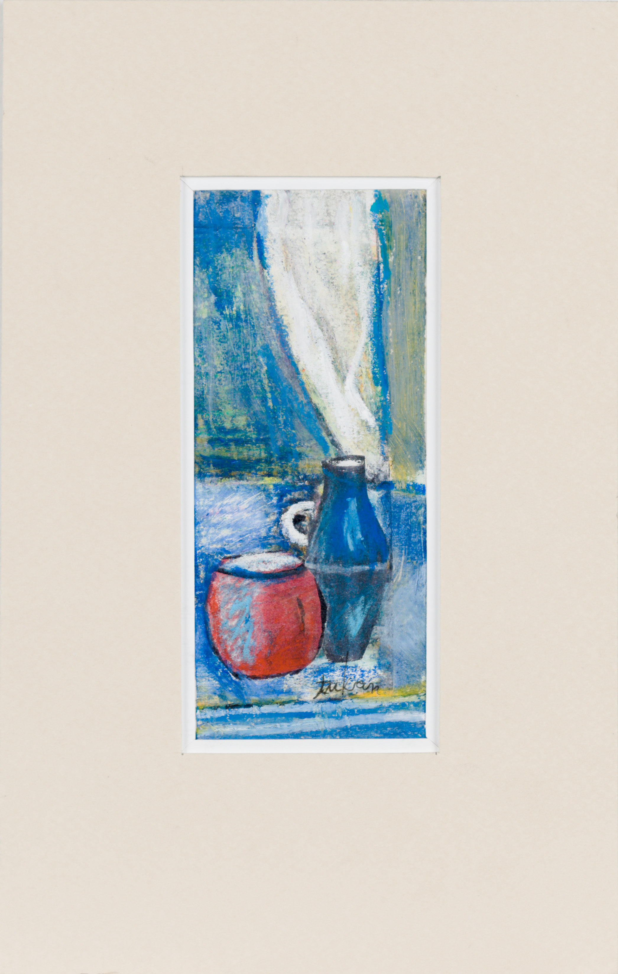technika mieszana: akryl, pastele olejne, papier; 12,2 x 15 cm (w św. passe-partout);