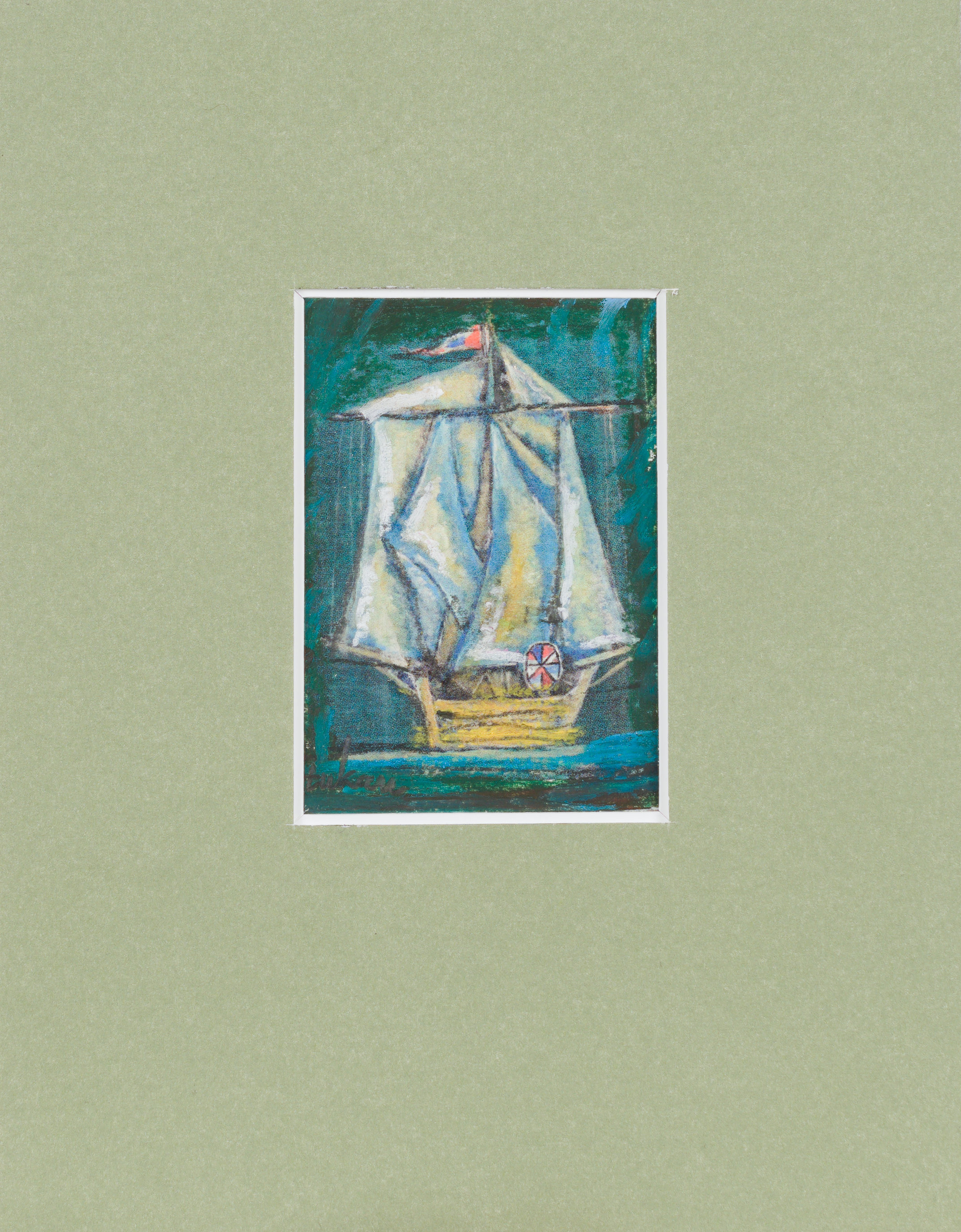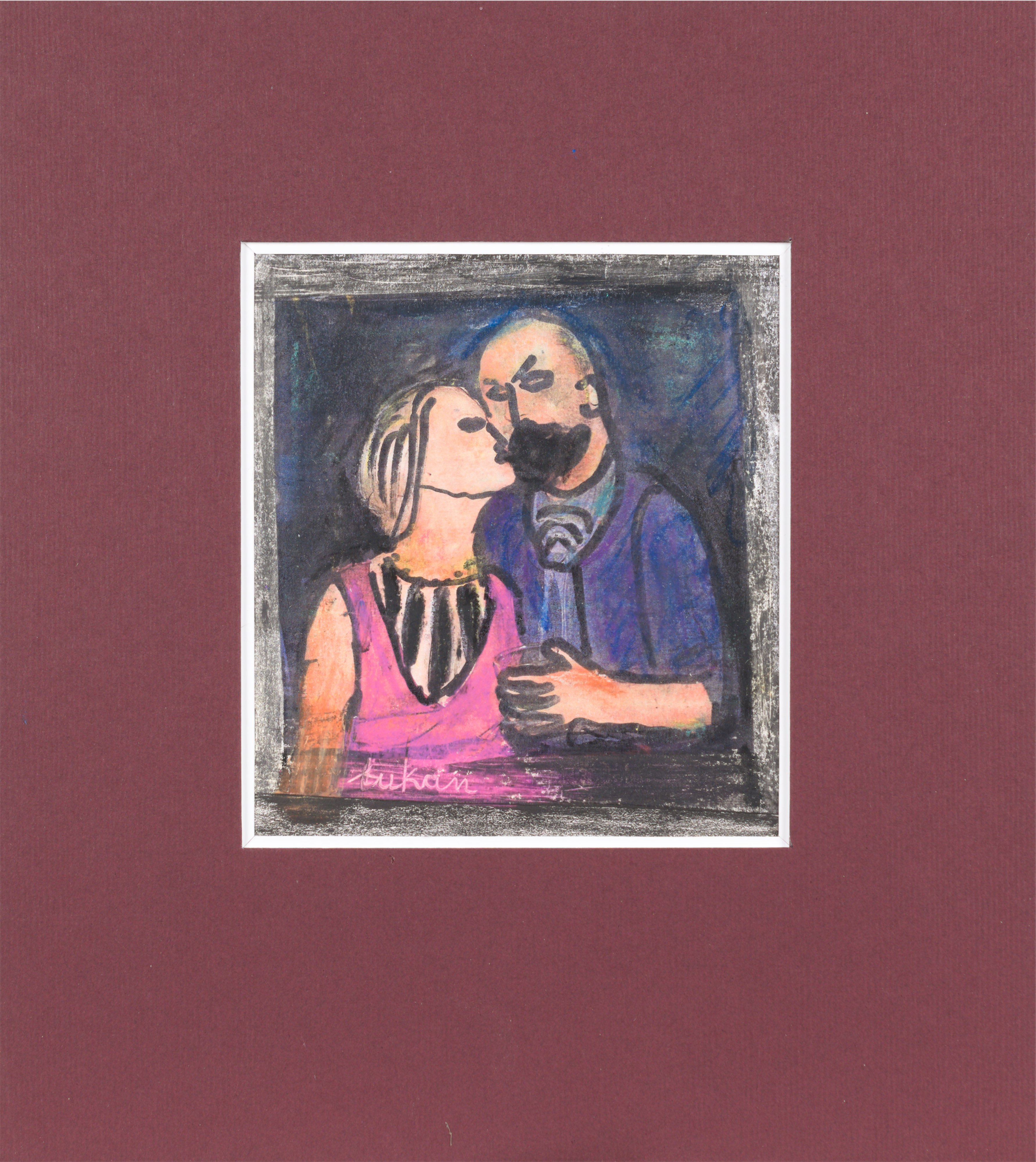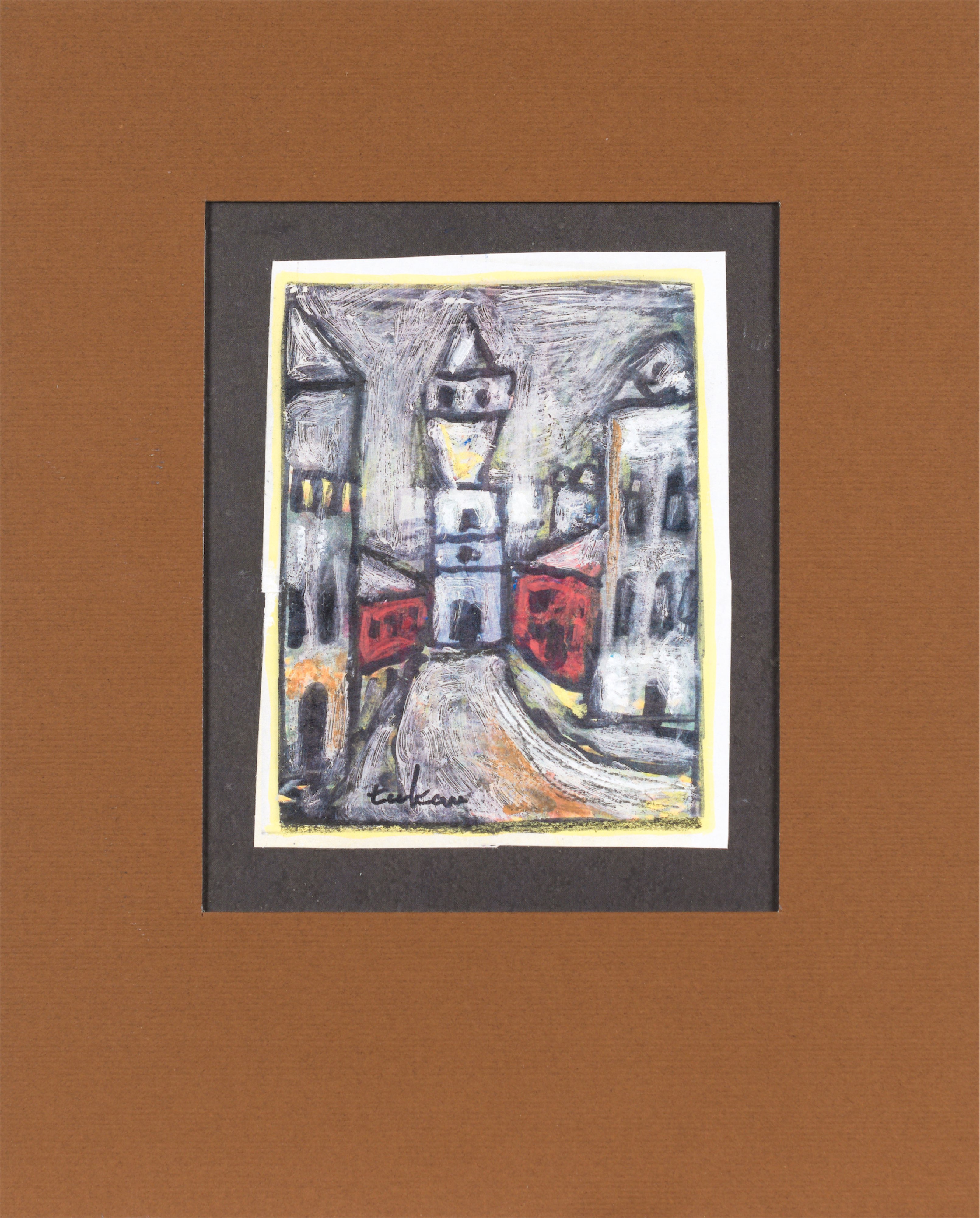 technika mieszana, papier; 13,7 x 14,7 cm (w św. passe-partout);