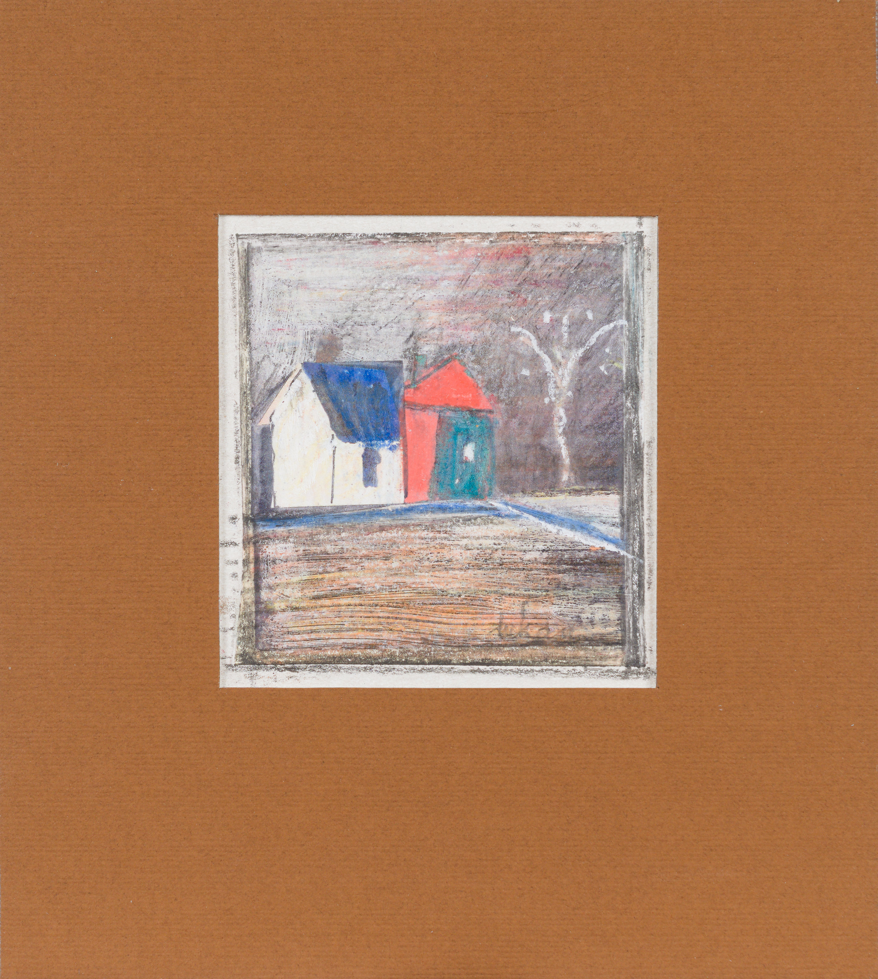 technika mieszana, papier; 6,5 x 6,1 cm (w św. passe-partout);