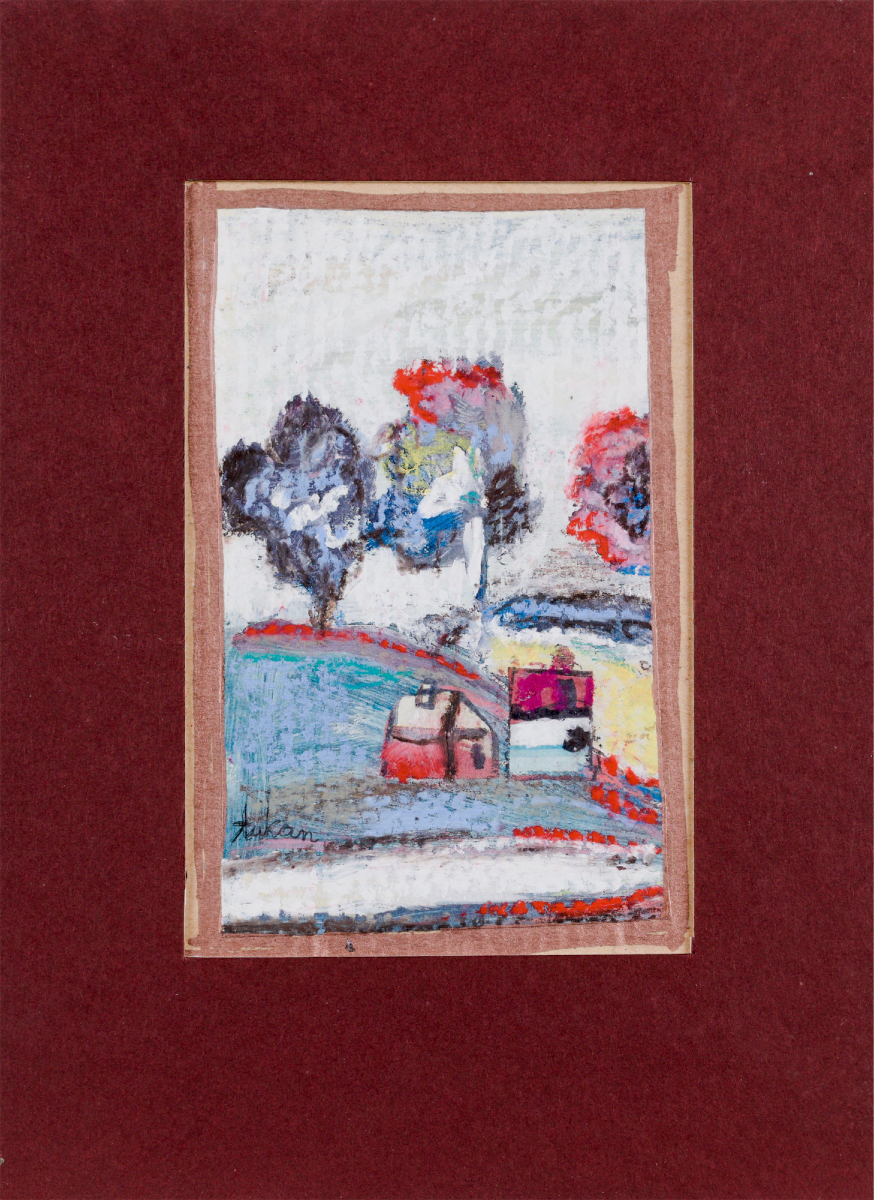 technika mieszana, papier; 9,8 x 7,6 cm (w św. passe-partout);