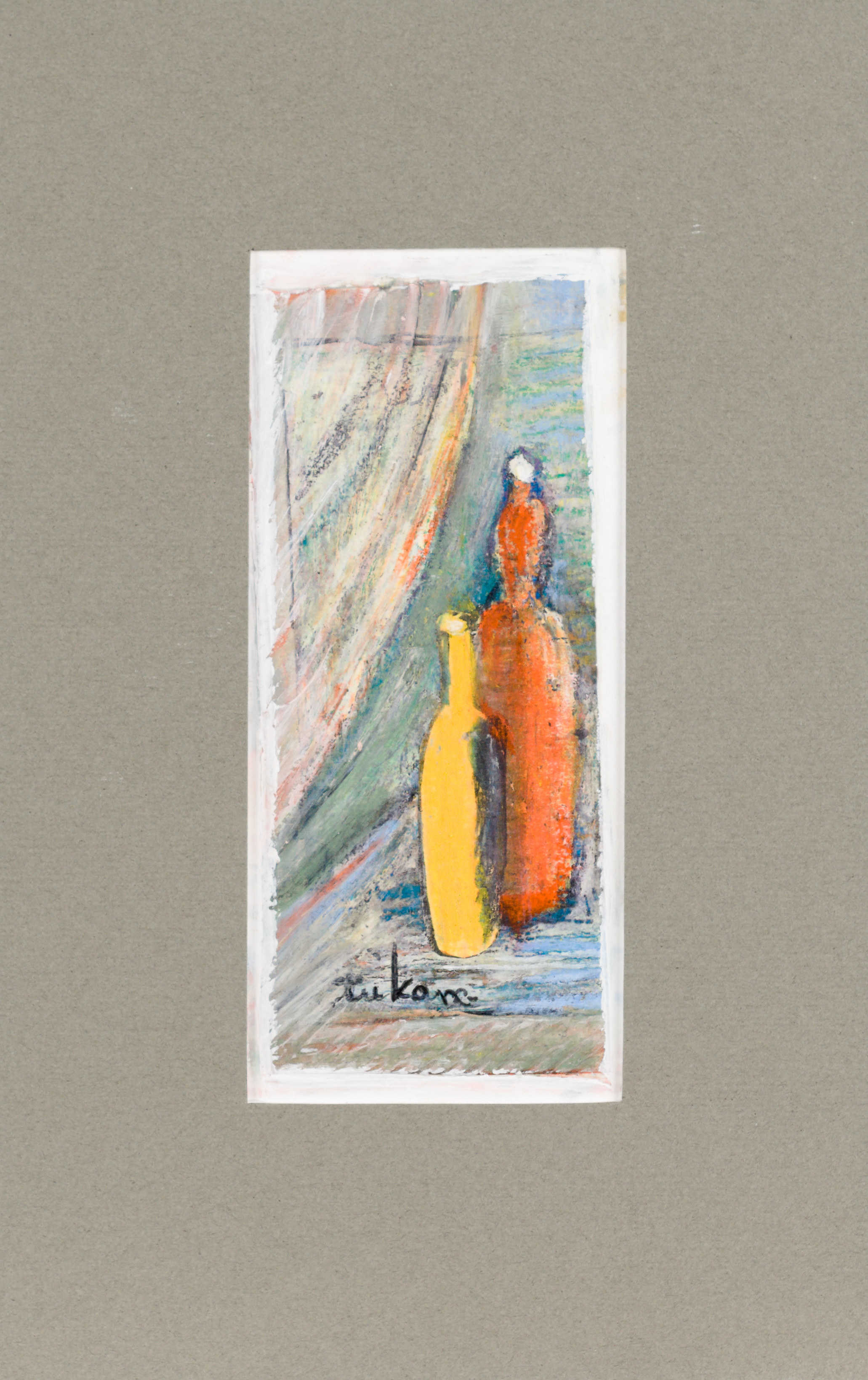 technika mieszana, papier; 13,4 x 5,9 cm (w św. passe-partout);