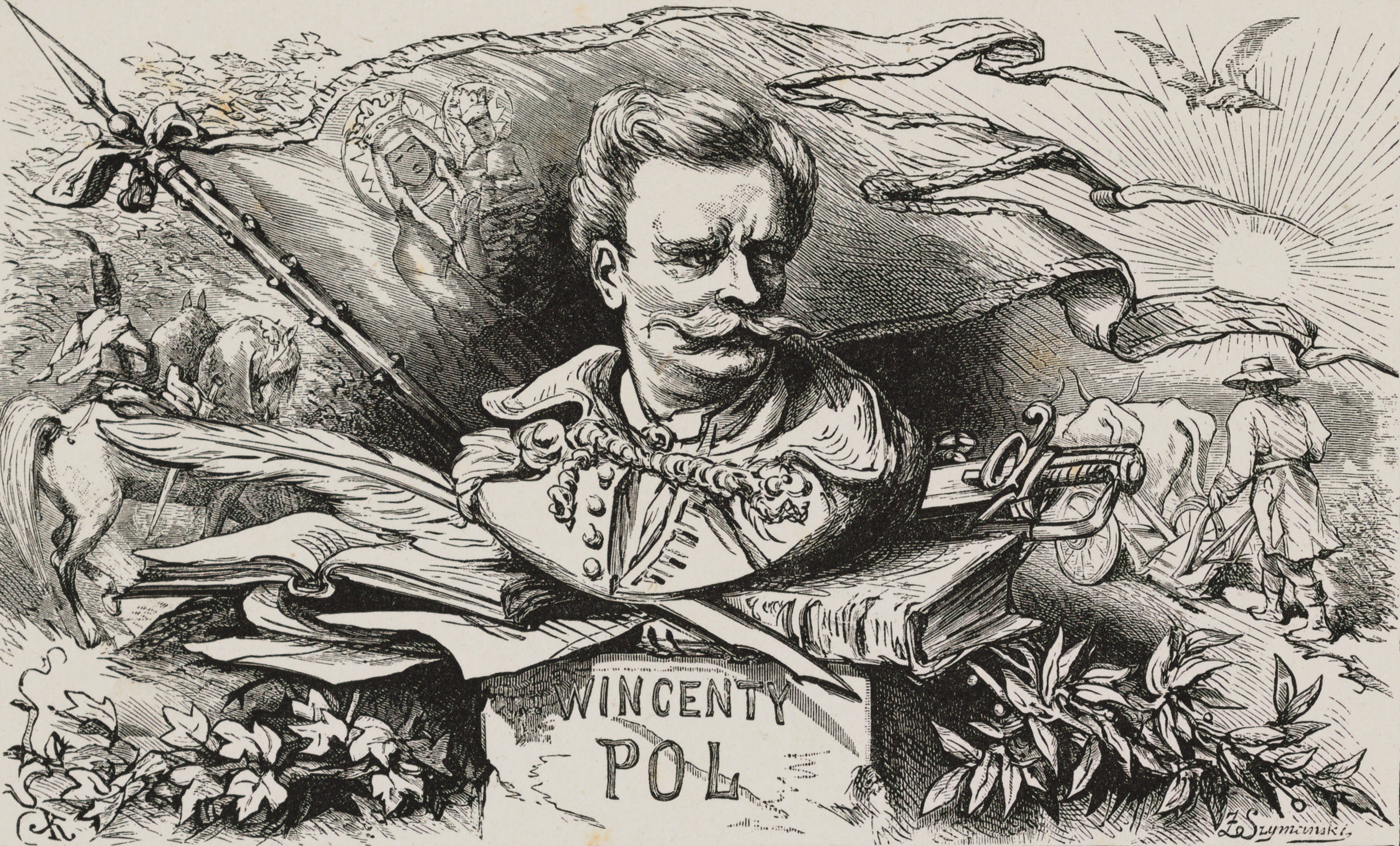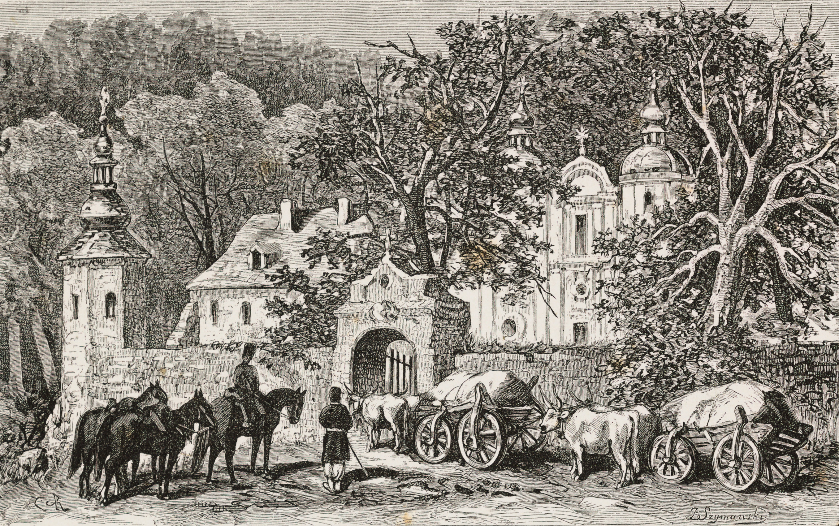 sygn. l. d.: JK (na klocku); napis p. d.: Z. Szymański (na klocku).