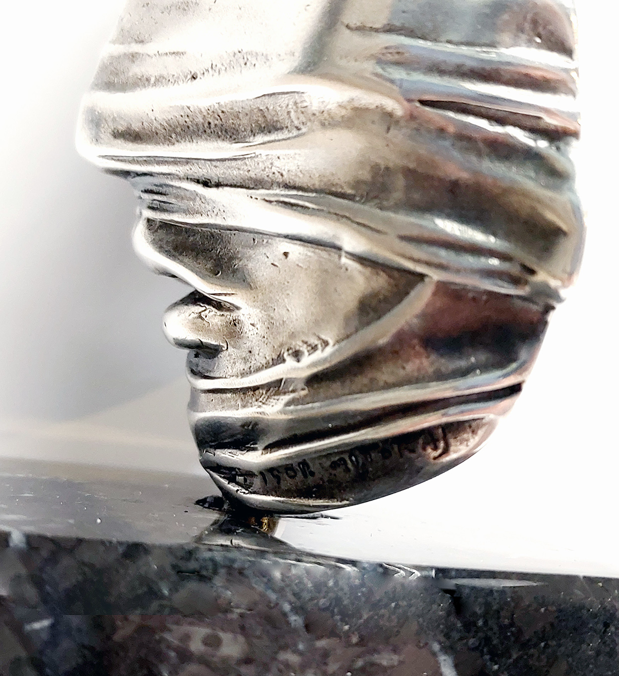 stop srebra, wys. twarzy 6 cm, szer. twarzy 6,5 cm;