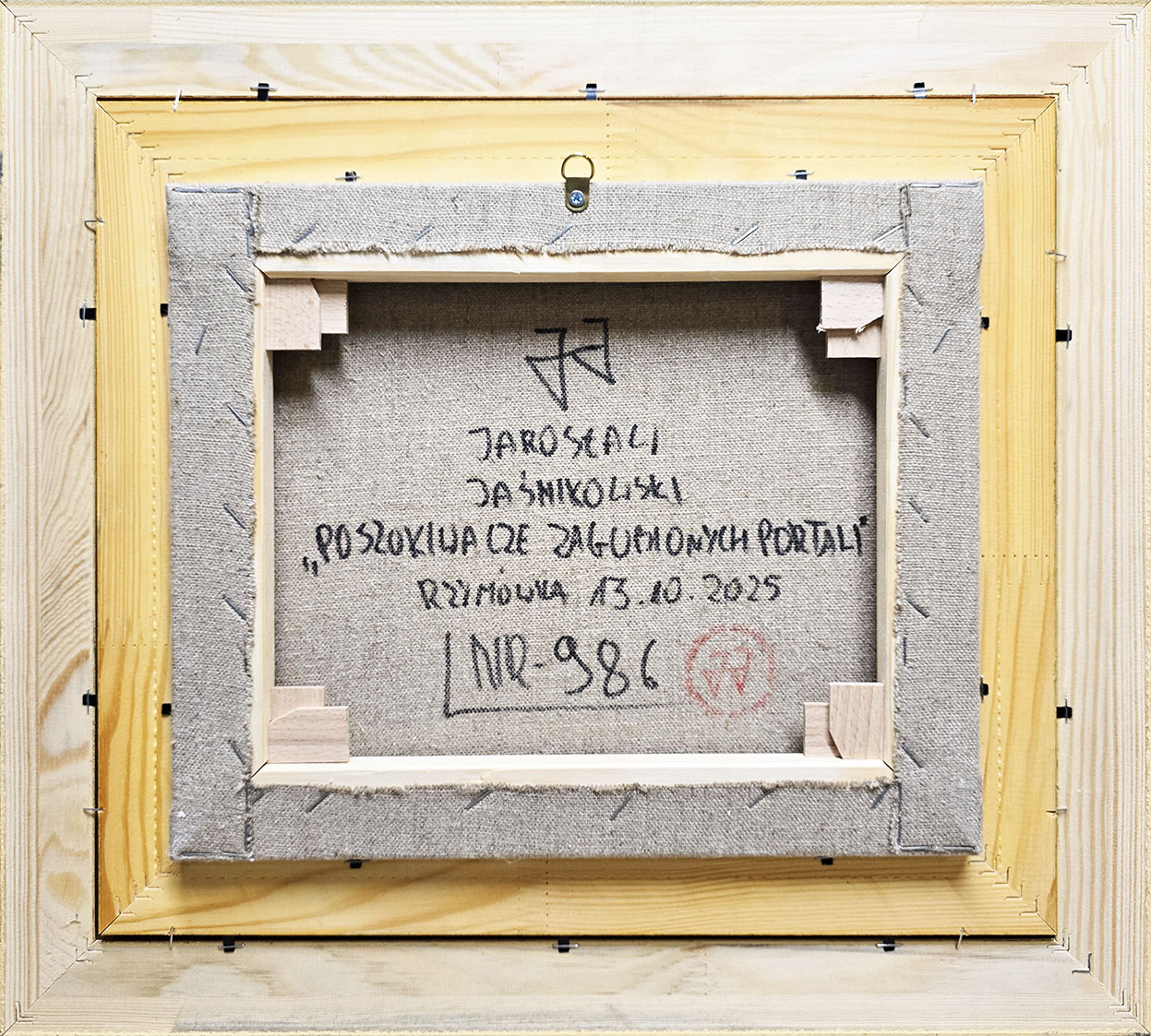 sygnowany, datowany i opisany na odwrocie: J.J./JAROSŁAW JAŚNIKOWSKI/ ''POSZUKIWACZE ZAGUBIONYCH PORTALI''/ RZYMÓWKA 13.10.2025 / NR.: 986 oraz...
