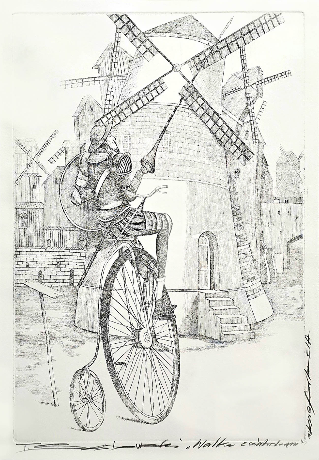 śr.d.: tytuł '' Walka z wiatrakami'';