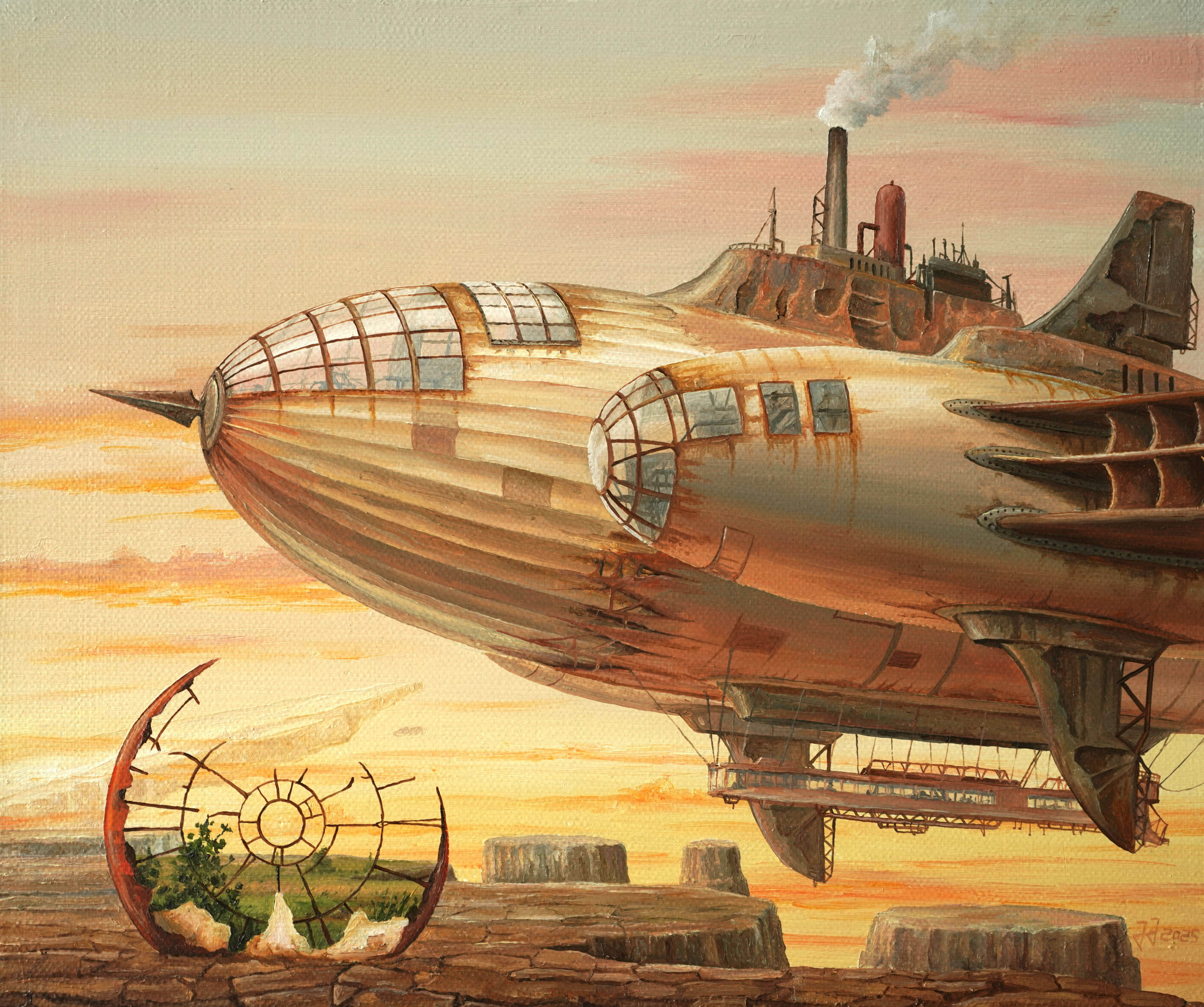 sygnowany, datowany i opisany na odwrocie: JJ/ JAROSŁAW JAŚNIKOWSKI / ''PORZUCONY PAROWÓZ''/RZYMÓWKA 24.10.2025/NR - 987 oraz pieczęć...