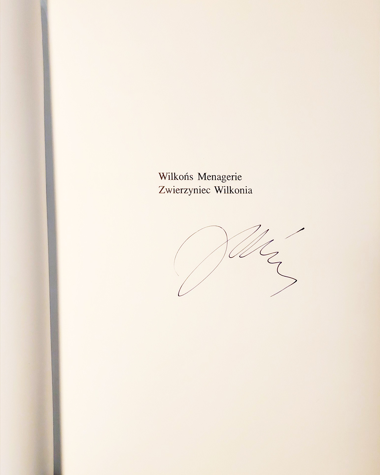 Album „Zwierzyniec Wilkonia” (Wilkoń’s Menagerie”) sygnowany przez autora na stronie tytułowej.