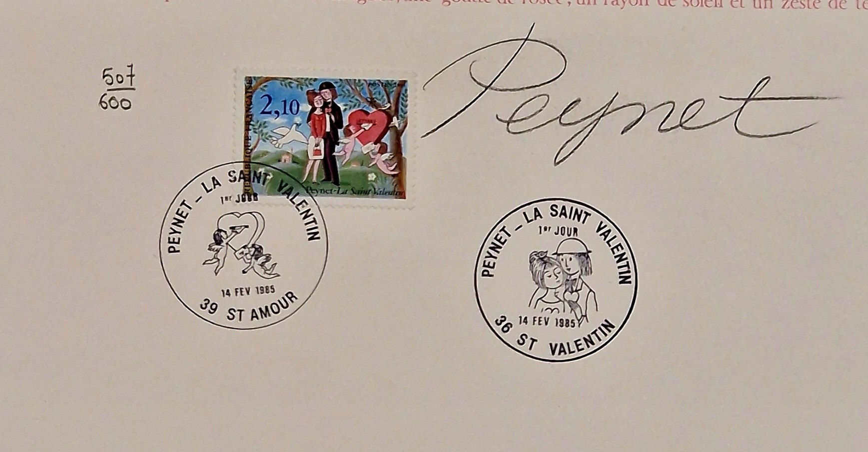 Litografia barwna, papier satynowy, 74 x 50 cm; sygn. ołówkiem przez autora „Peynet” śr.d.; edycja limitowana, numerowana ołówkiem 507/600. Wydawca: Mure Bublisher Nicea; Marketing artystyczny: Edition du Cercle Montpellier....