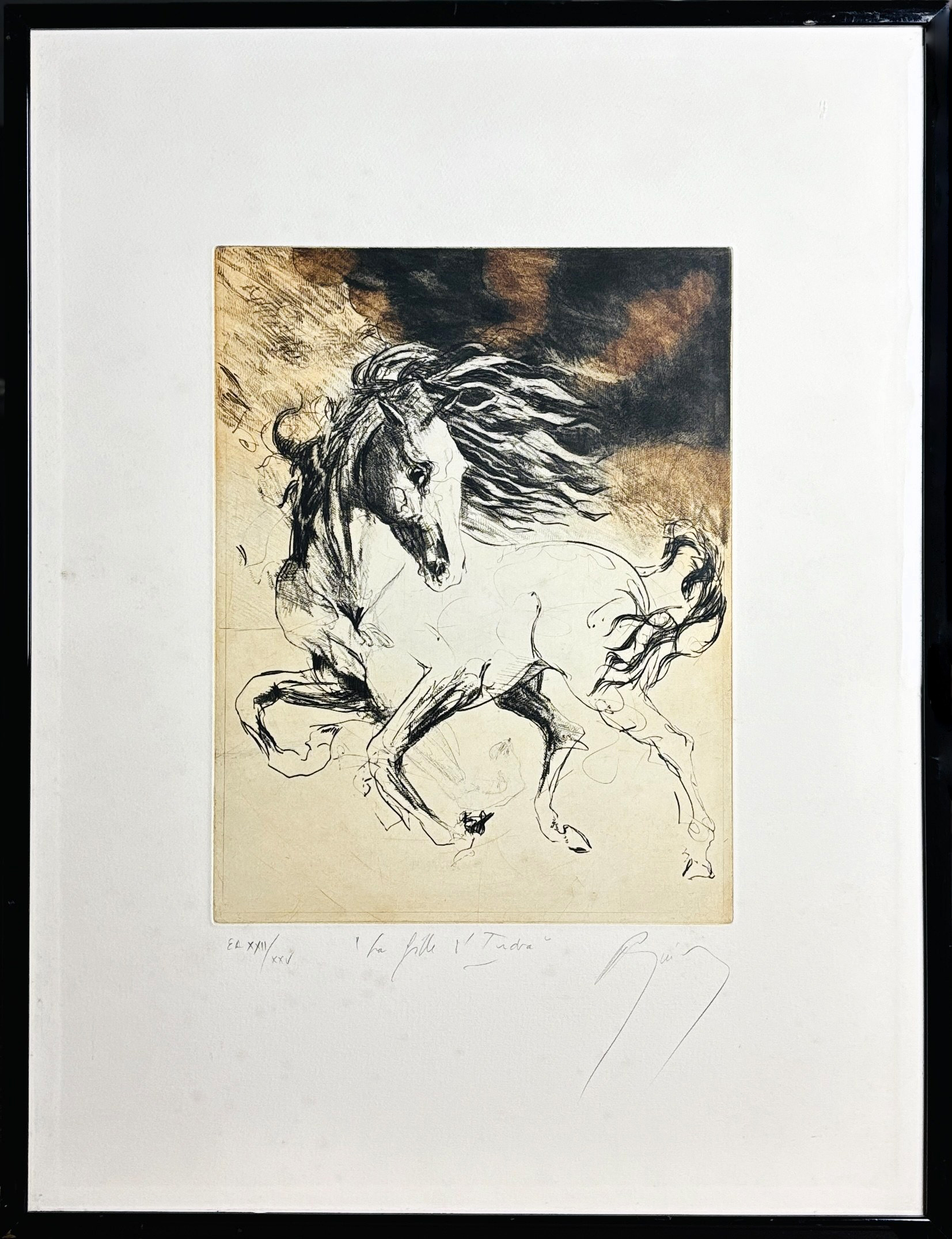Akwaforta, sucha igła, ręcznie kolorowana, papier Moulin de Larroque, 38 x 29 cm odcisk płyty, oprawiony w ramę o wymiarach 68 x 51 cm, edycja limitowana , podpisana ołówkiem przez Artystę, p.d oraz numerowana EA XXII/XXV; pod...