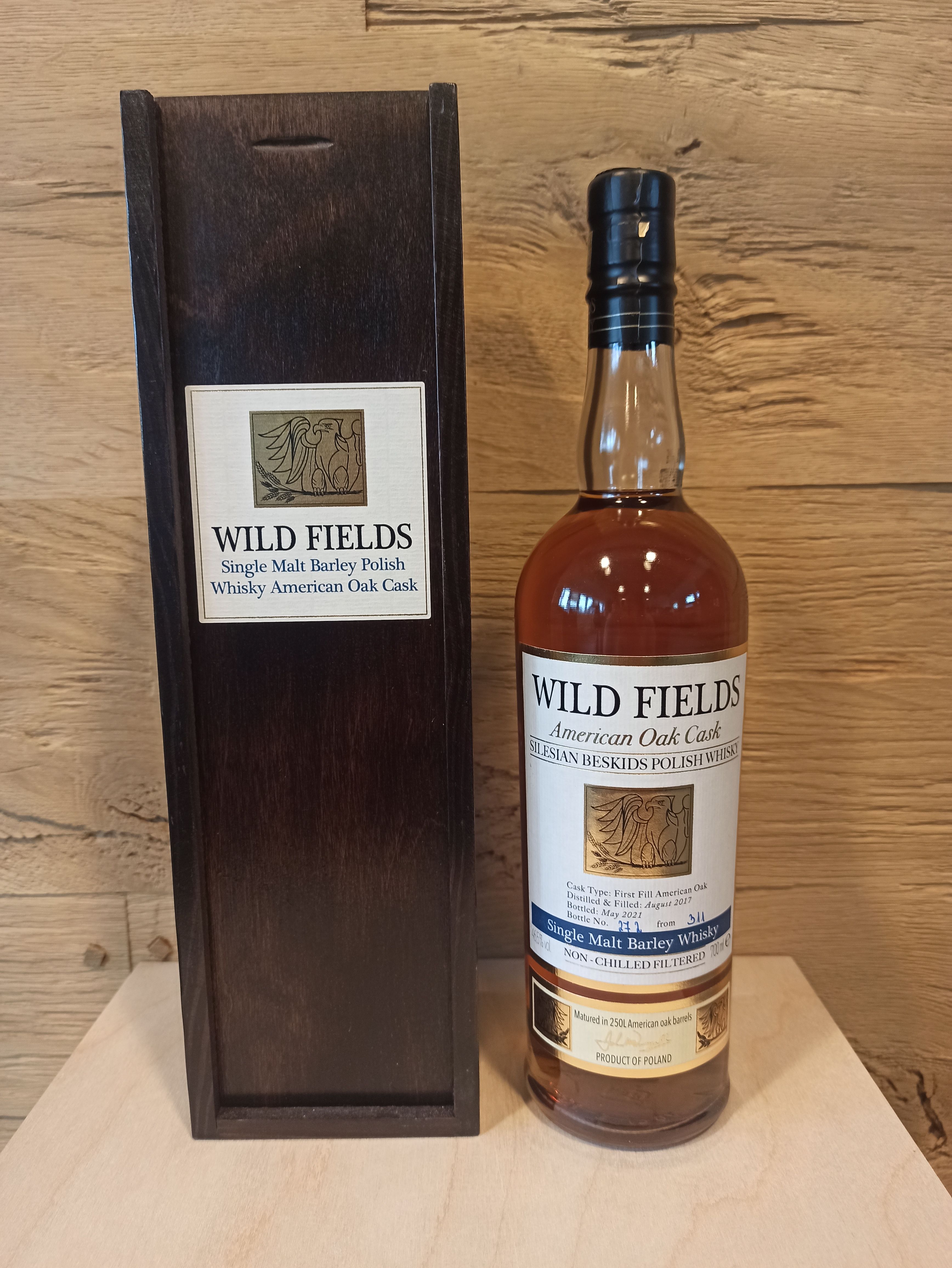 Wild Fields Single Malt 100% Barley Polish Whisky in wooden box 0,7L 46,5%; Wild Fields Single Malt Barley Polish Whisky wytworzona jest w tradycyjny sposób. Nie jest filtrowana na zimno, dojrzewa w polskich dębowych beczkach,...